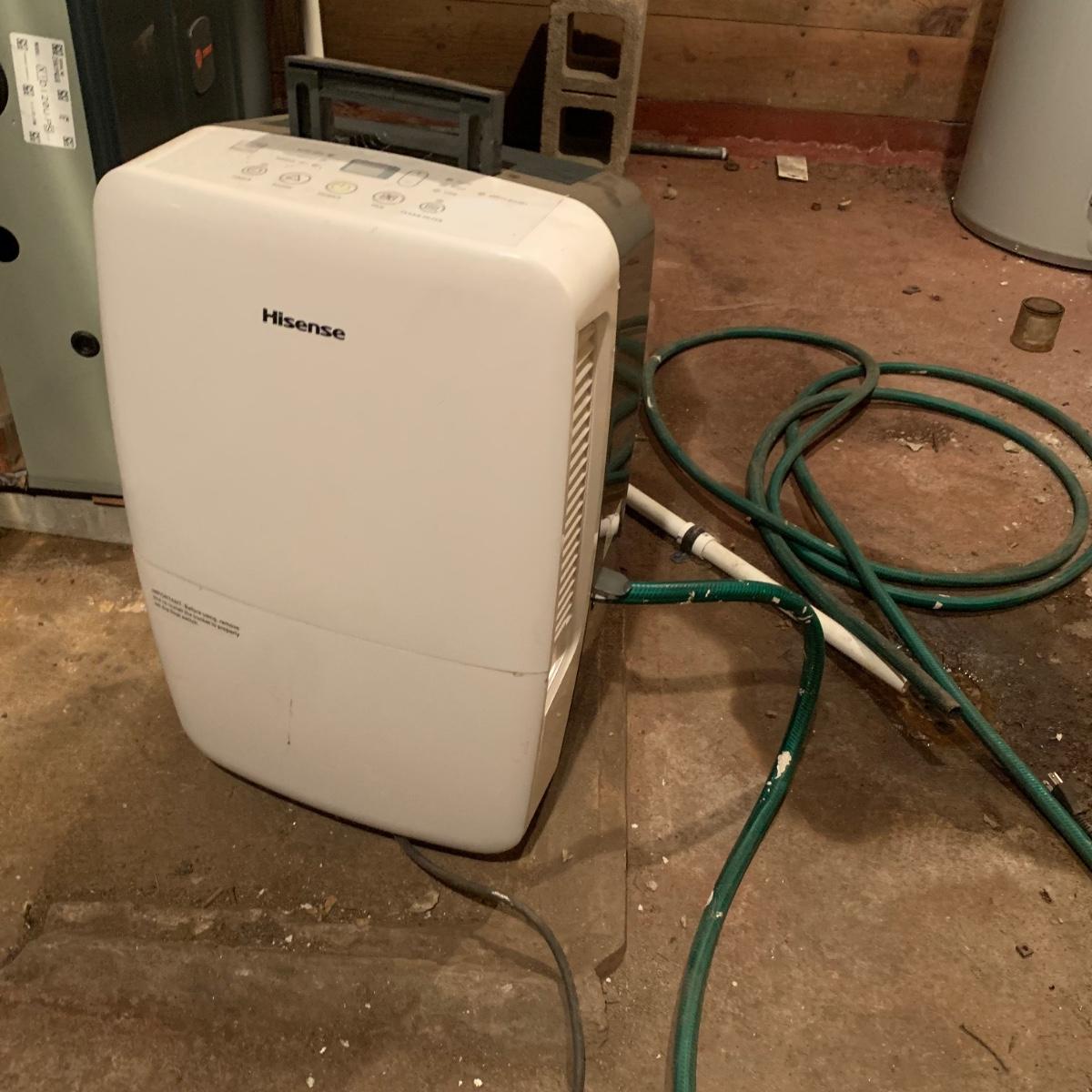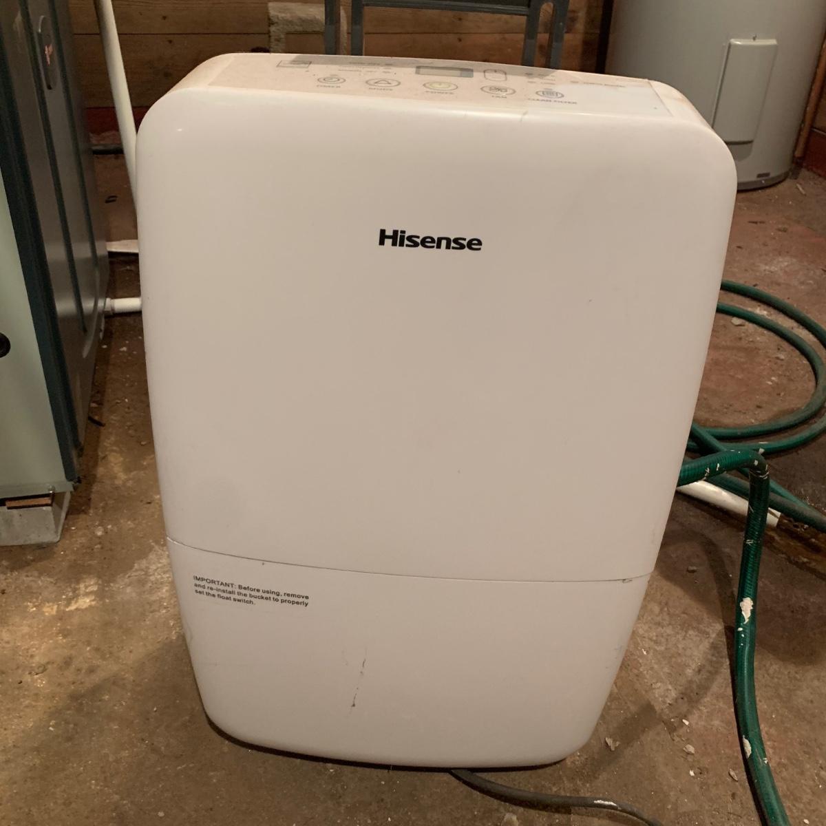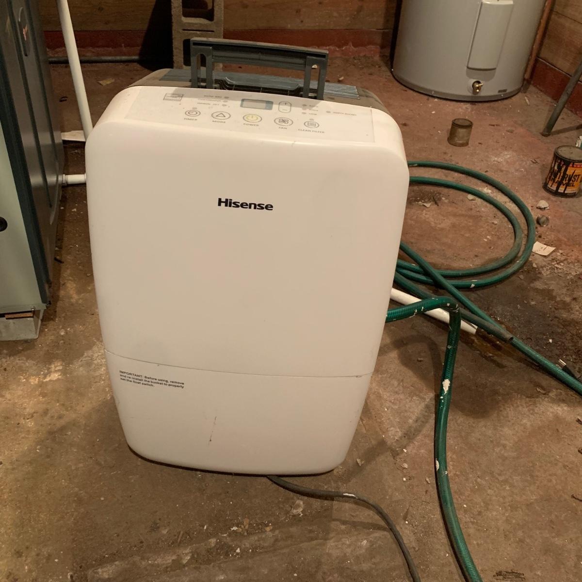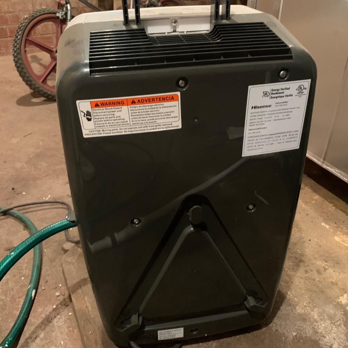 This lot includes one Hisense dehumidifier and drain tube. The dehumidifier is in good cosmetic condition with minor marks on the bottom. Unable to test unit due to electrical connections, but has standard 3-prong plug. The dehumidifier has a tube connected to it that is included with the lot. The dehumidifier is heavy. It measures about 14in x 11in x 25in. Local pickup only.