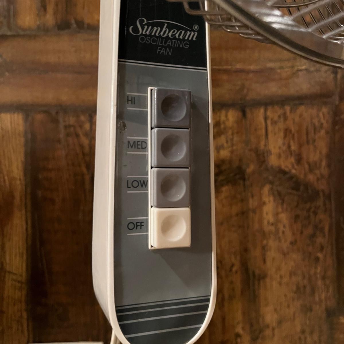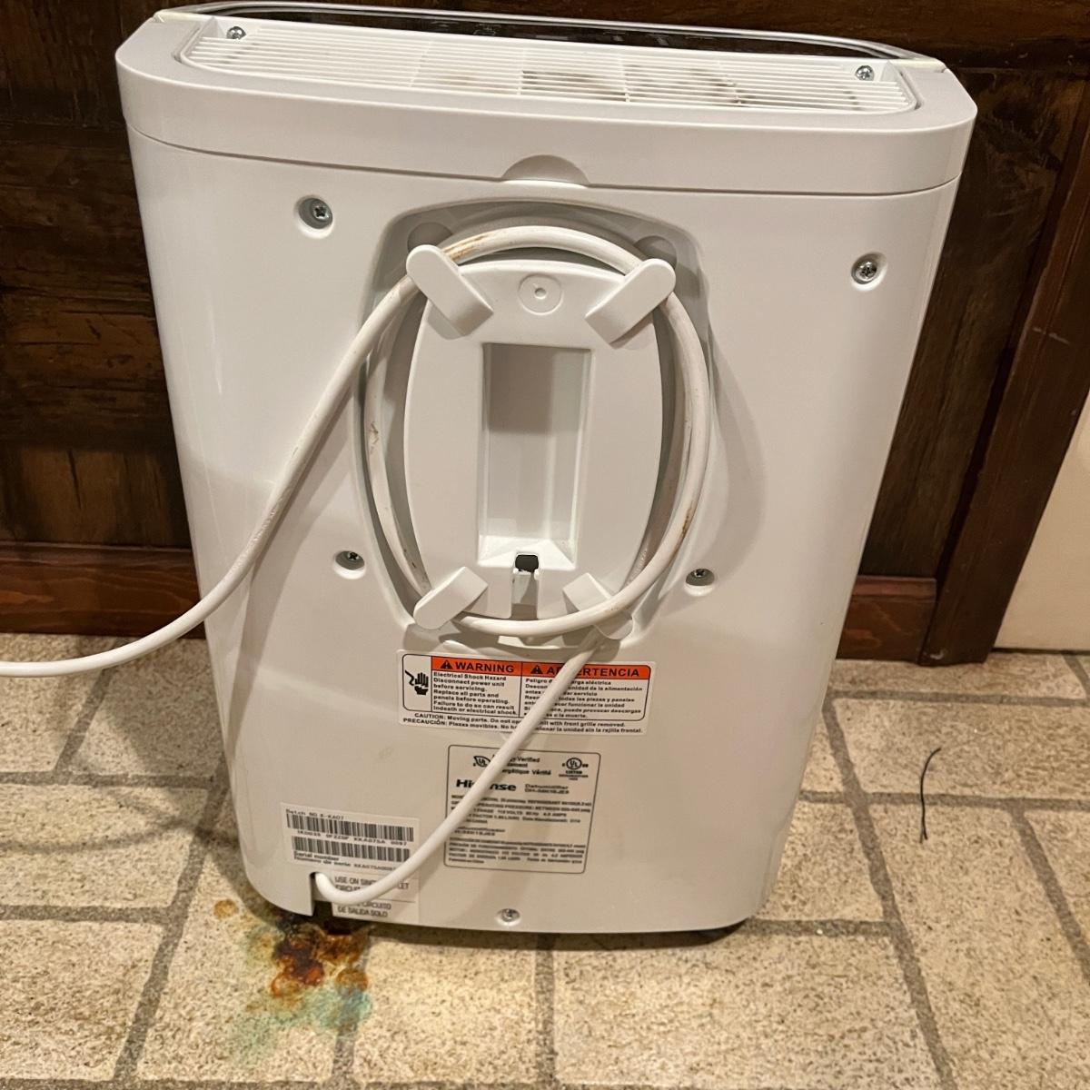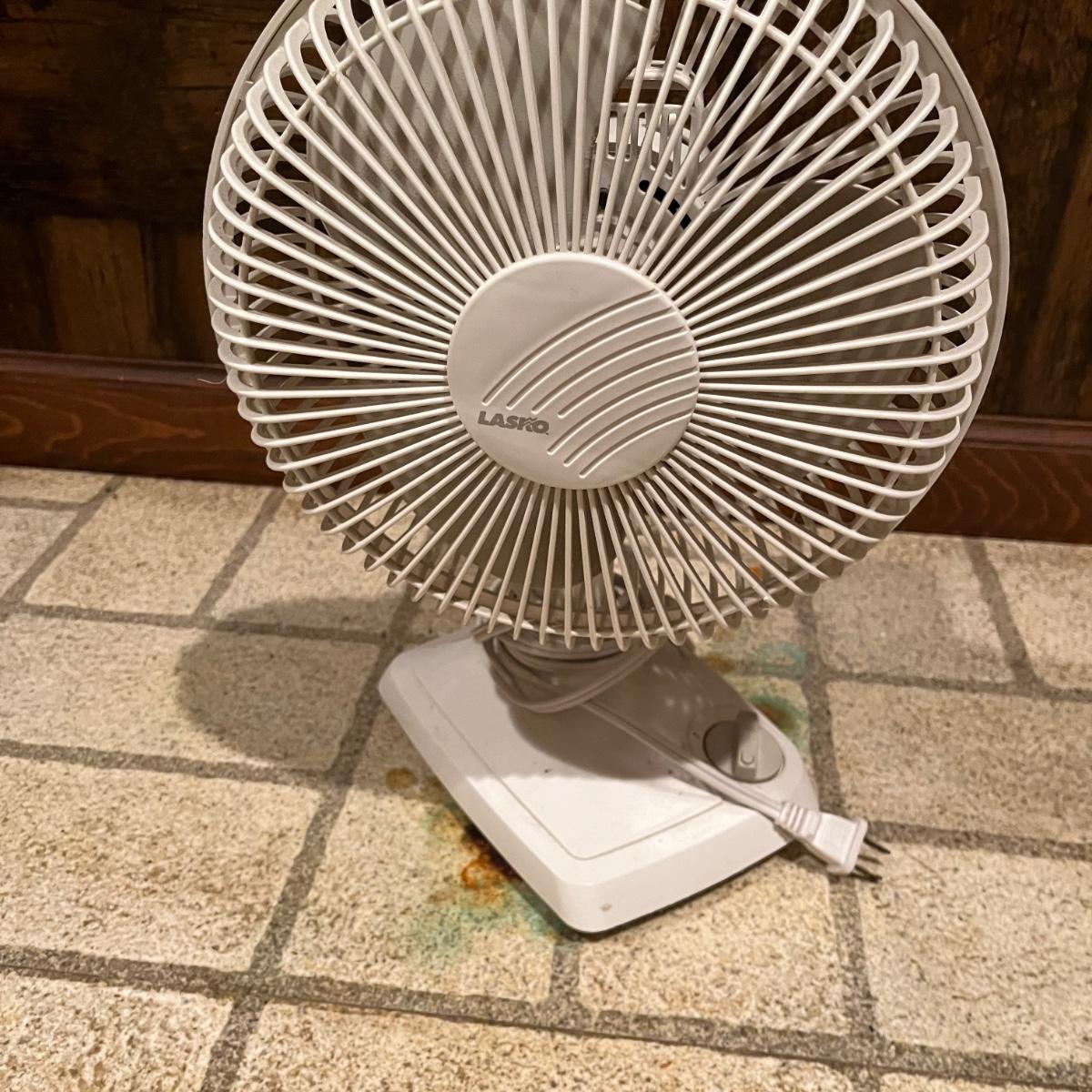 Lot includes a Hisense dehumidifier, Sunbeam oscillating fan and a small Lasko oscillating desk fan. All items powered on when plugged in. Dehumidifier measures 14” x 10” x 20”H.