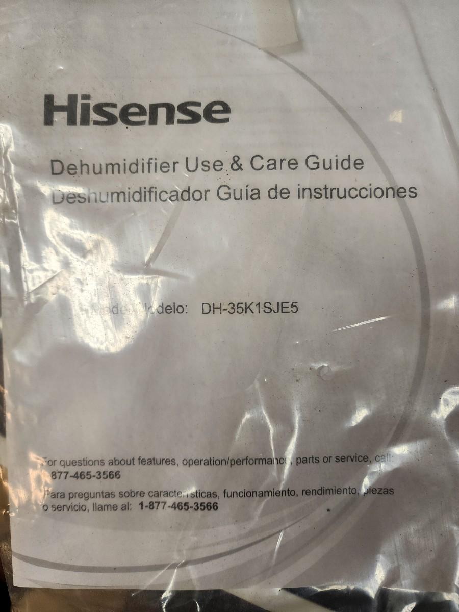 Listing is for one HiSense 35 pint dehumidifier, model DH-35K1SJE5, two available total.