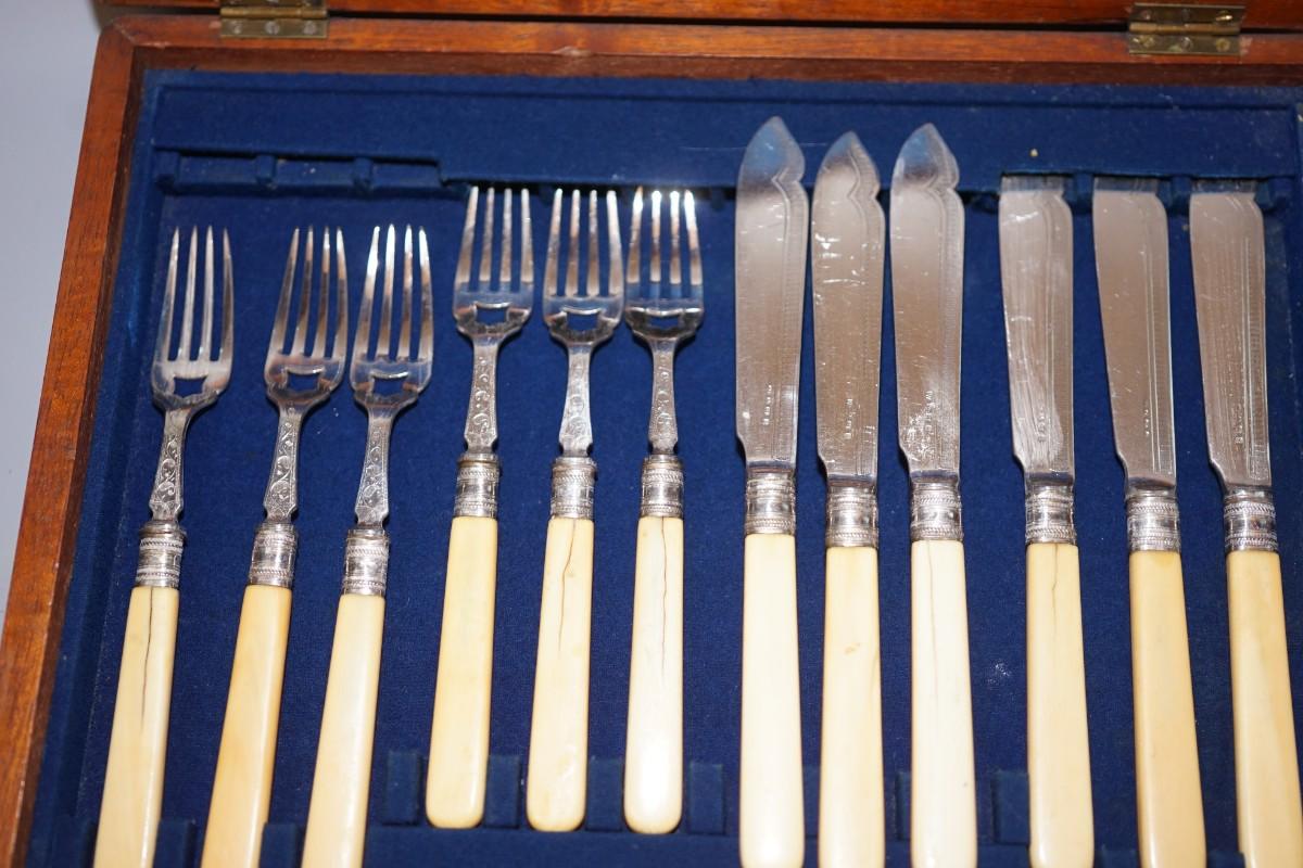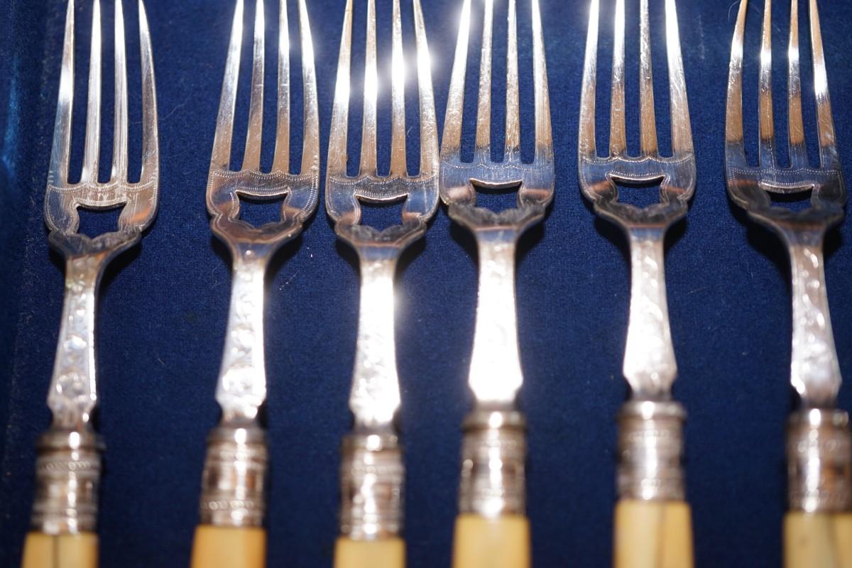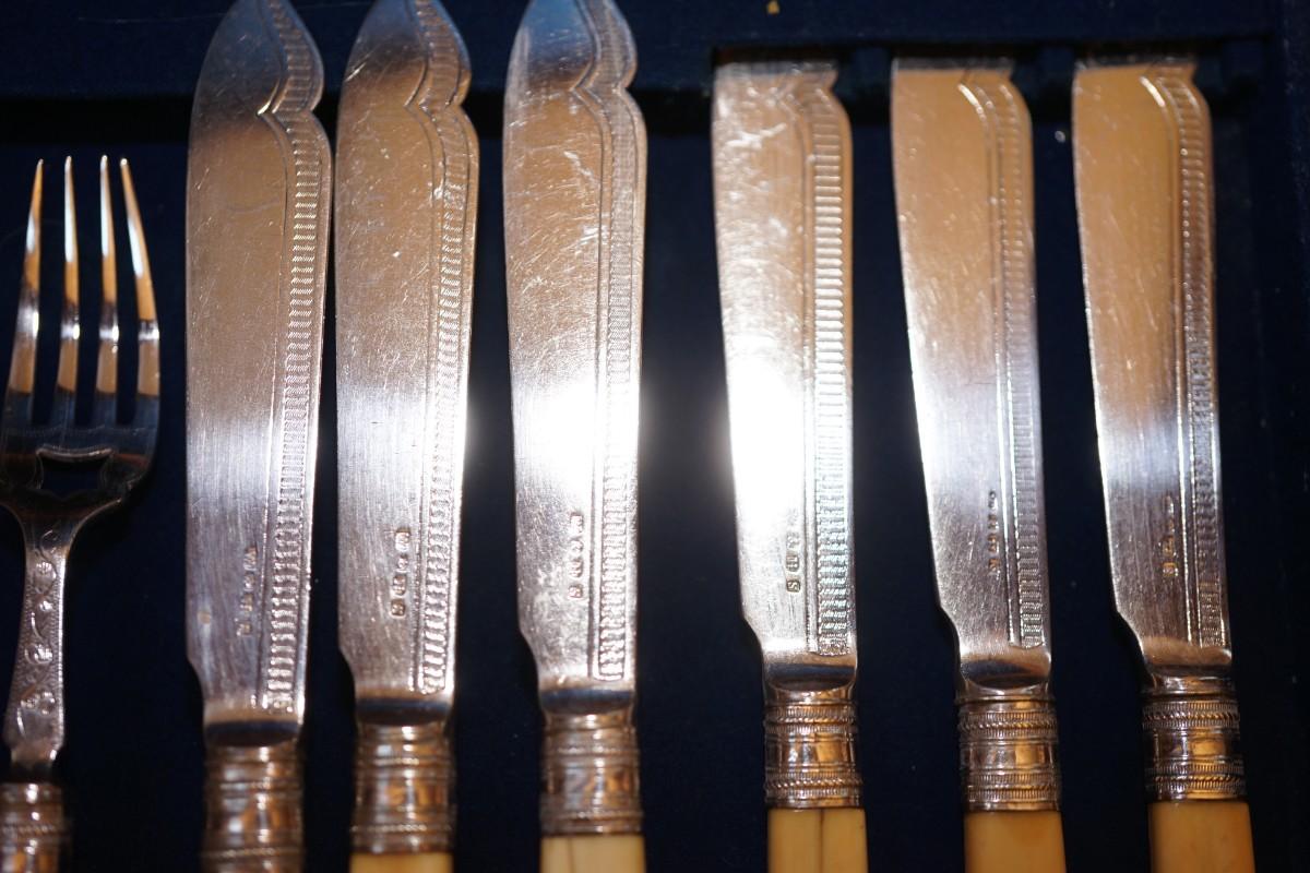 this is an 1860's silver engraved fish set to consist of 6 forks and 6 knives.