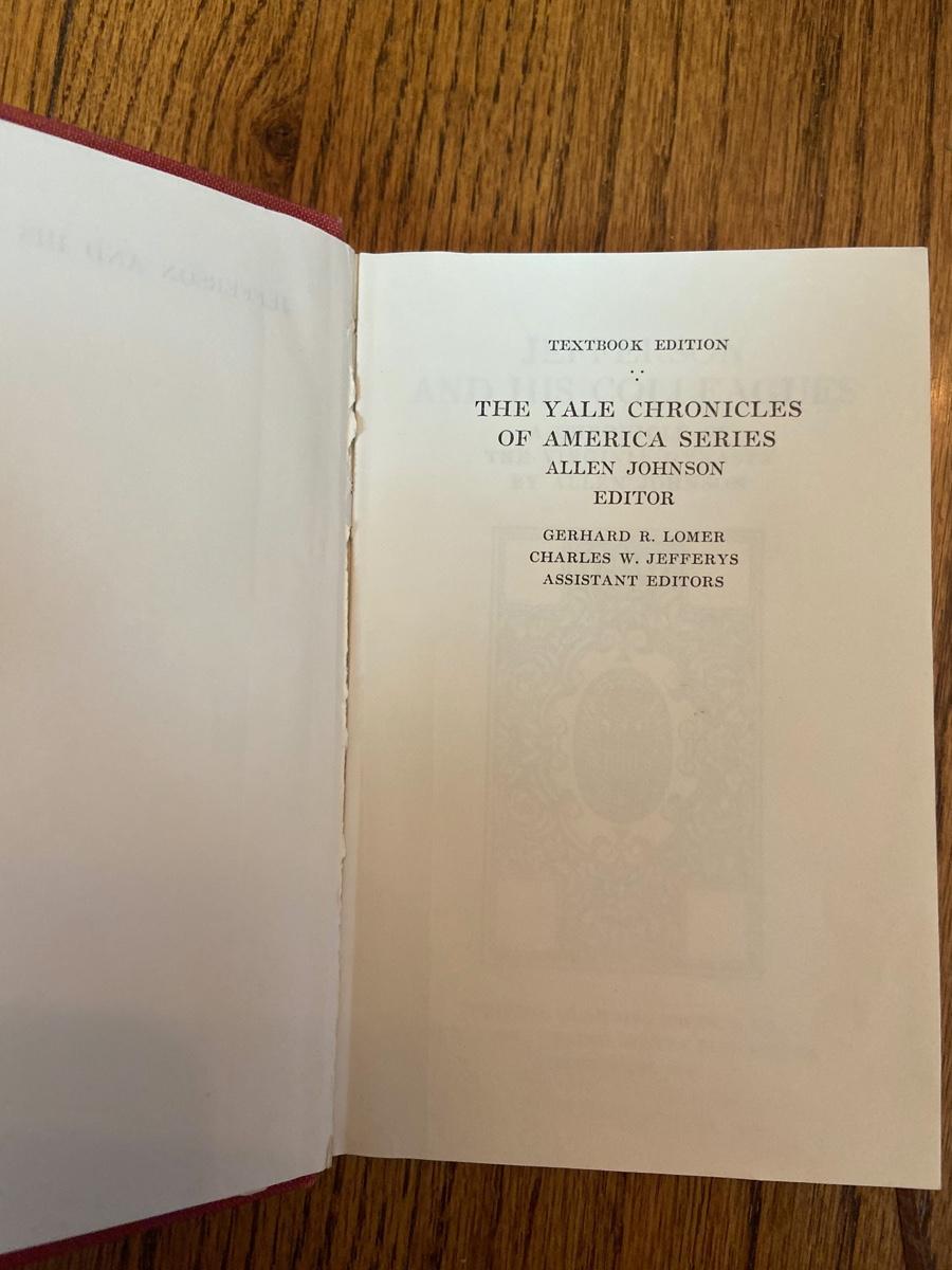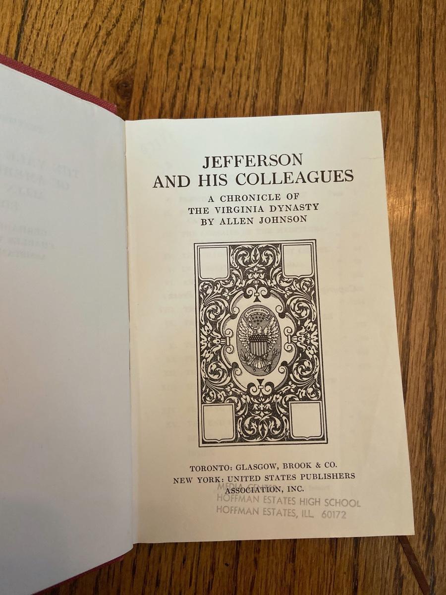 Jefferson and His Colleagues A Chronicle of the Virginia Dynasty by Allen Johnson (1921). Red hardcover. textbook edition. United States Publishers Association, Inc.