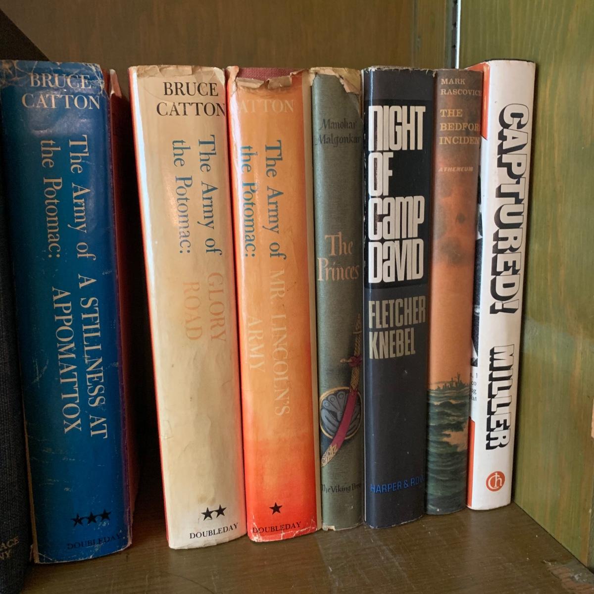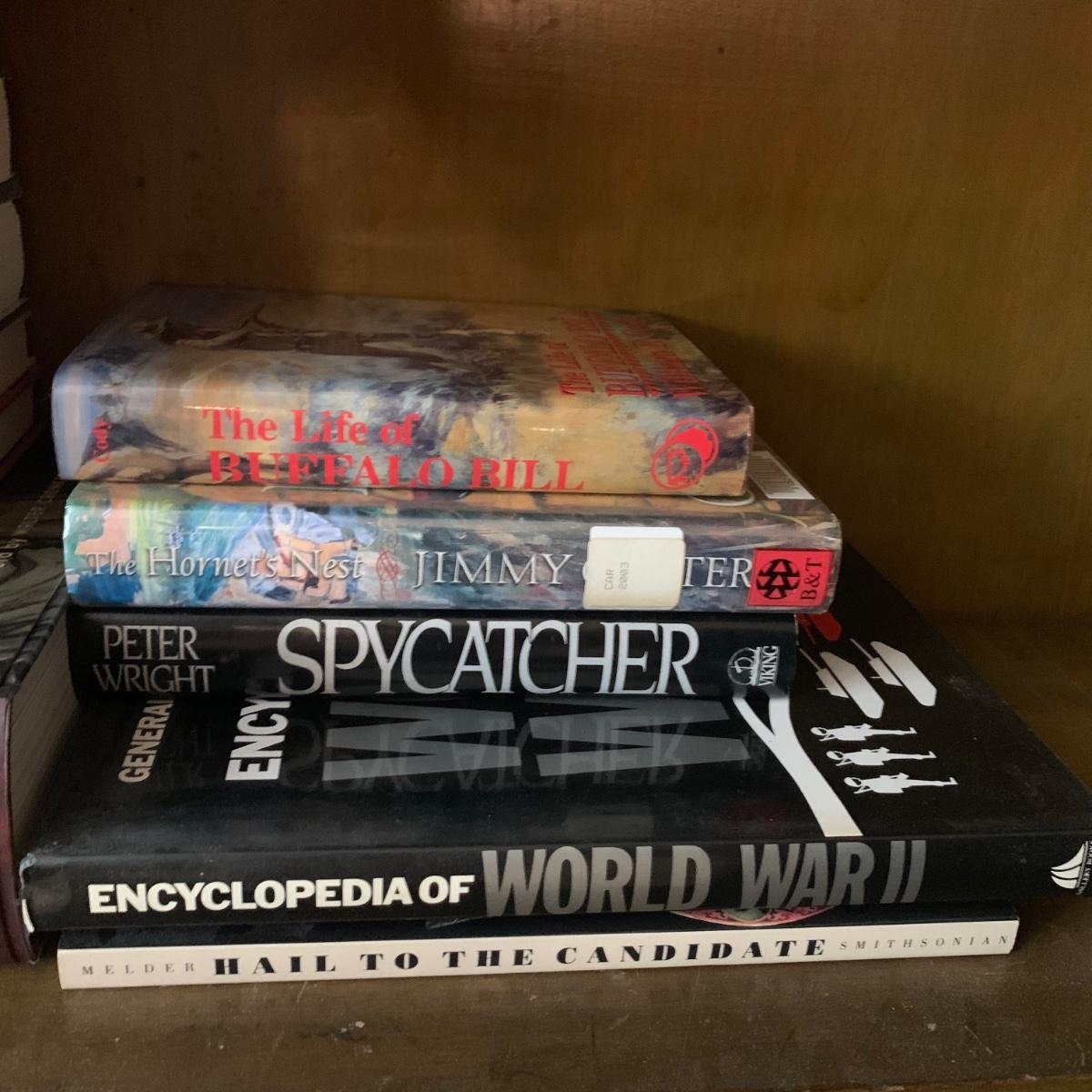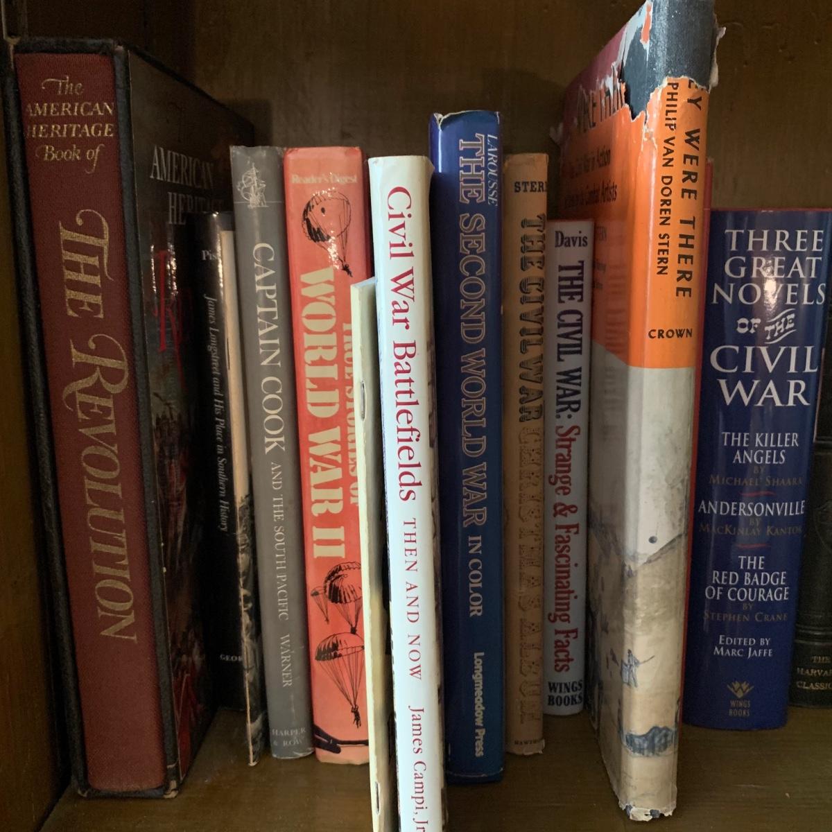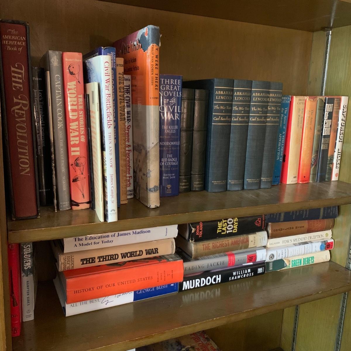 Included in this lot are over 50 history books including a large variety of books about war, presidential biographies, historical characters, and more. The lot includes a mixture of hard cover and soft cover books. Condition of the books range from excellent to fair with some covers showing signs of wear and ripping. Local pickup only.