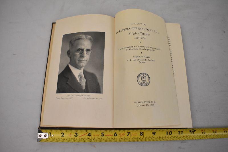 History of Columbia Commandery No. 2 Knights Templar - Vintage 1938 Hardcover
