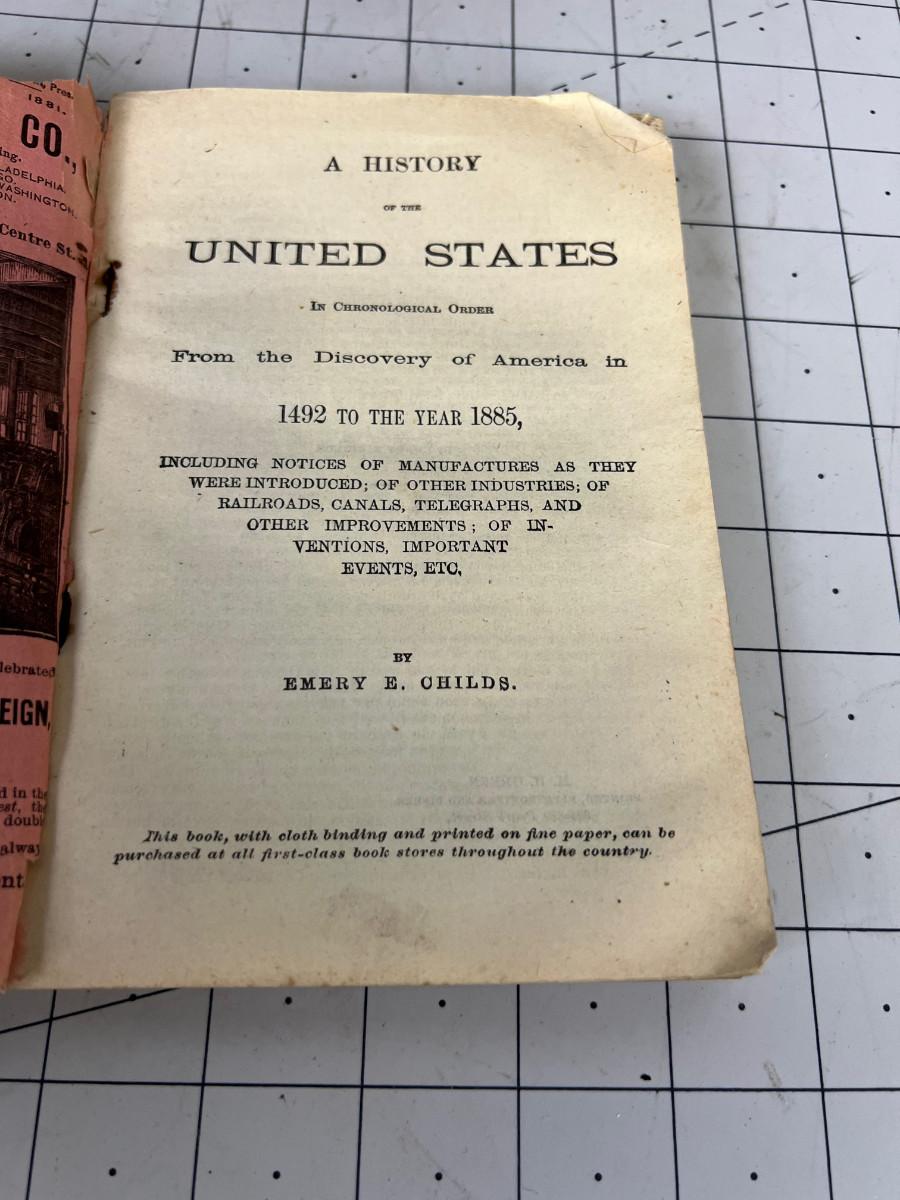 History of the United States between 1492 to 1885 By Emery Childs BOOK COLLECTORS PAY ATTENTION