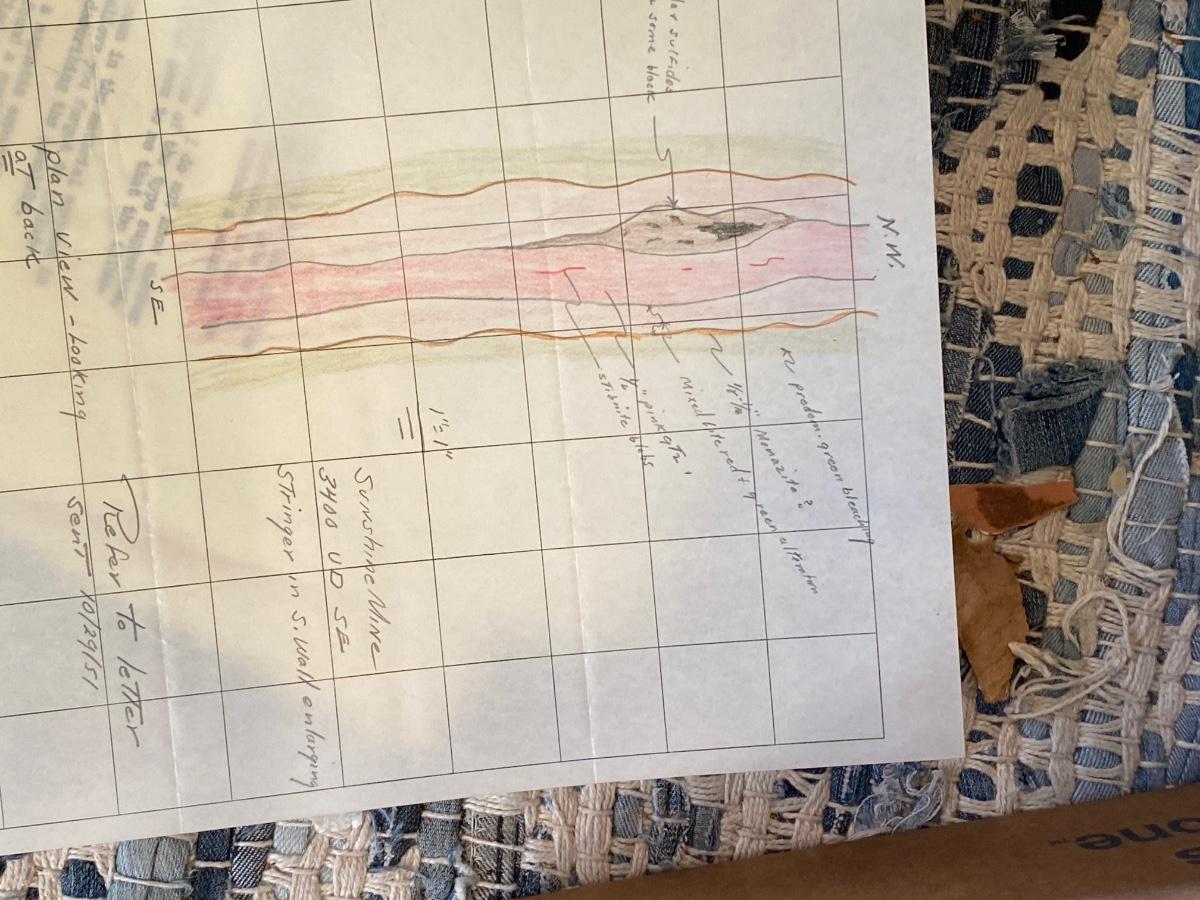 His personal file on this project is included with his dozens of pages of correspondence with Raymond F. Robinson the mine representative , hand drawn illustrations, annotated articles etc.