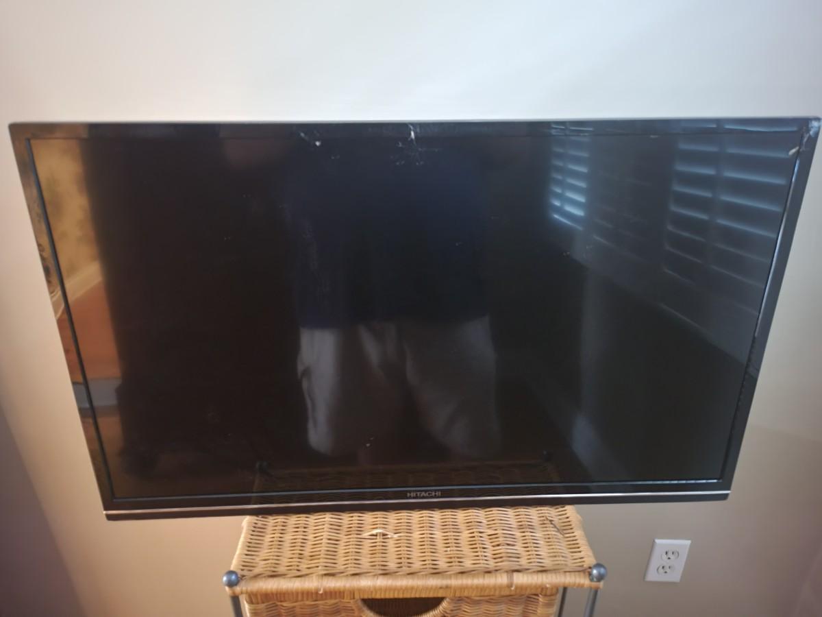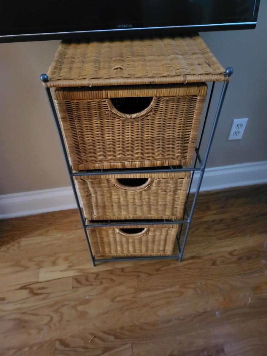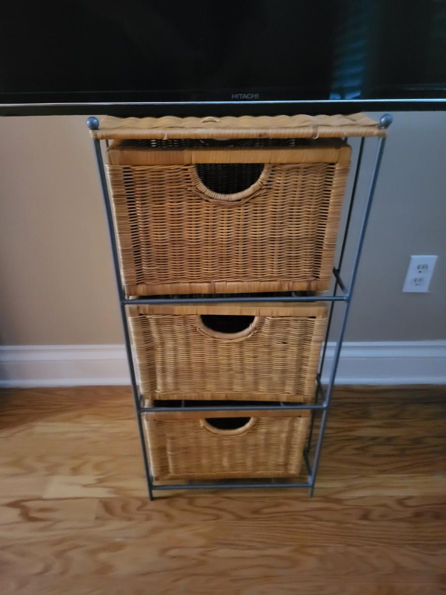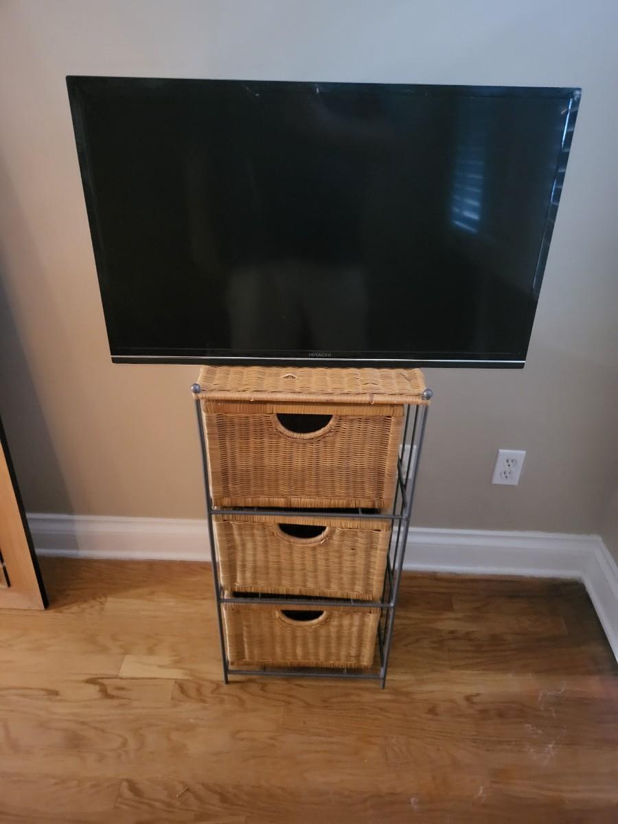 Hitachi 32 inch TV with 3 Drawer Rolling Wicker File Tower