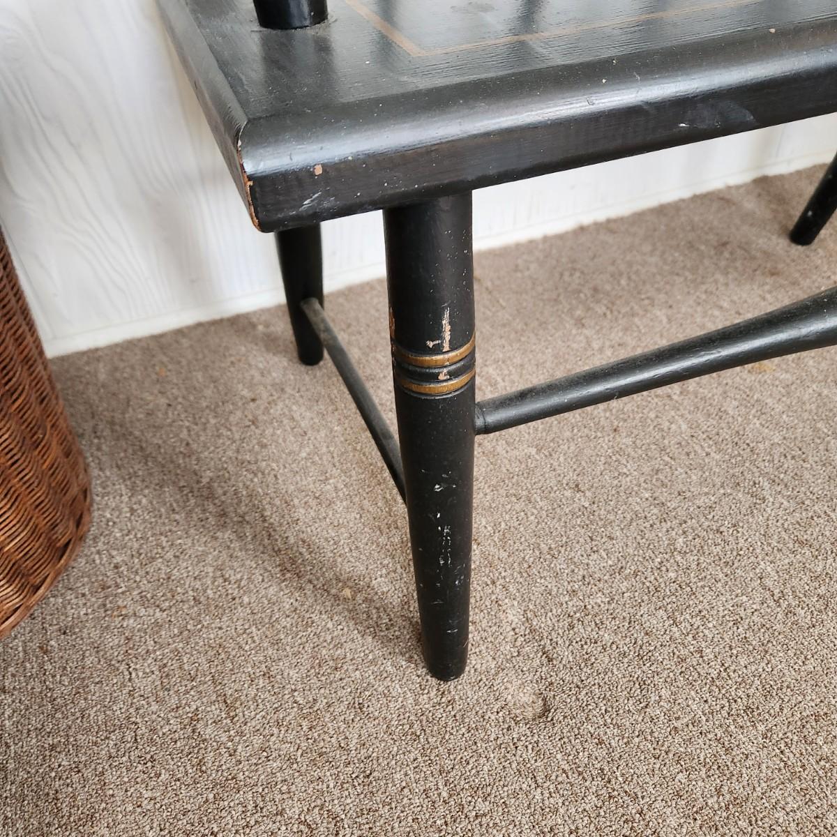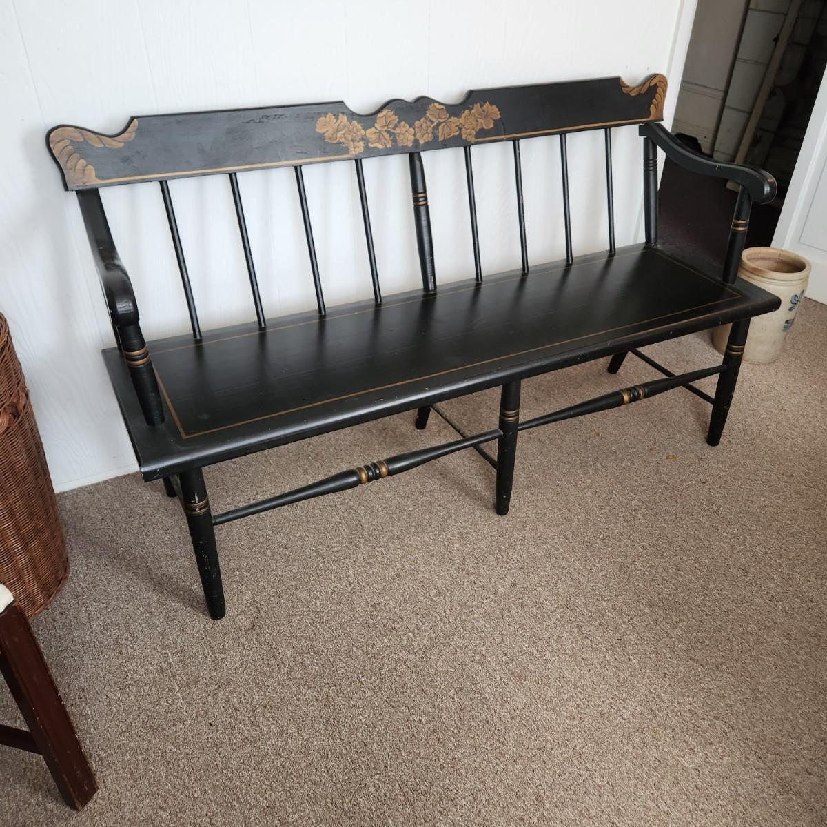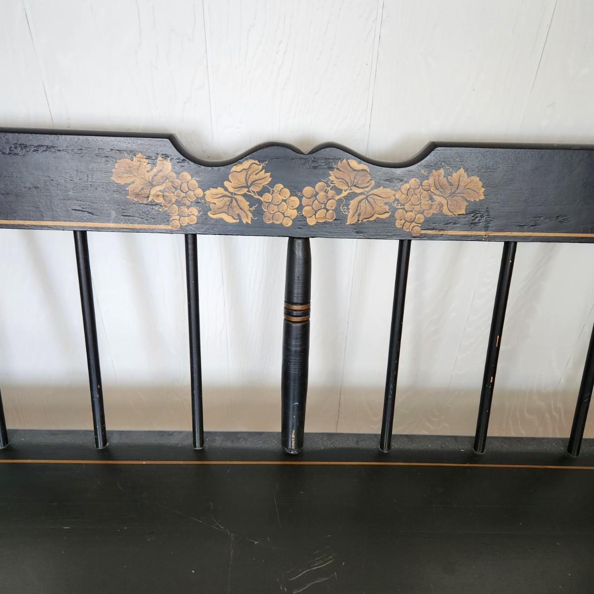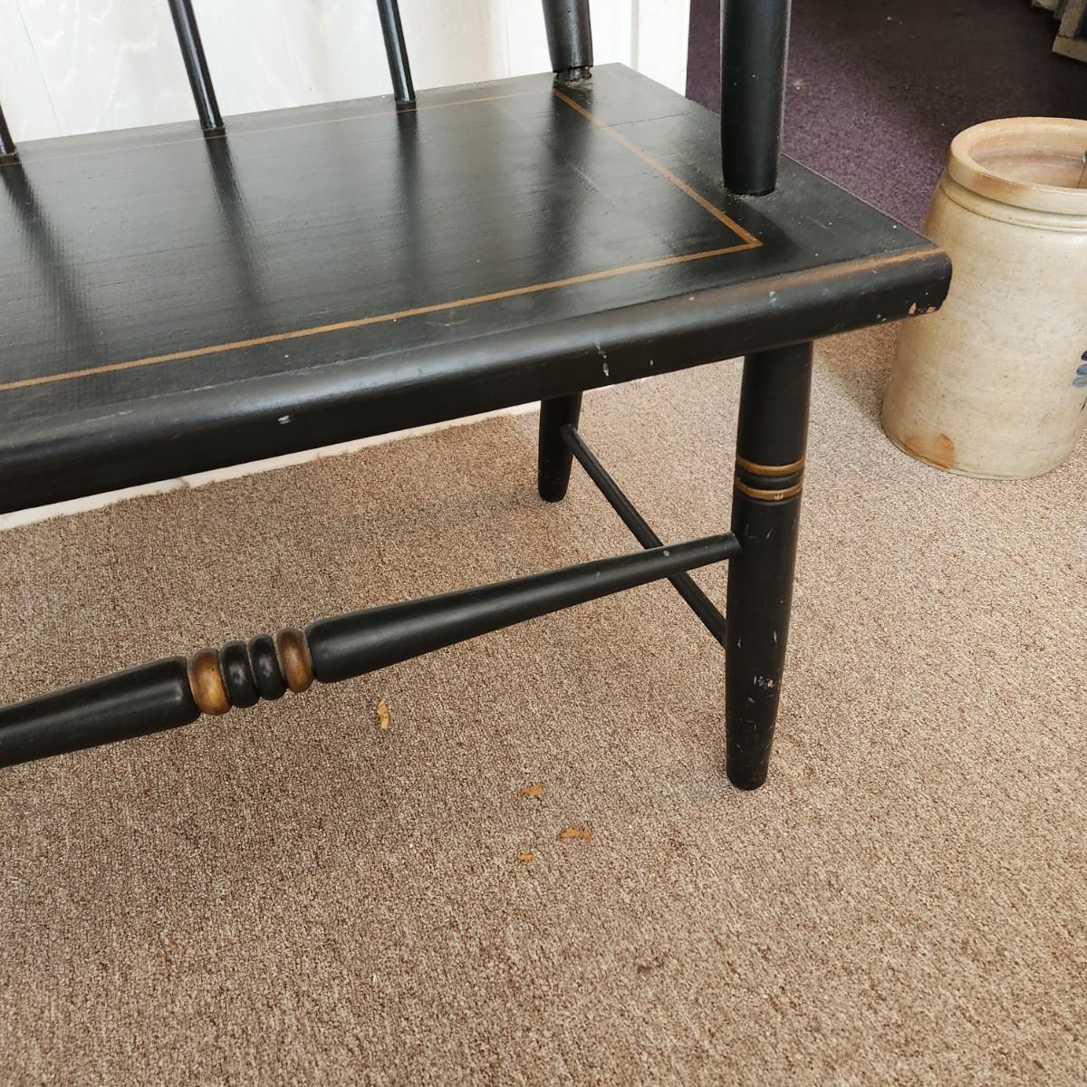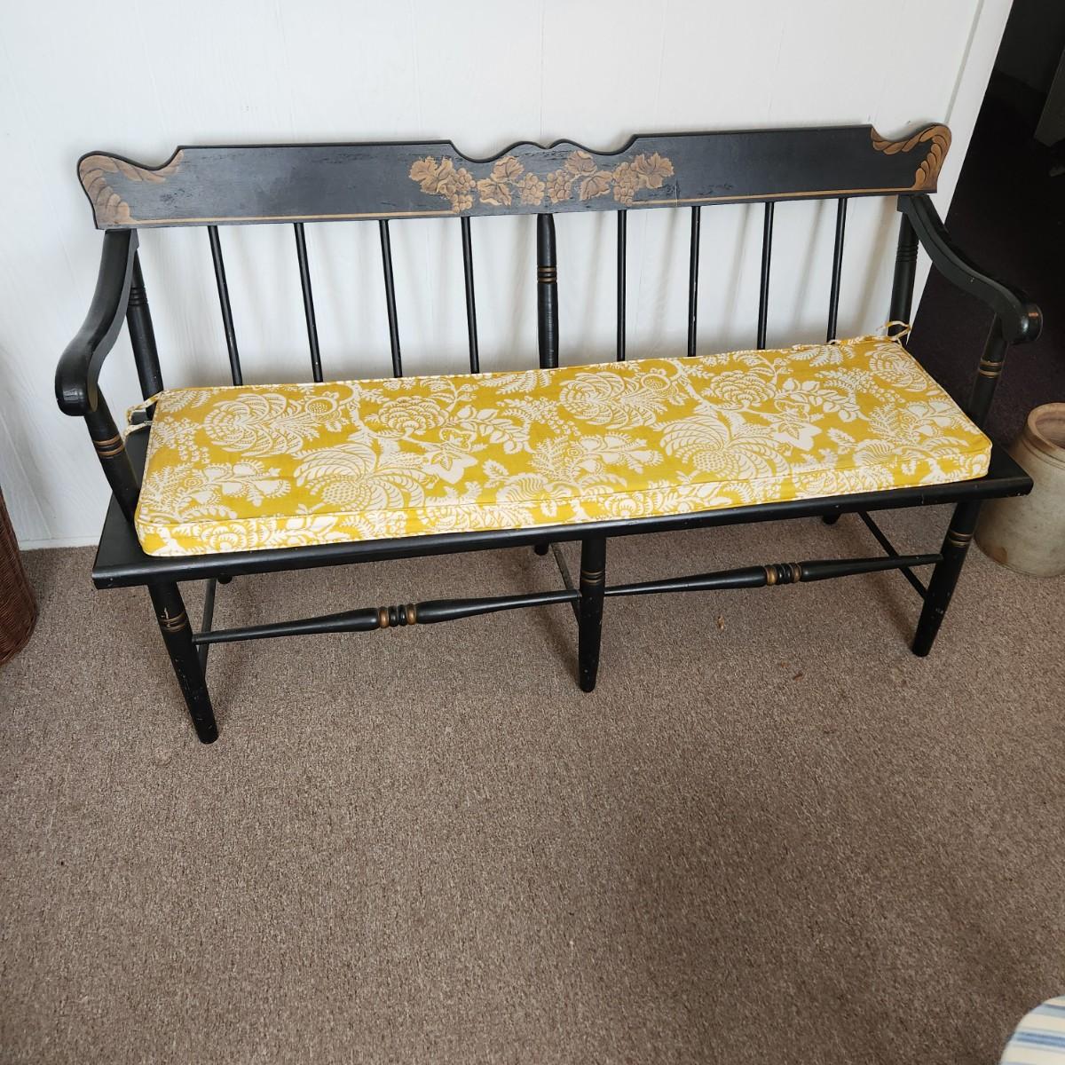 Hitchcock Style Painted Bench Solid Wood w Seat Cushion 57" x17"