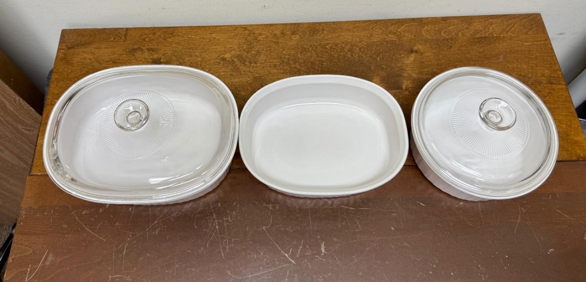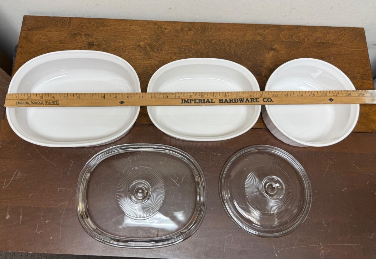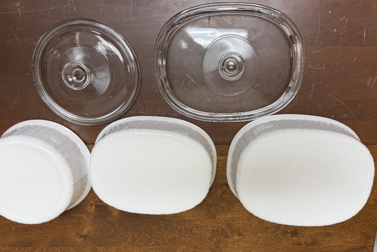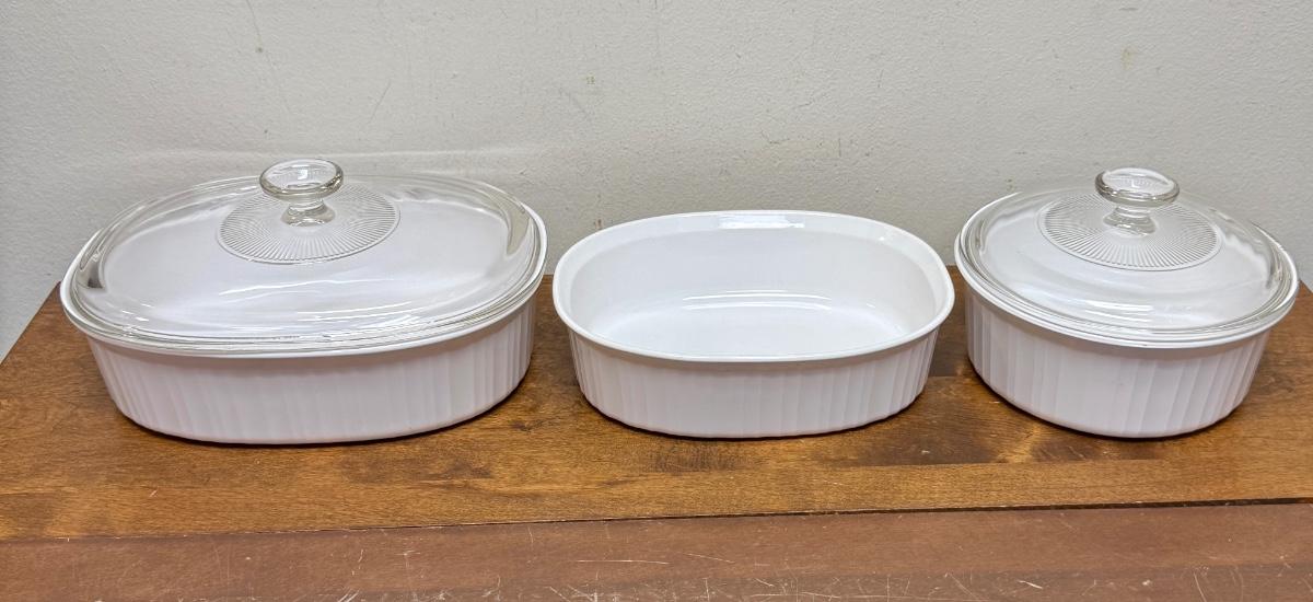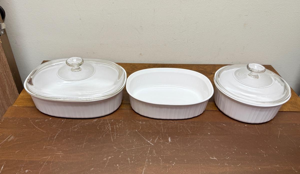 5 piece lot - Corning Ware French White Casserole Dishes - 3 dishes, 2 lids oval round