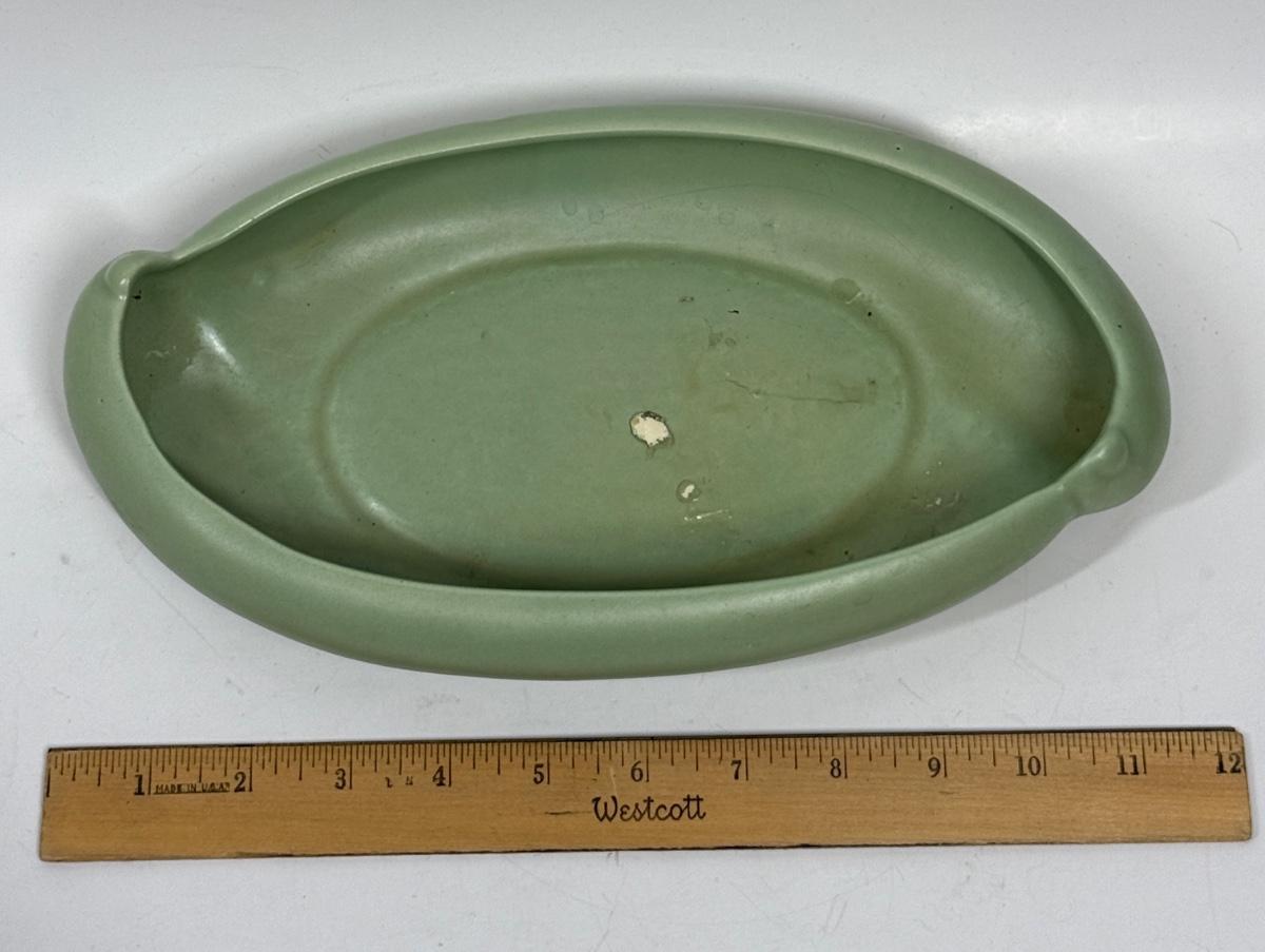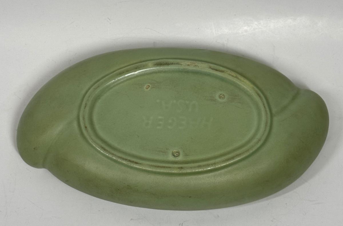 Haeger USA sage green Pottery oblong dish planter vintage MCM floral arraangement vase