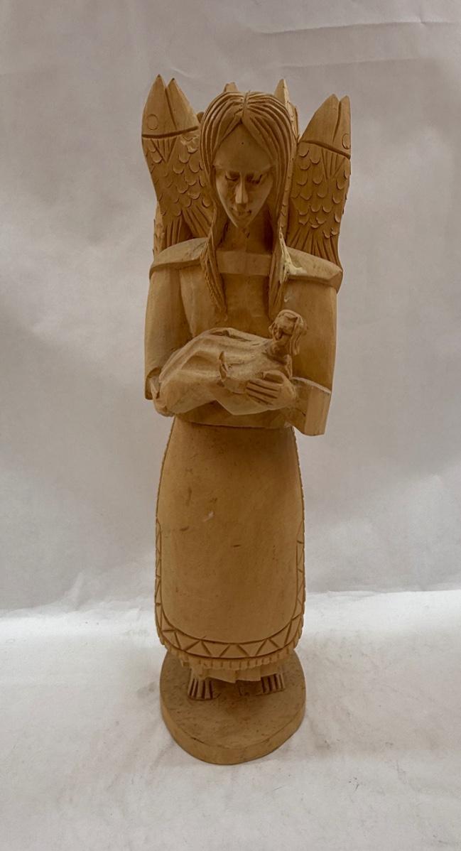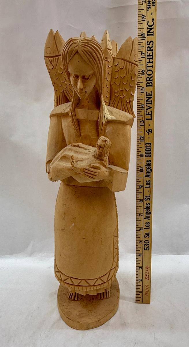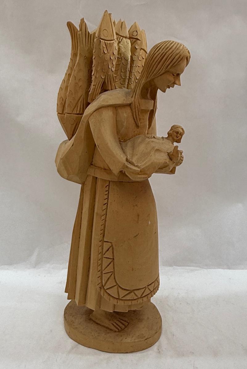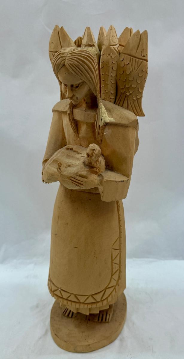 Vintage Hand-carved Wood "MOTHER & CHILD fold art style Sculpture