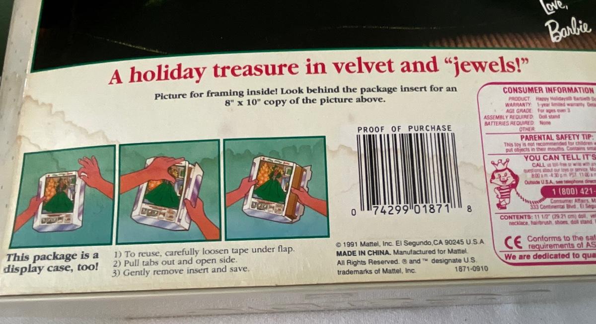 1991 Barbie Happy Holidays Special Edition Mint/Excellent Unopened