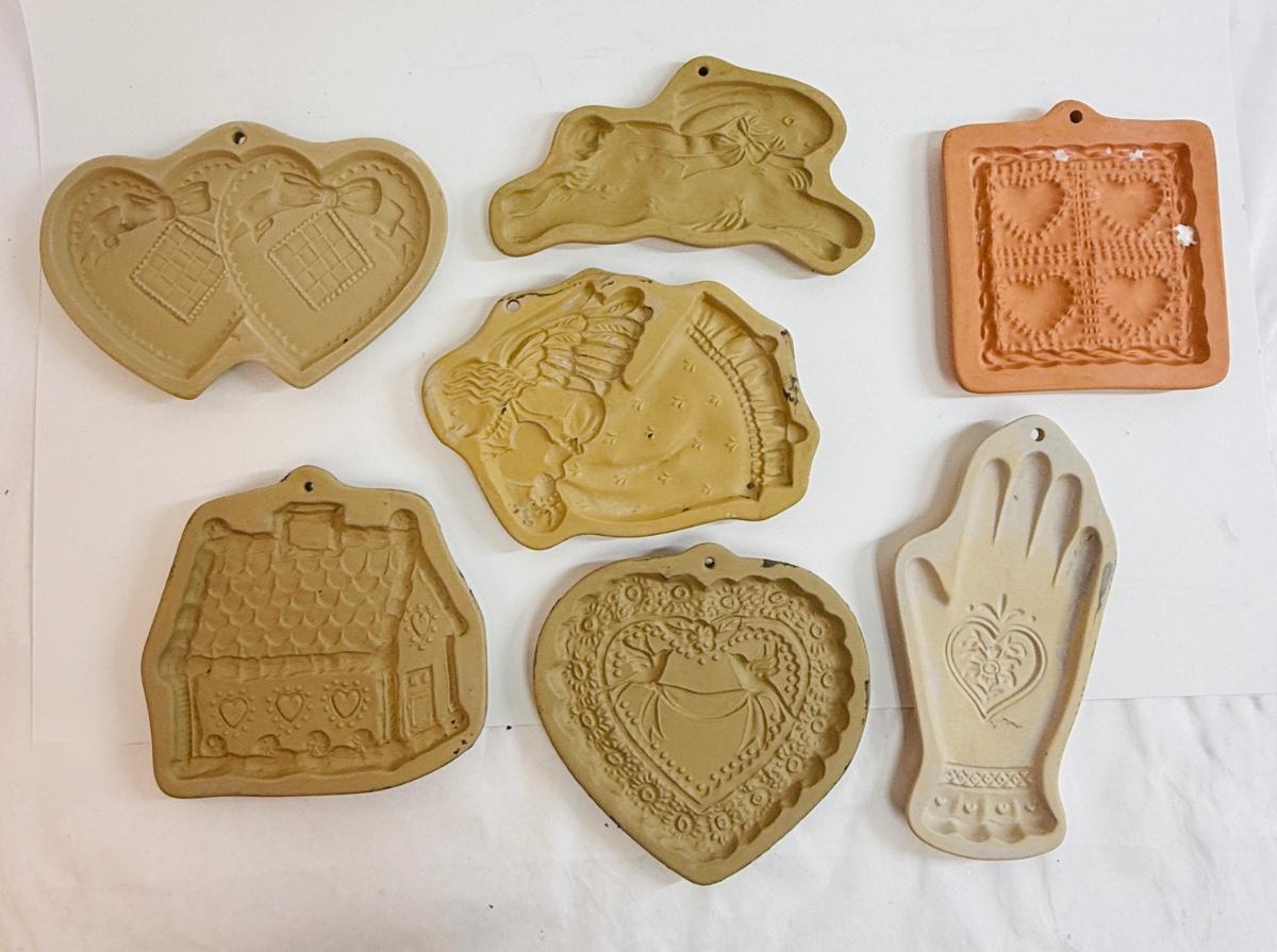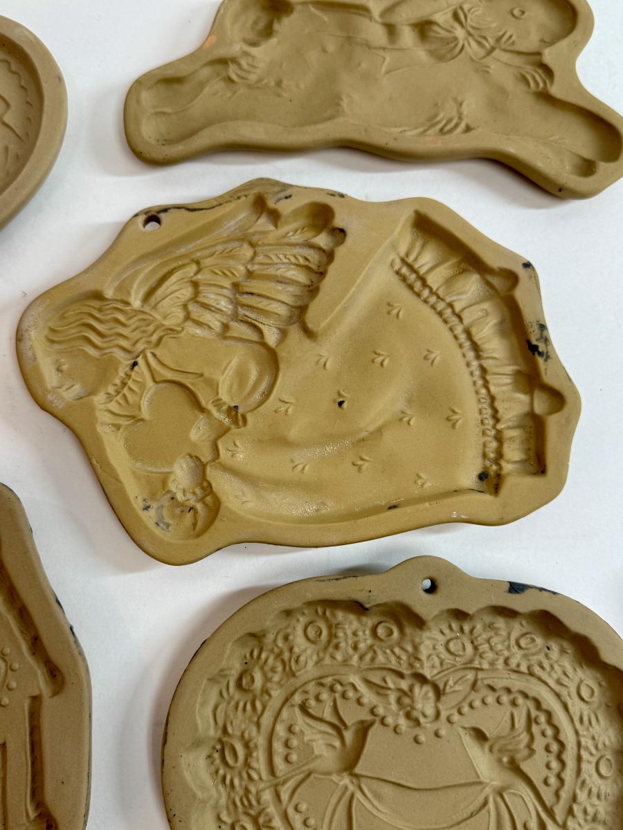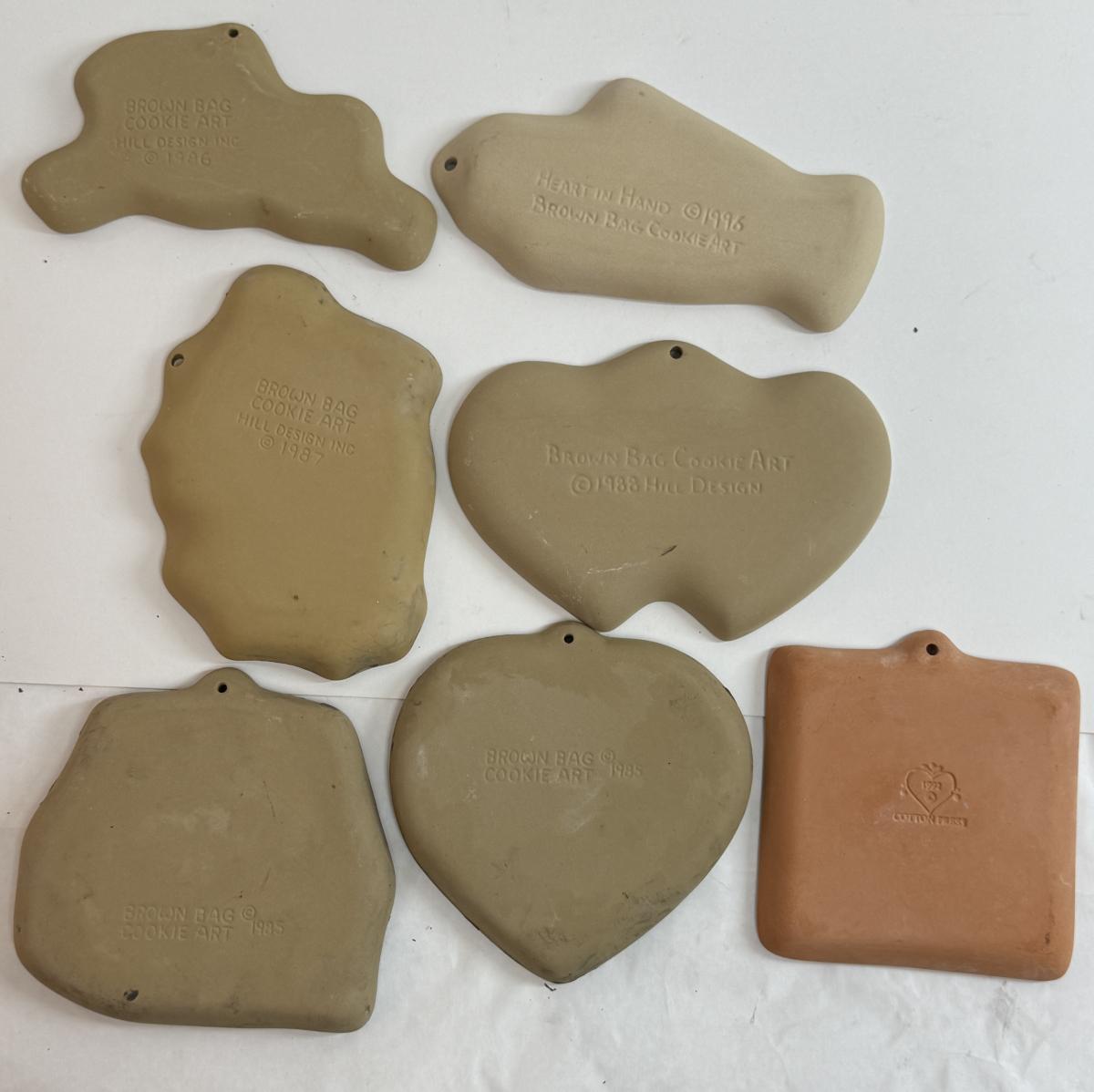 Collection of vintage Brown Bag Cookie Art Unglazed Stoneware Molds