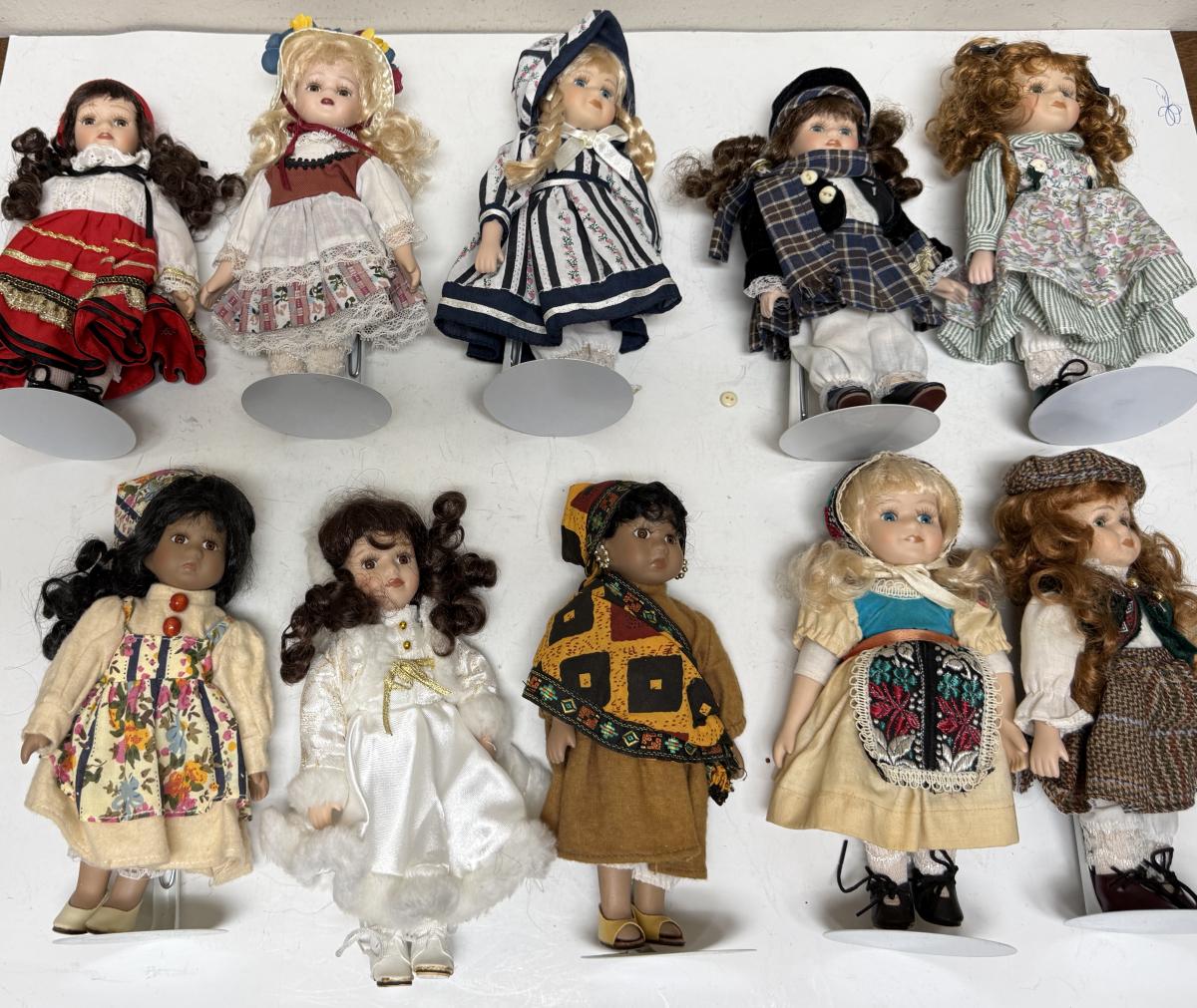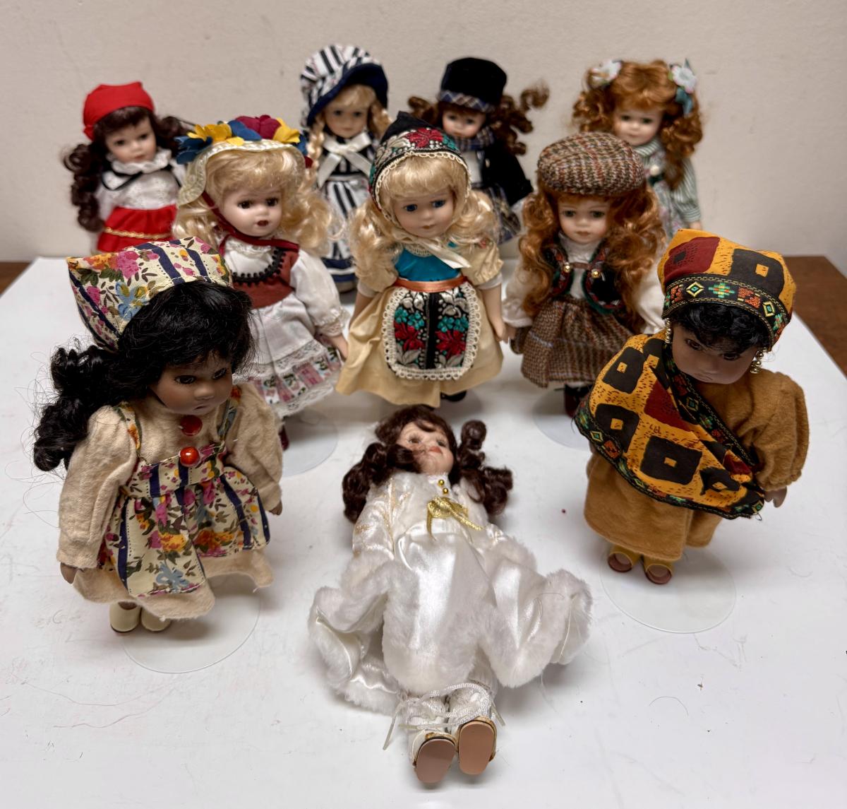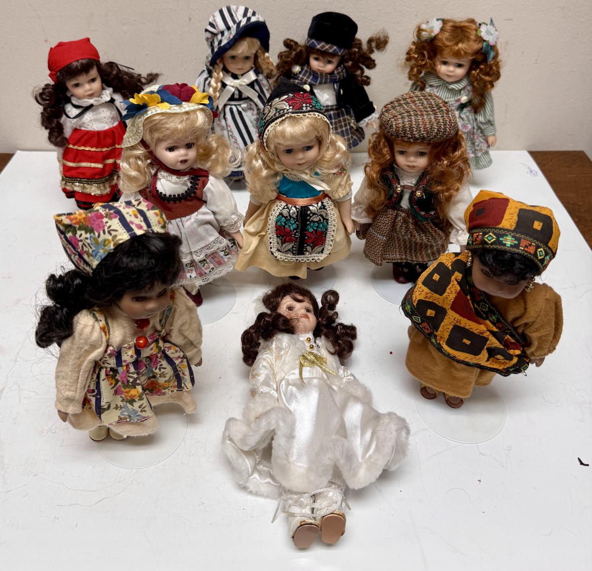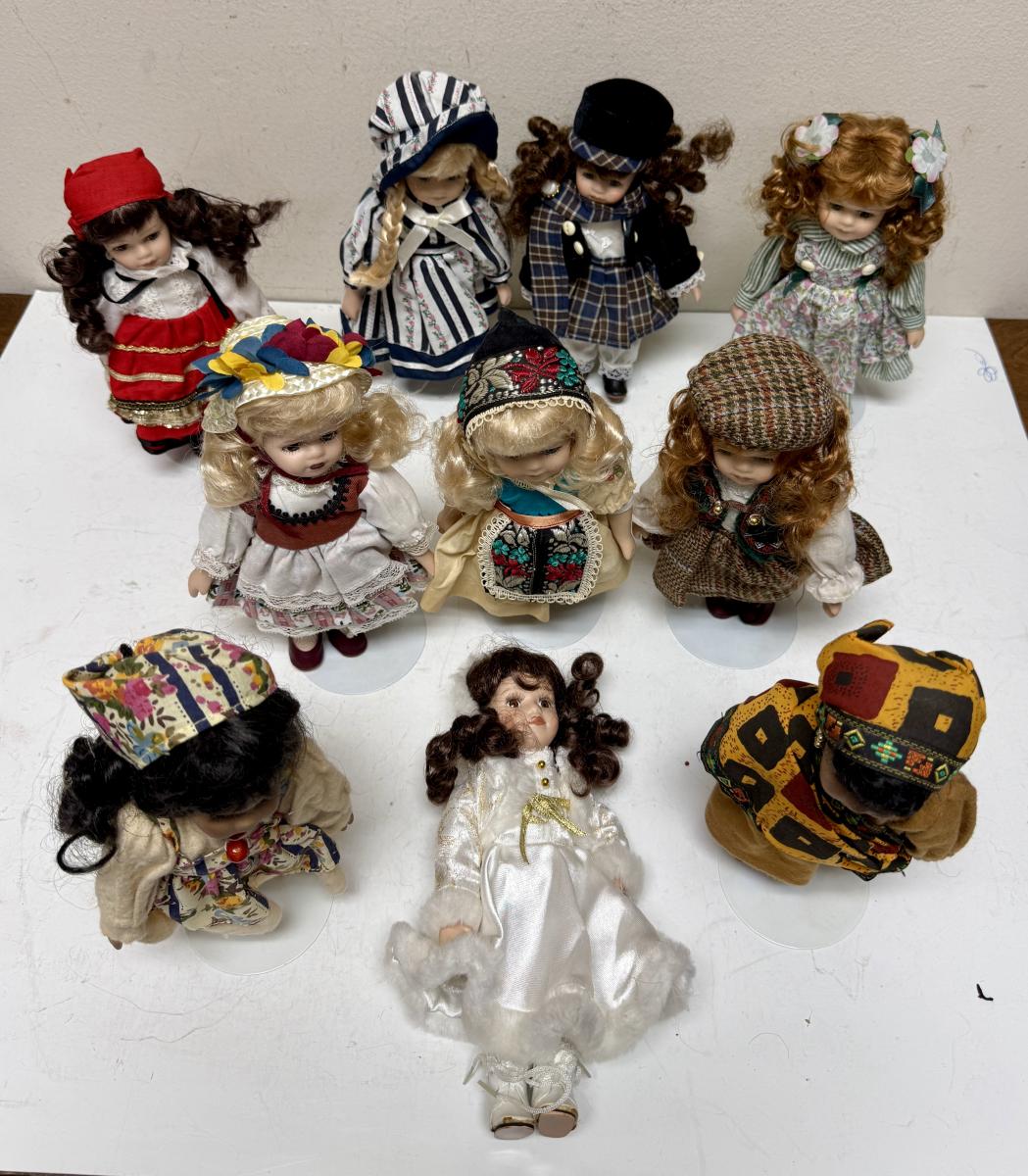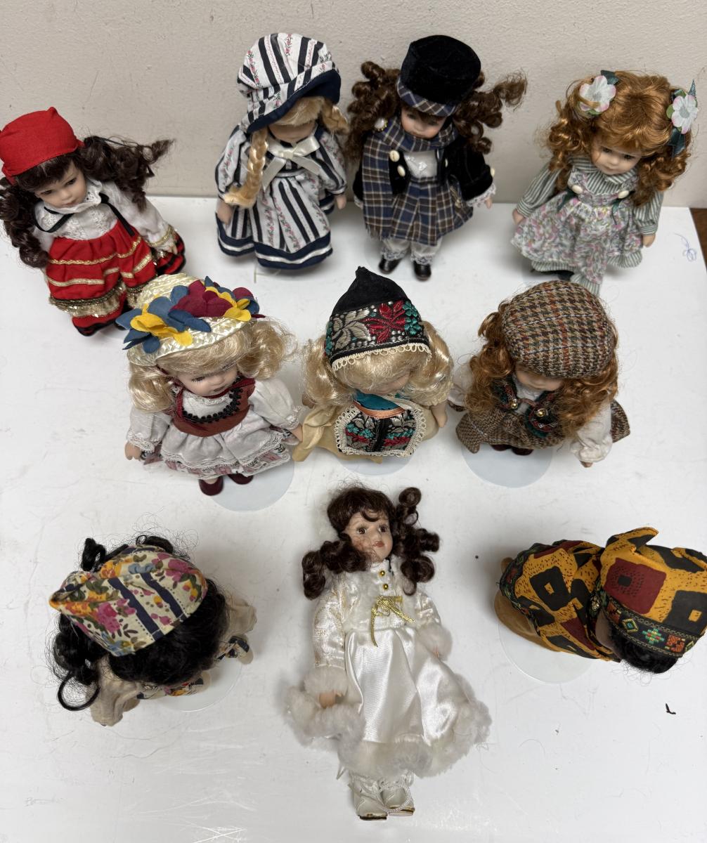 Porcelain Doll Lot of 10 dolls Country Themed Small Style