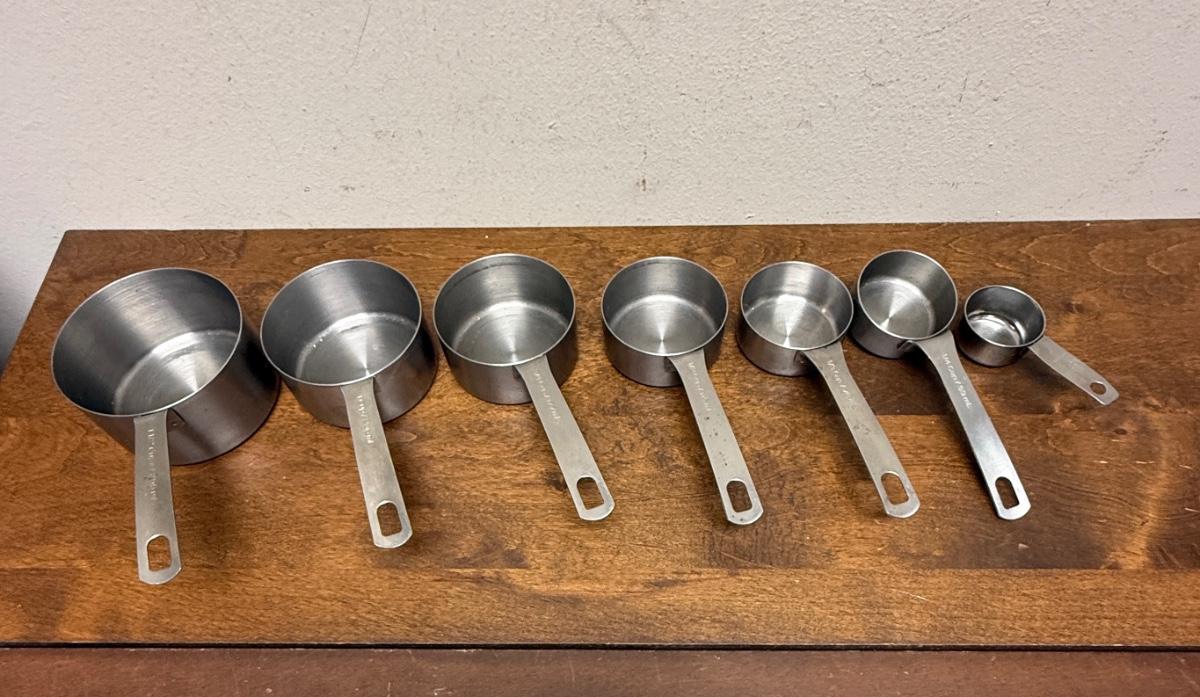 6-piece set with 7th piece (bonus scoop). In good used condition