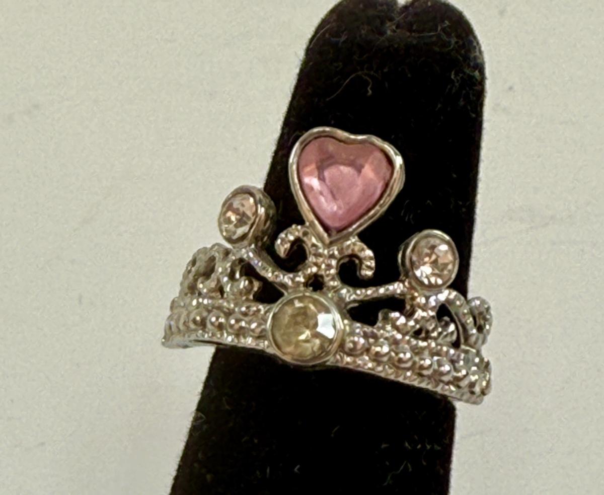 Girls Princess Crown Ring Pink Cubic Zirconia Silver tone Ring
