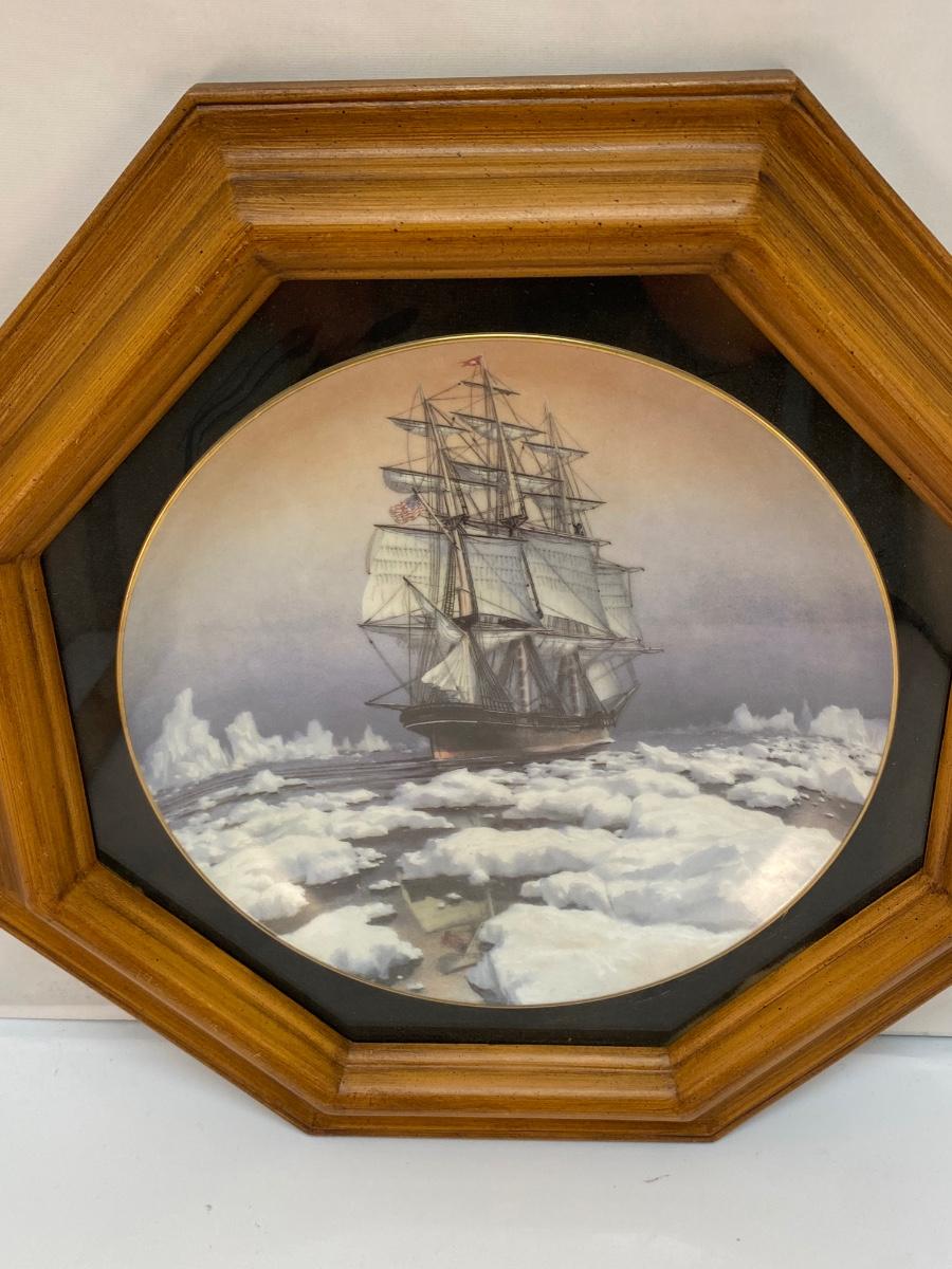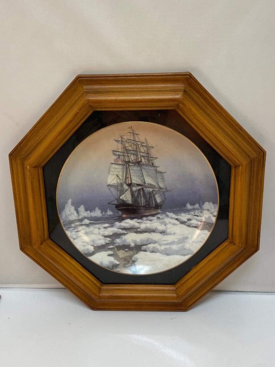 The Great Clipper Ships Plate Collection Redjacket Collector Plate in Octagon Frame. in good condition.