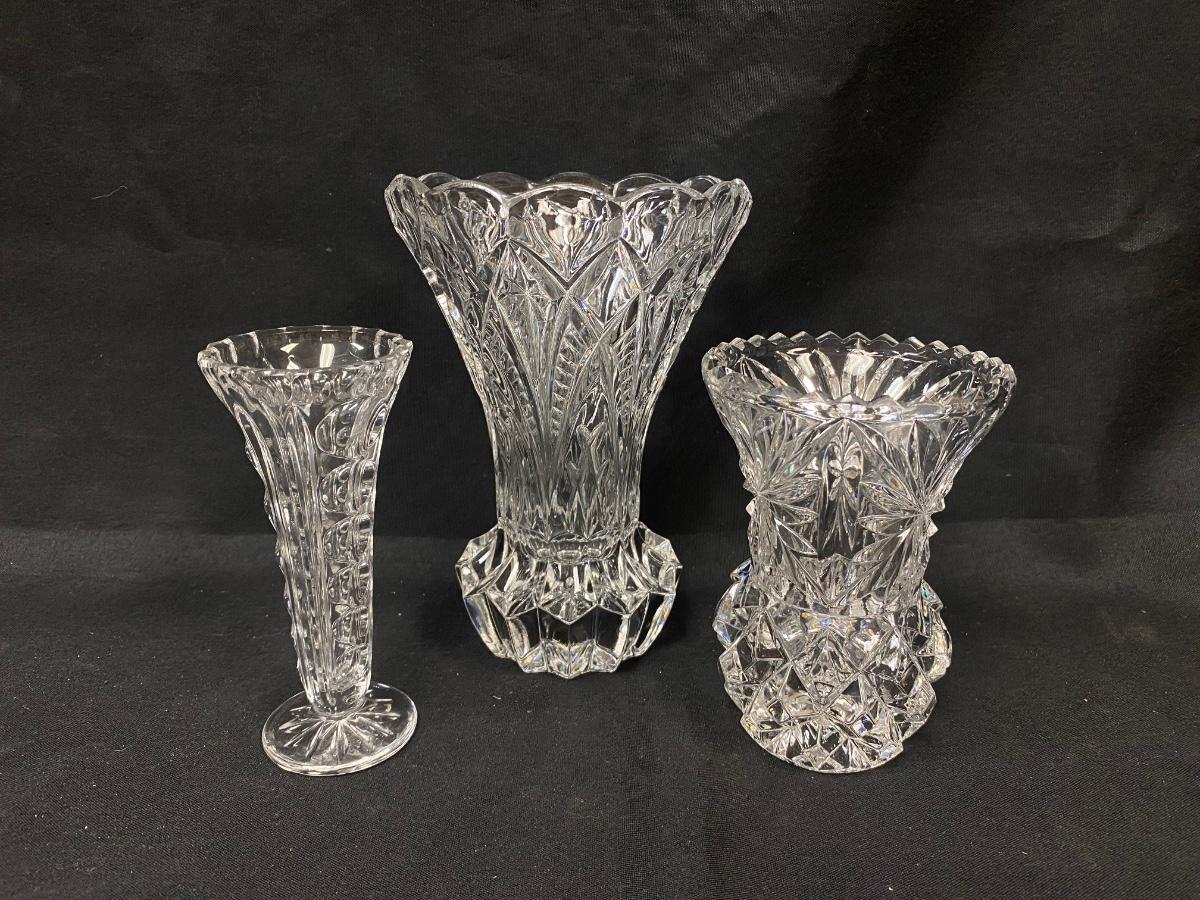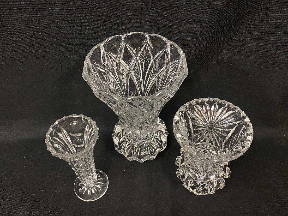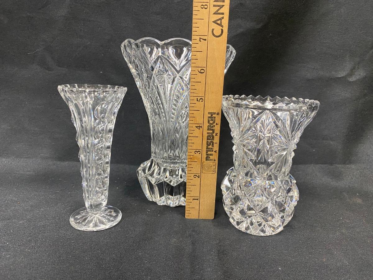 Lot of Three Fluted Glass Crystal Pineapple Shaped Flower Vases