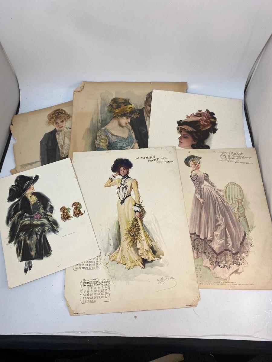 Lot of 6 Victorian Style Fashion Art Prints. Removed from magazines or calendars. Can be framed.