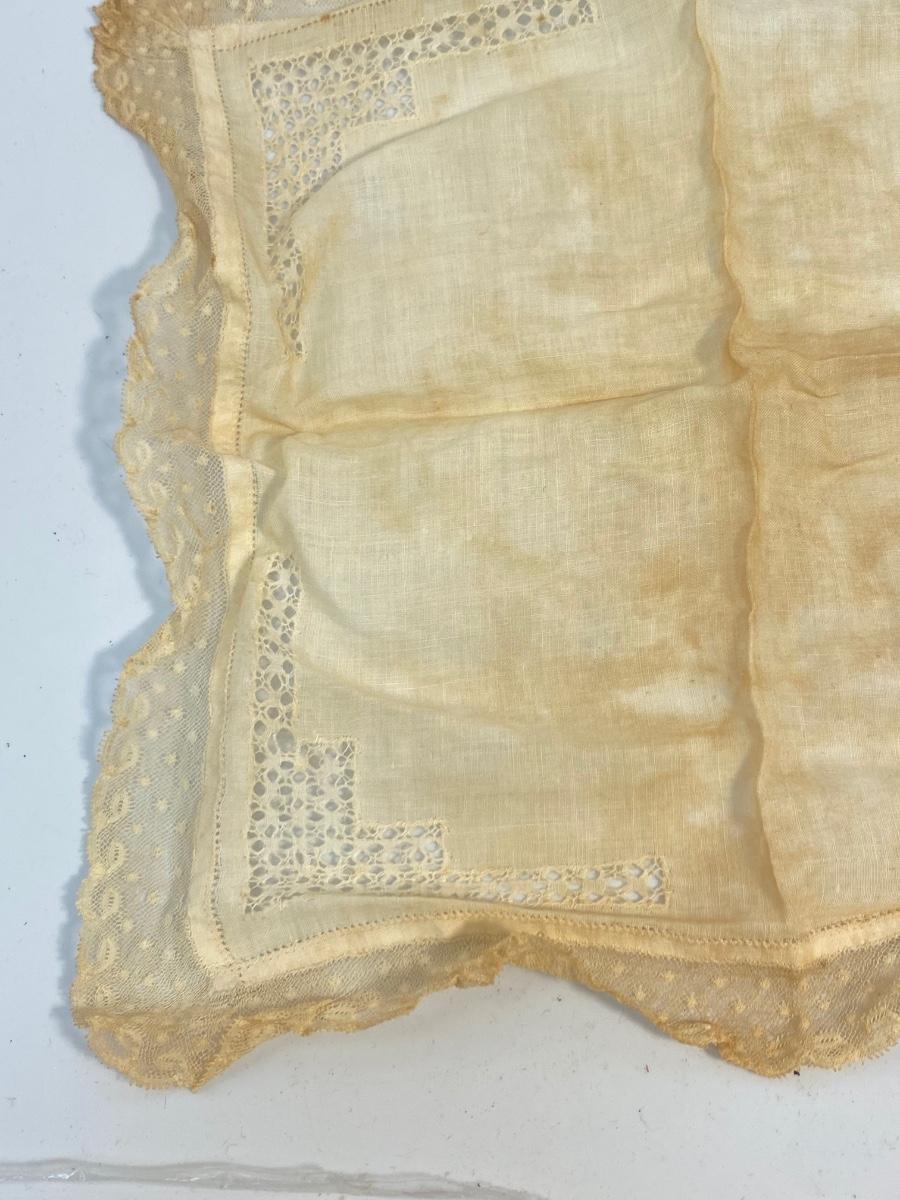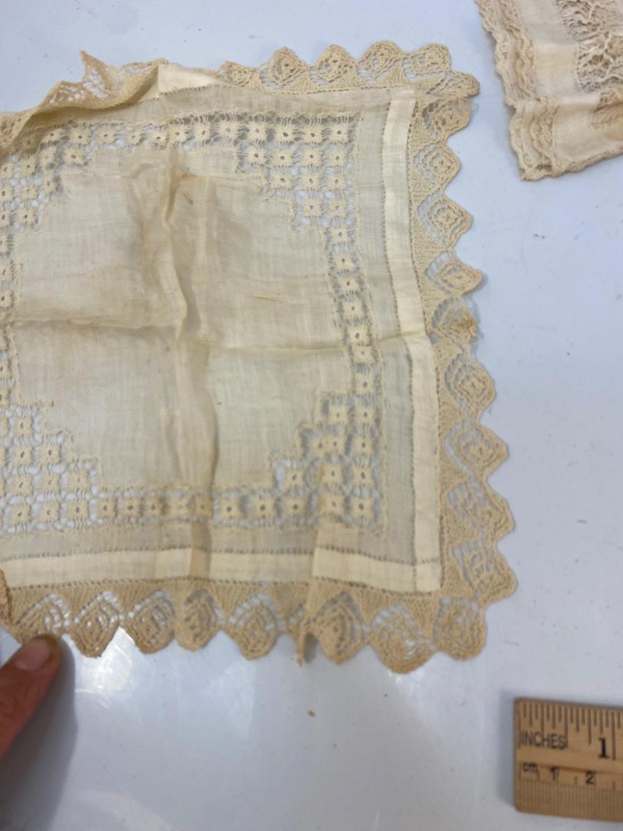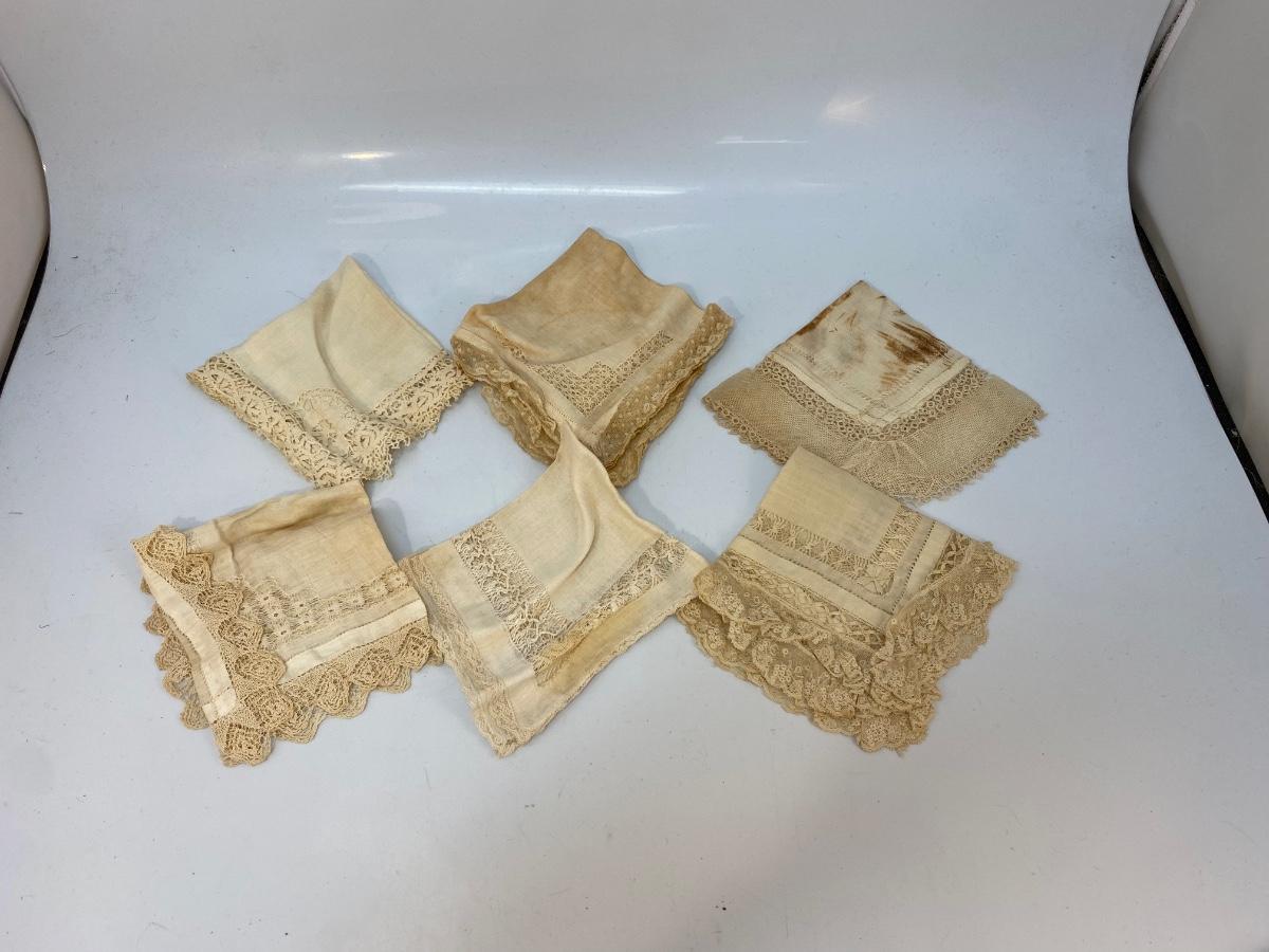 Set of 6 Vintage Antique Lace & Cotton Handkerchiefs Pocket Square Hanky. All have various stages of discolor, one is stained more than the rest.