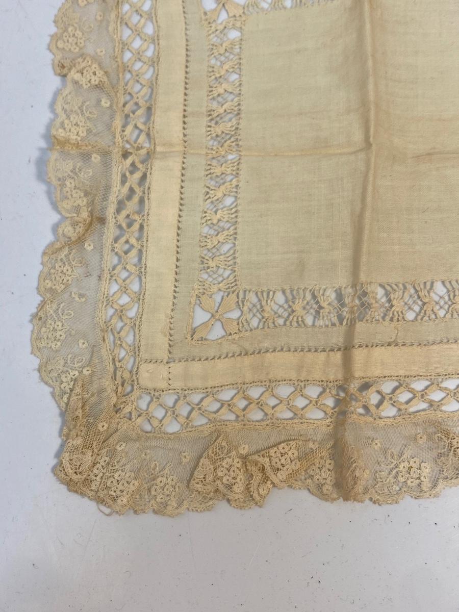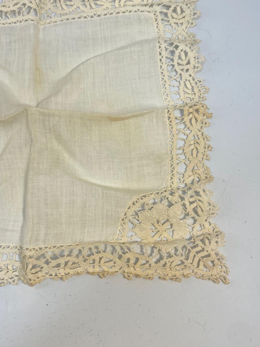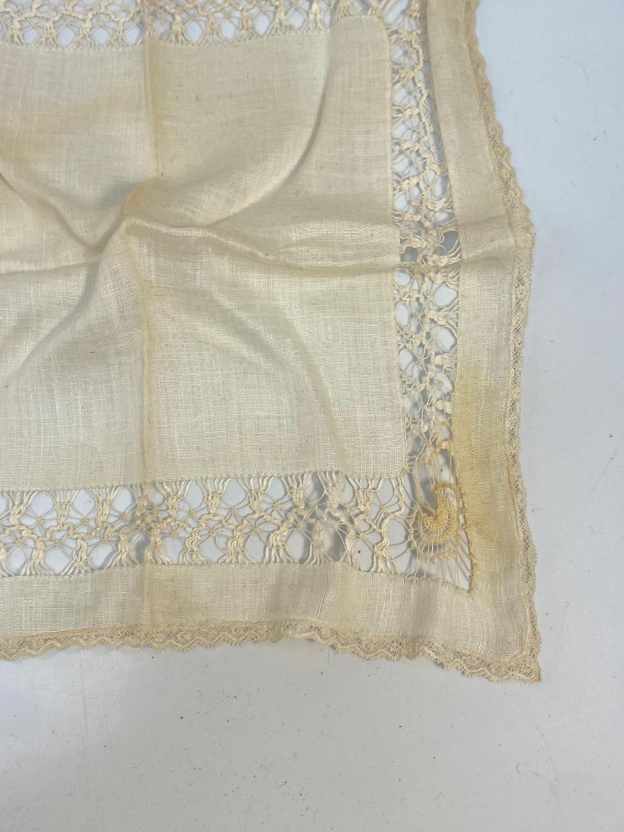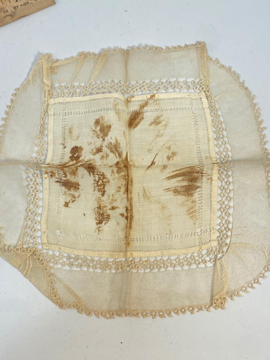Set of 6 Vintage Antique Lace & Cotton Handkerchiefs Pocket Square Hanky. All have various stages of discolor, one is stained more than the rest.