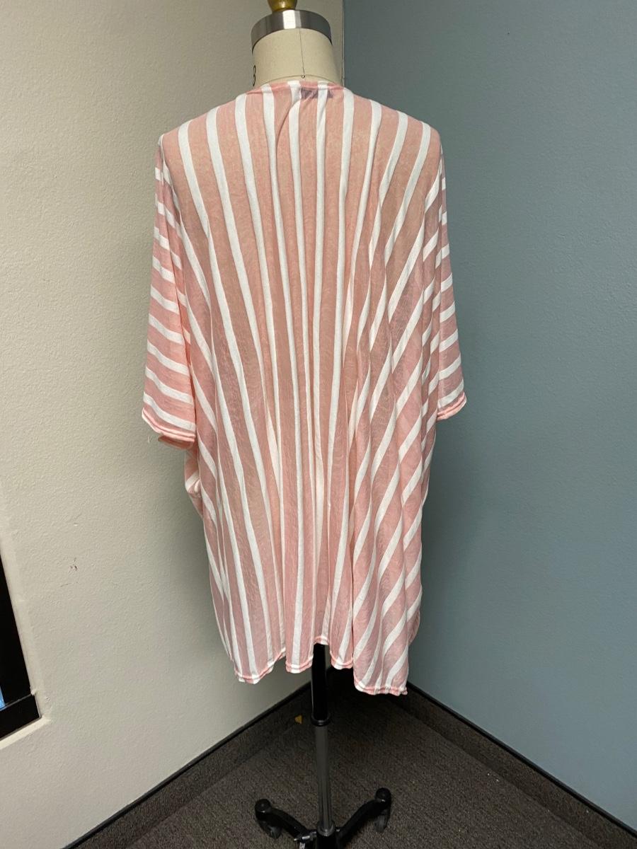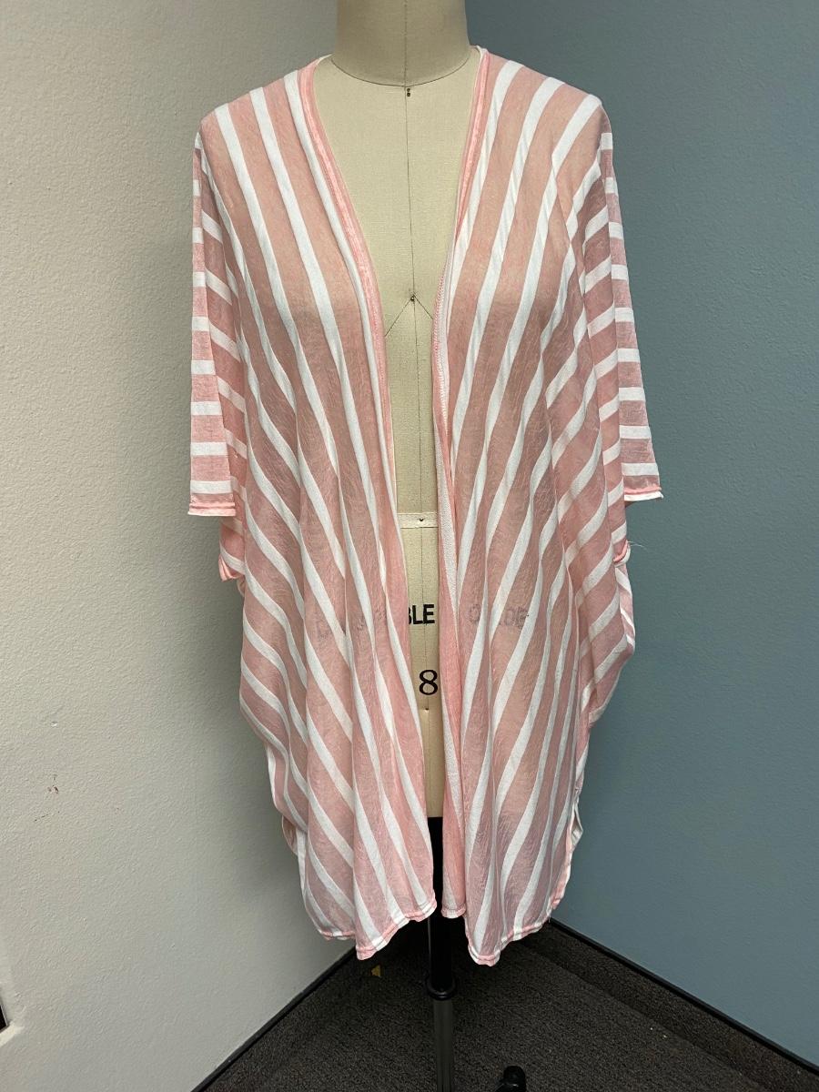 Pale Pink and White Striped Batwing Cover Up Wrap