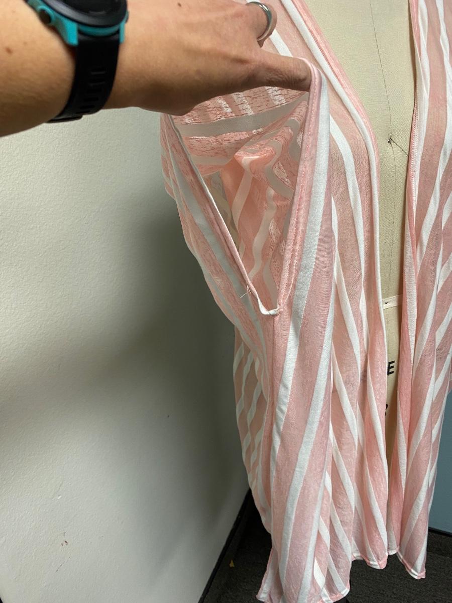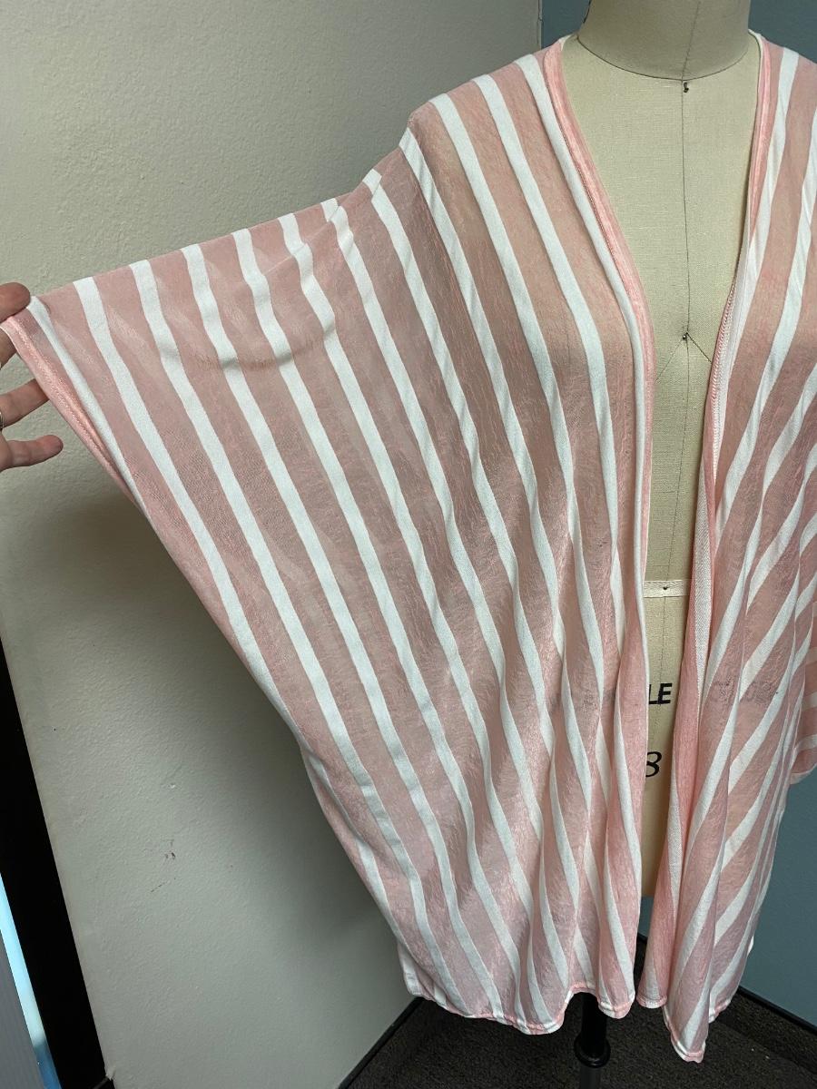 Pale Pink and White Striped Batwing Cover Up Wrap. No size tag, but would guess size Large/Xlarge. Good condition.