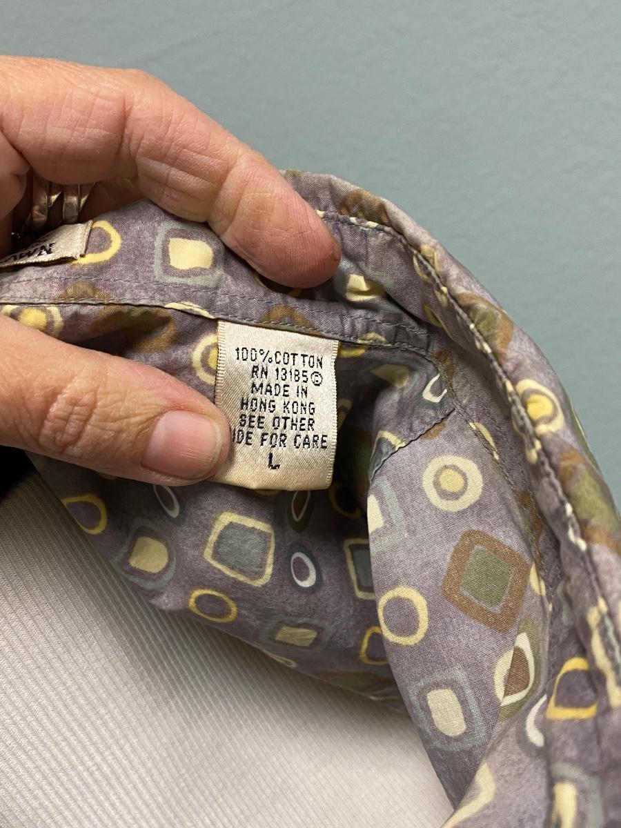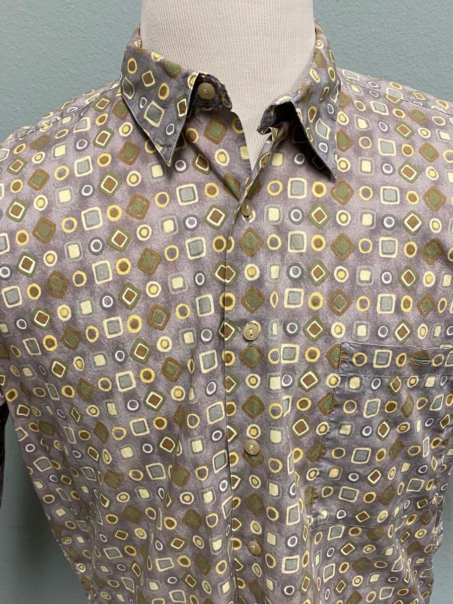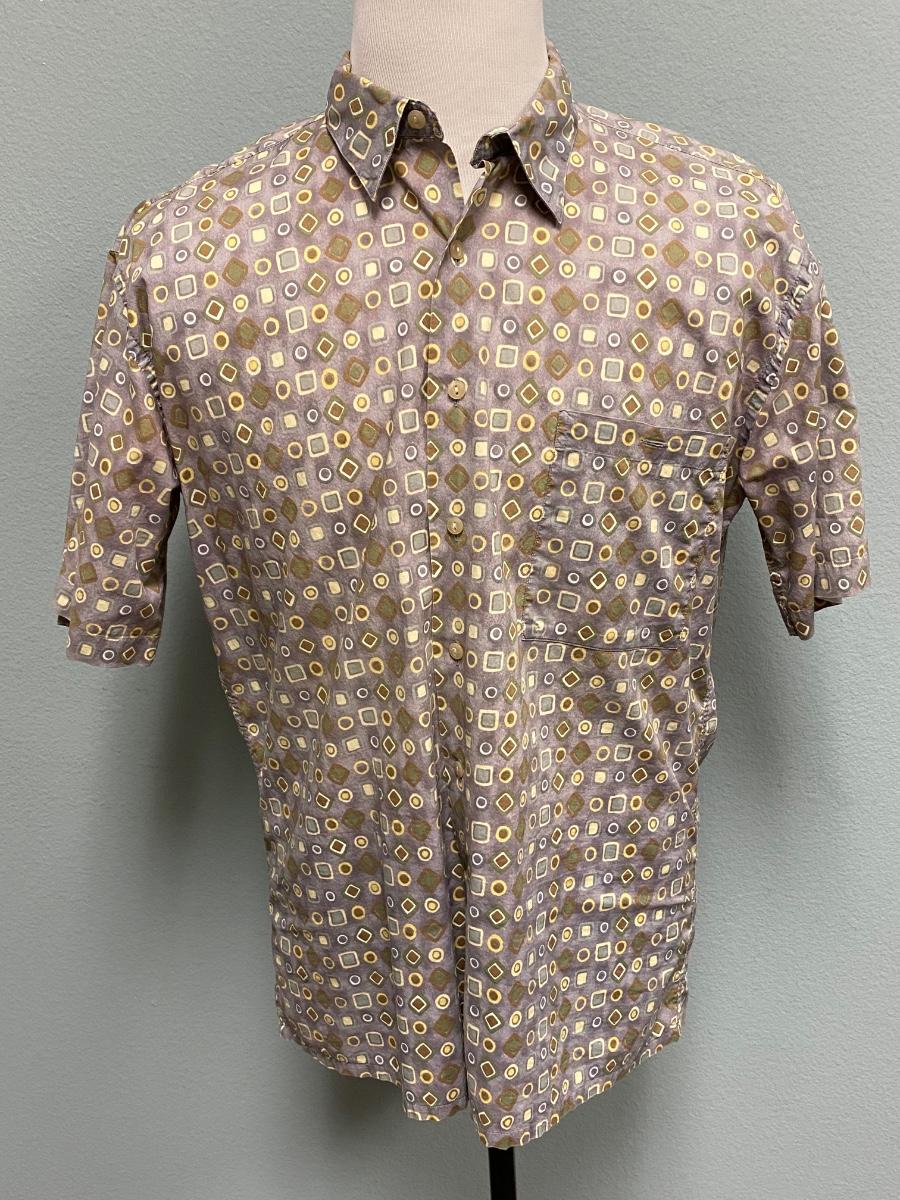 Men's Burma & Bibas Retro Pattern Hawaiin Button Front Shirt Large. Retro style pattern. In good condition but is missing the button for the pocket.