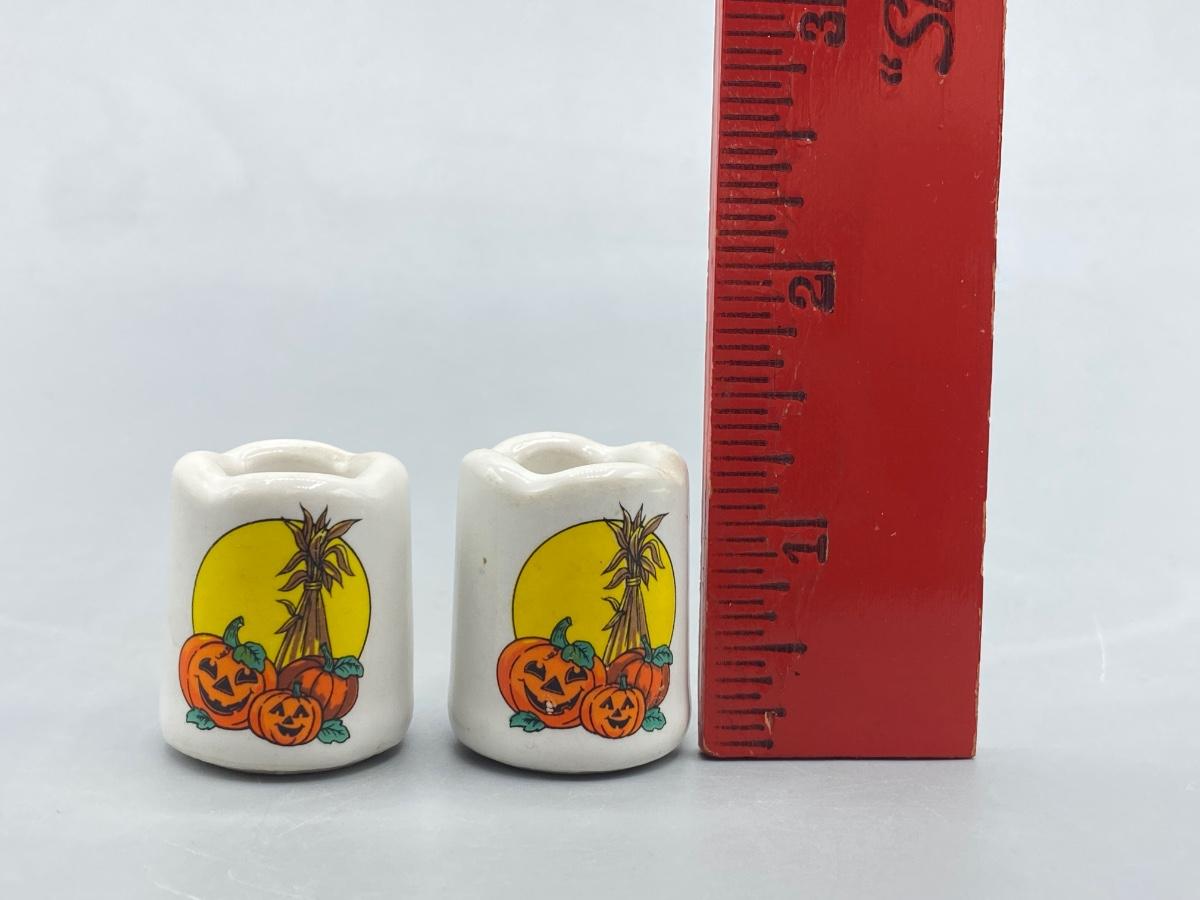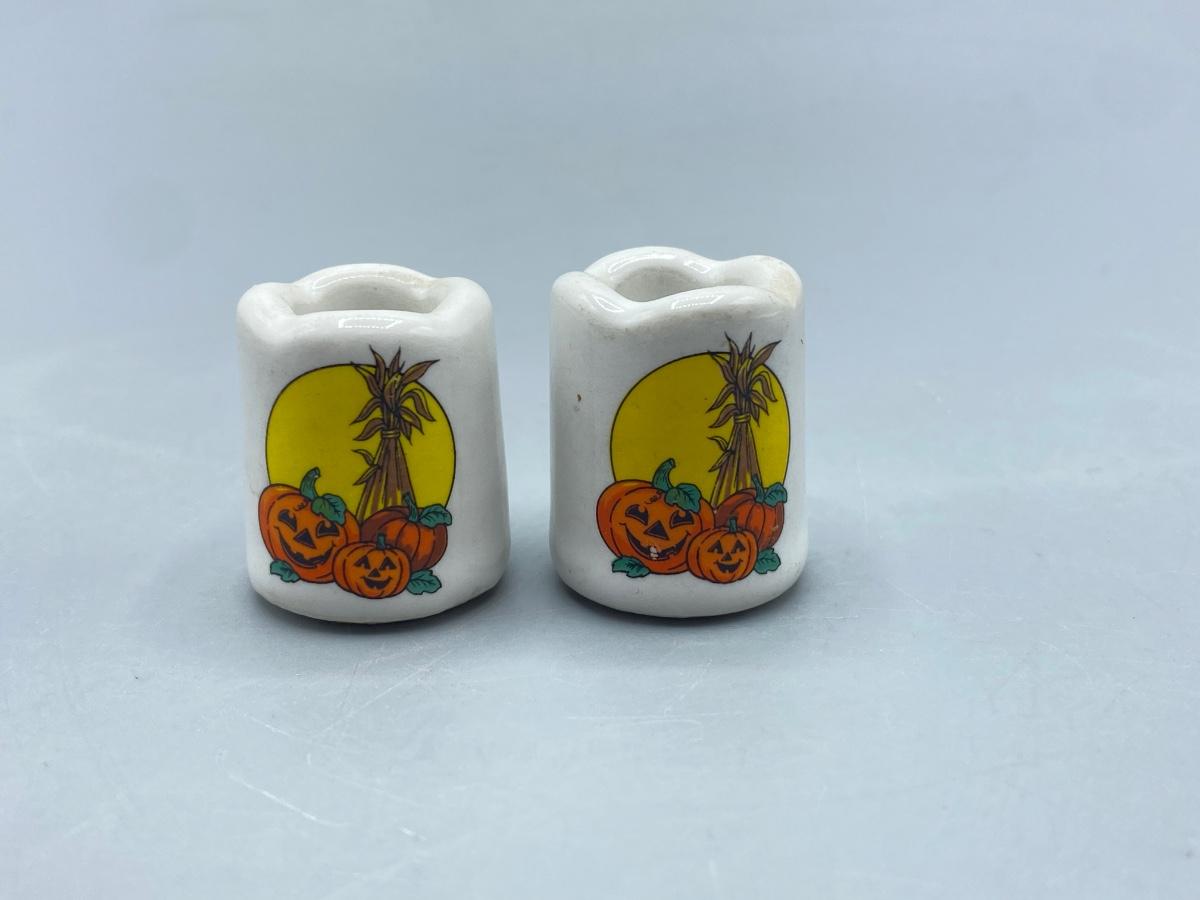 Pair of Vintage Halloween Autumn Fall Miniature Tiny Candle Holders