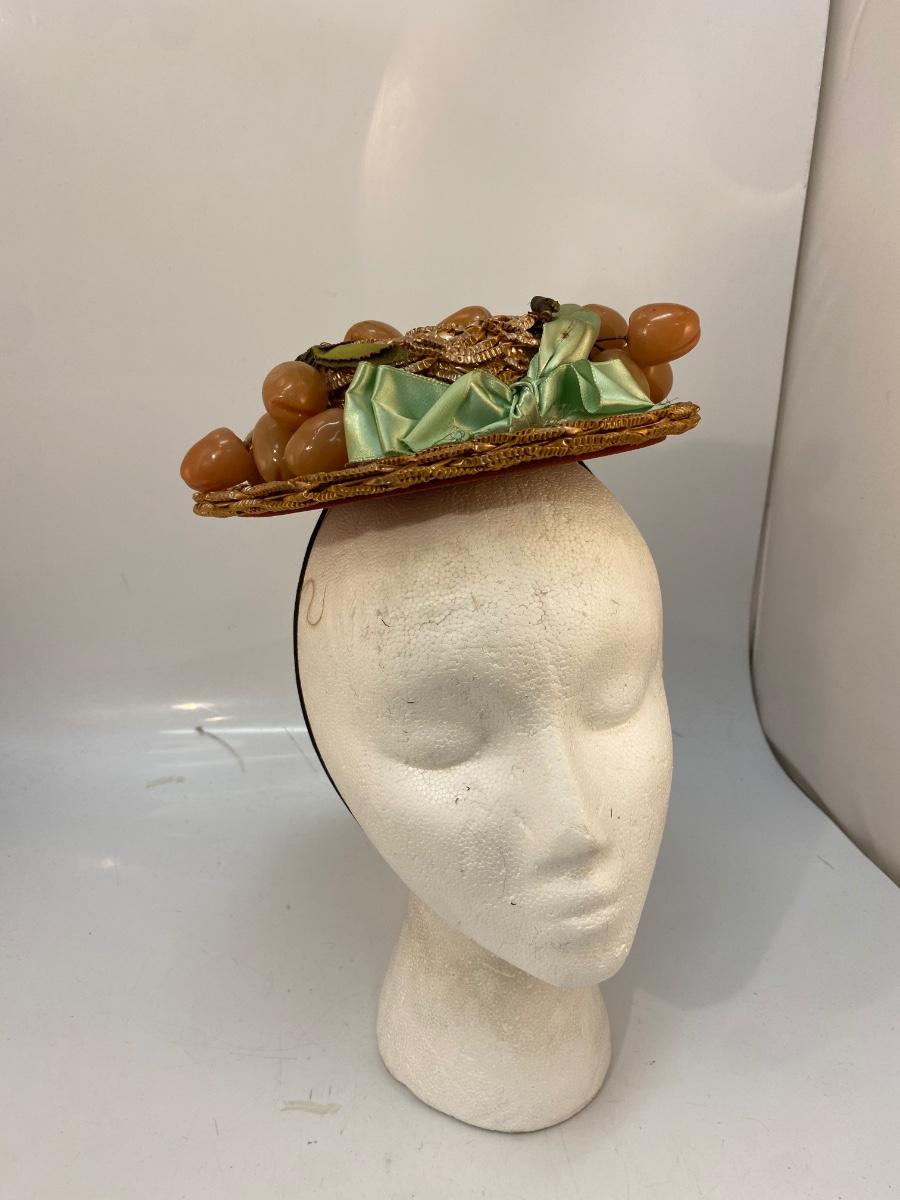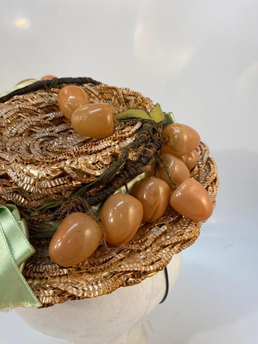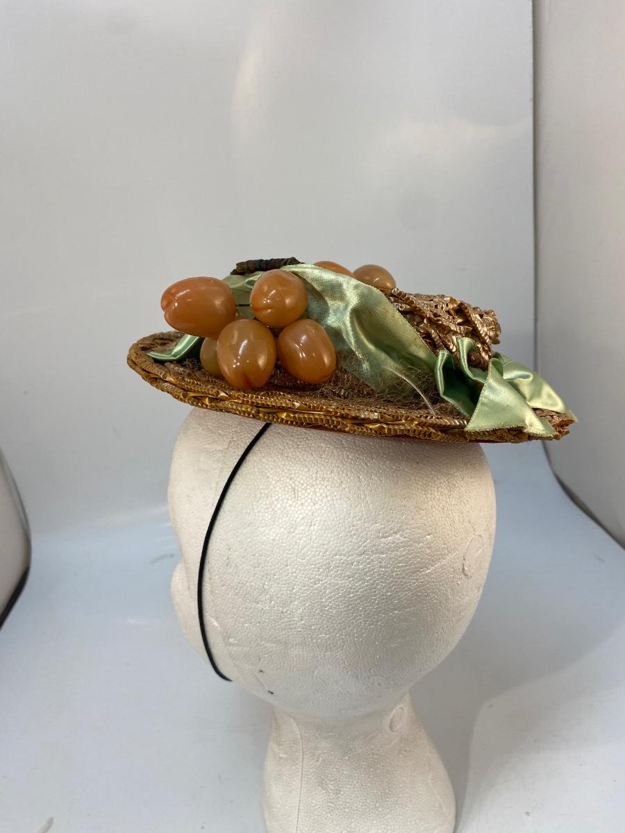 Vintage Antique Small Straw Hat Fascinator Laddie Northridge. In good vintage condition. Nicely woven with green ribbon and artificial fruit.