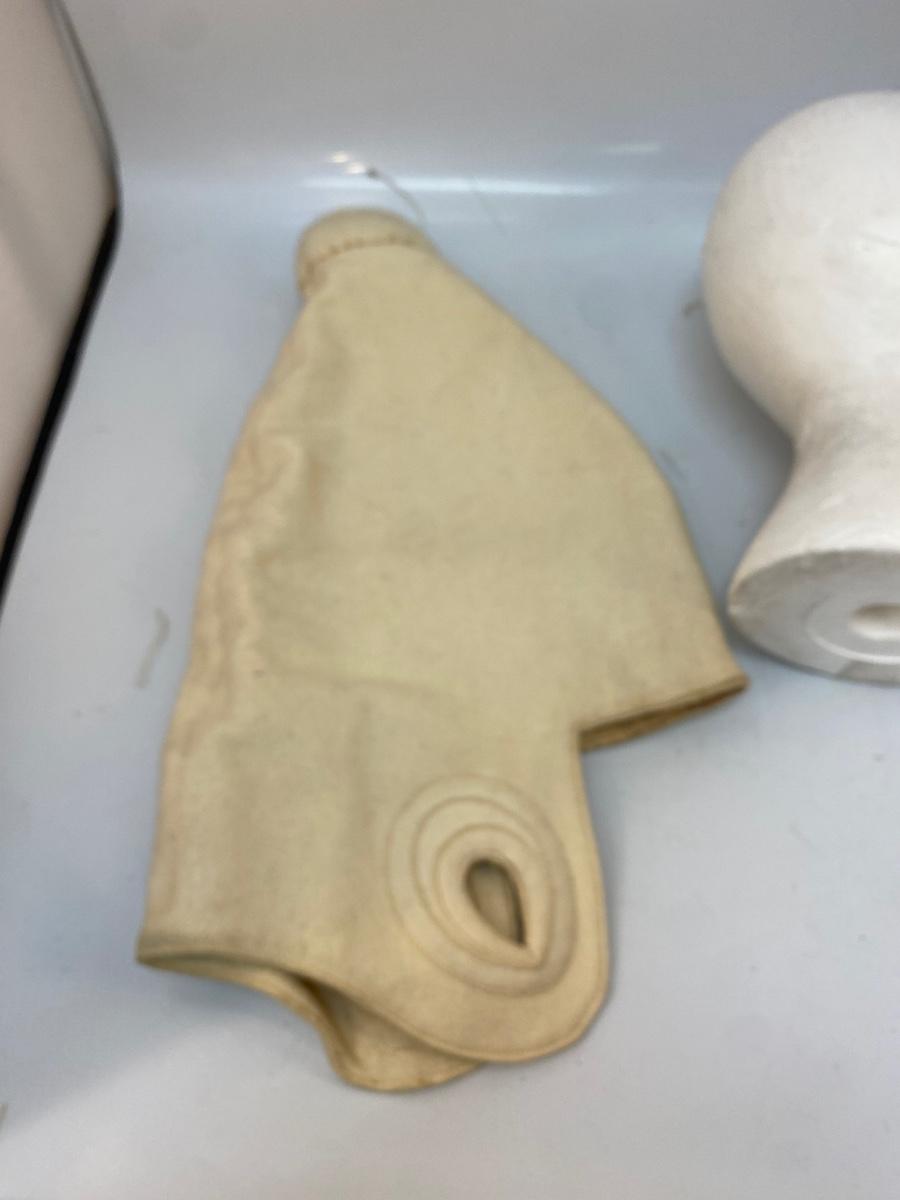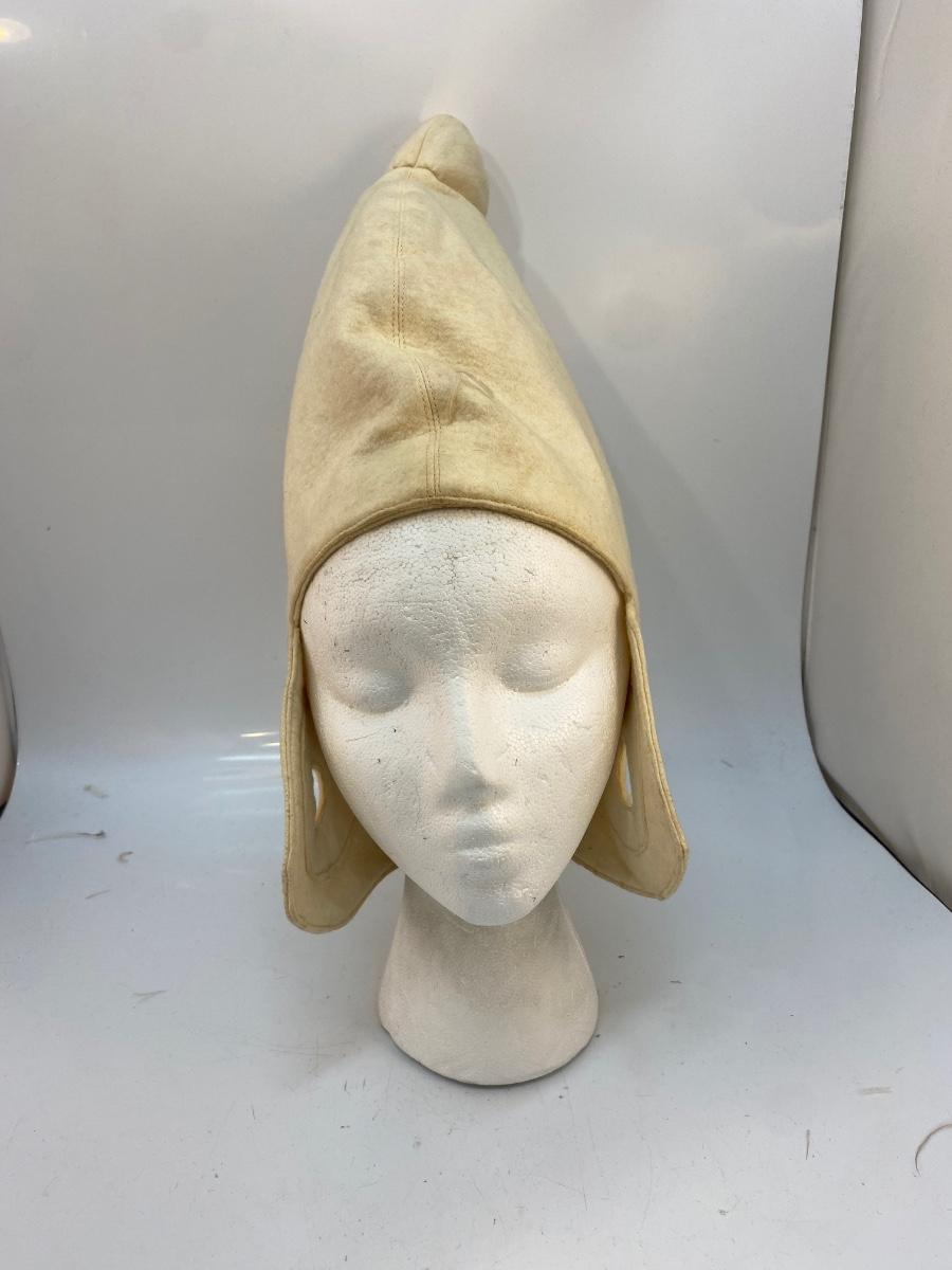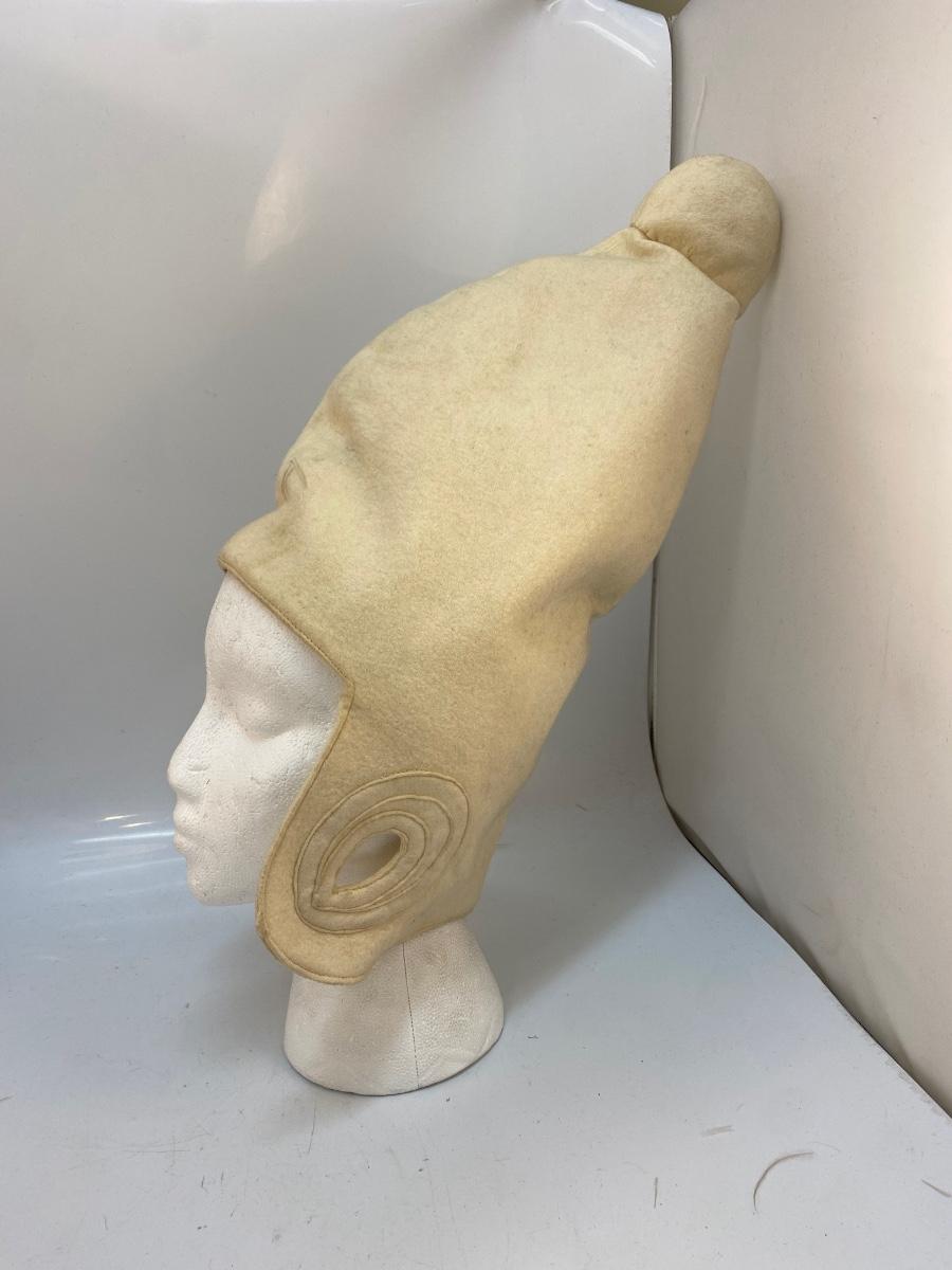 Vintage White Wool Felt Beanie Elf Gnome Dunce Cap. Odd hat. Slight discolor from age.