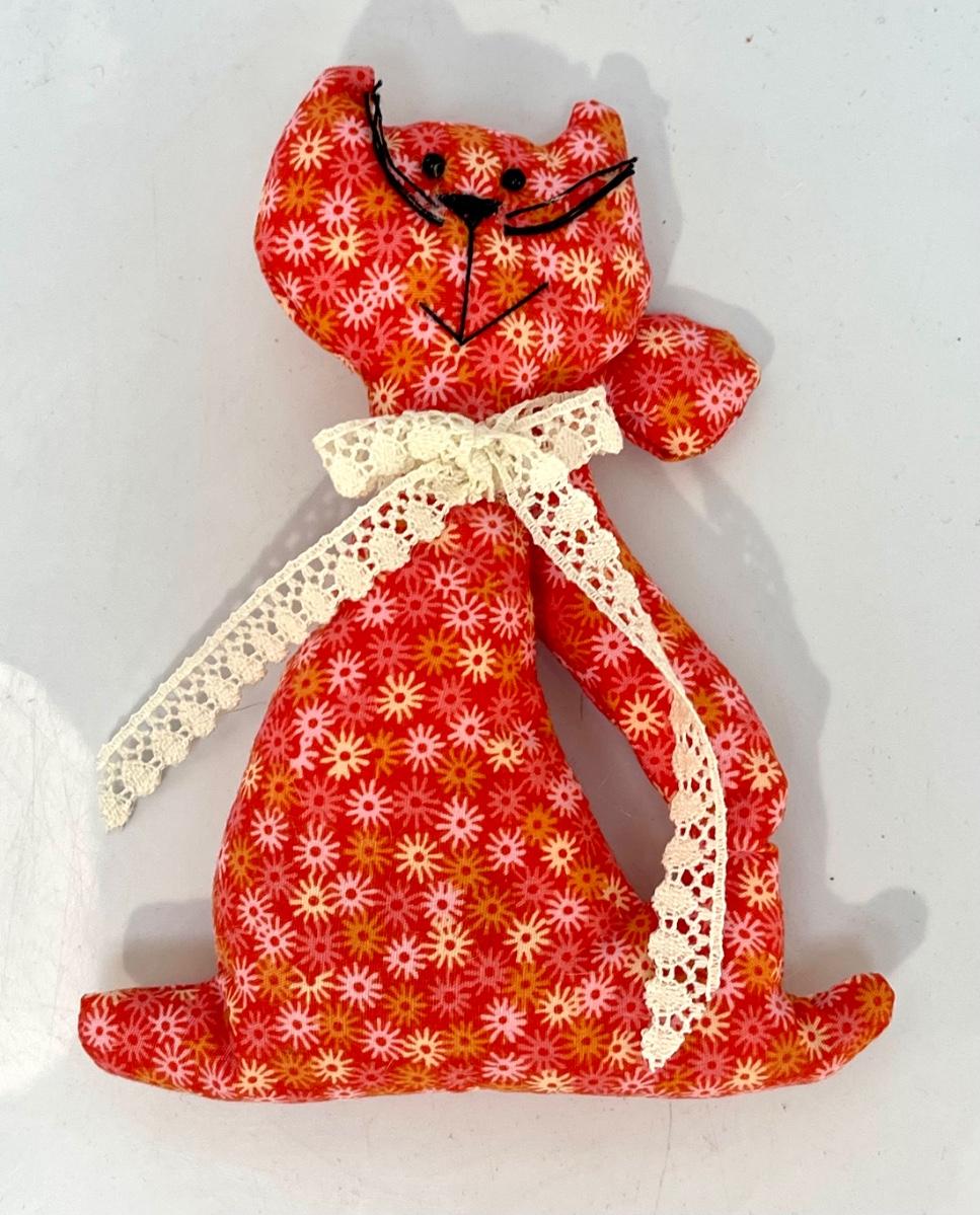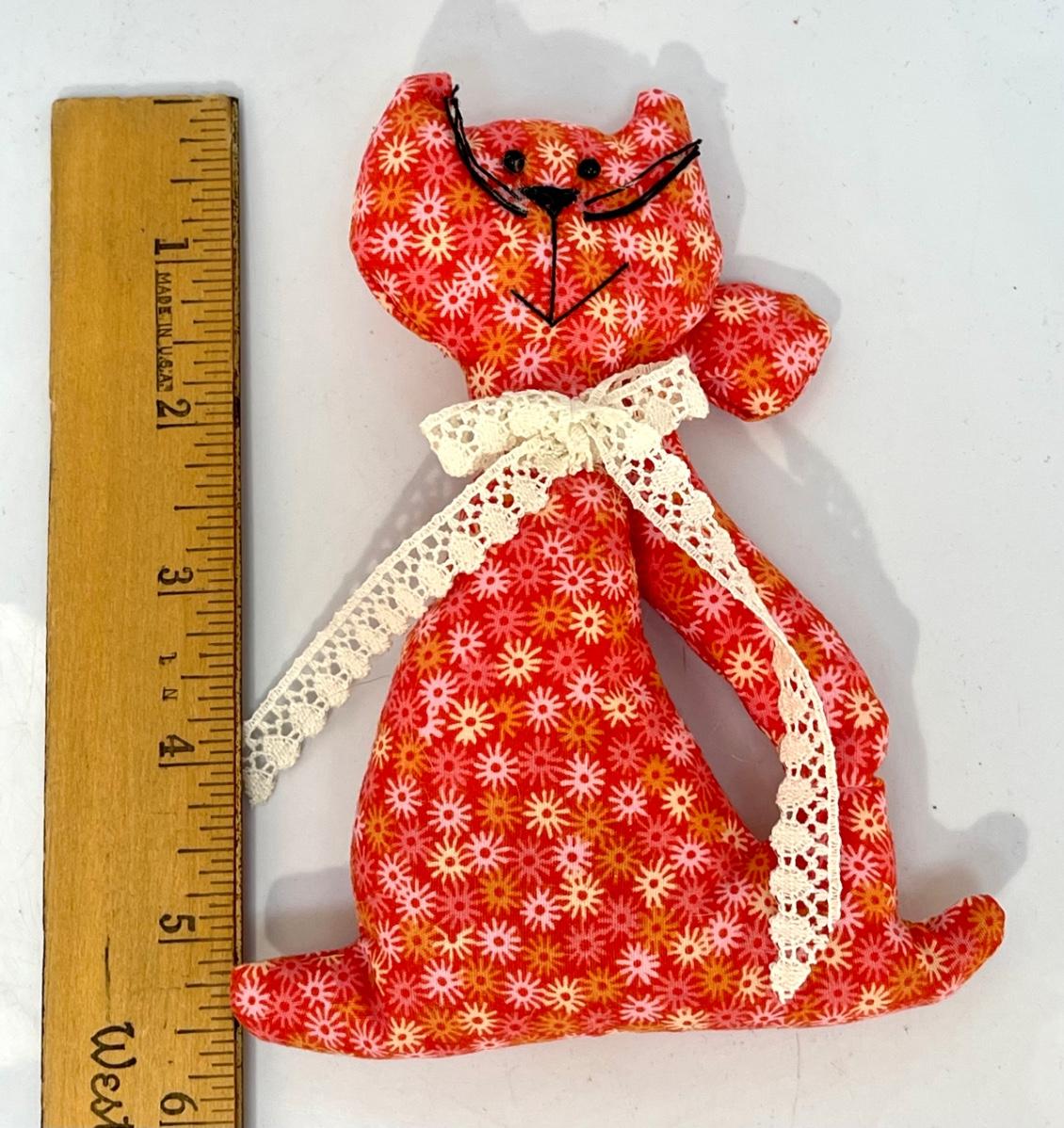 Vintage Cute Folk Art Handmade Cat Kitten Kitty Stuffed Plush Pillow. In good condition. Under 6" size.