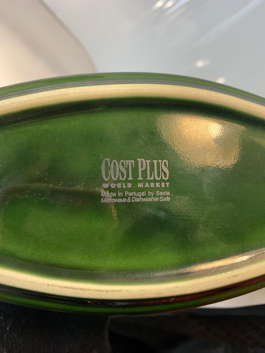 Forest Green Cost Plus World Market Oblong Slender Lidded Casserole Dish. Newer dish with a retro look. In good condition. Displays great.