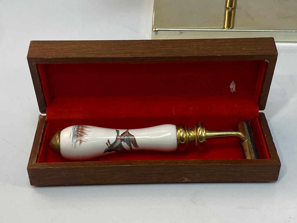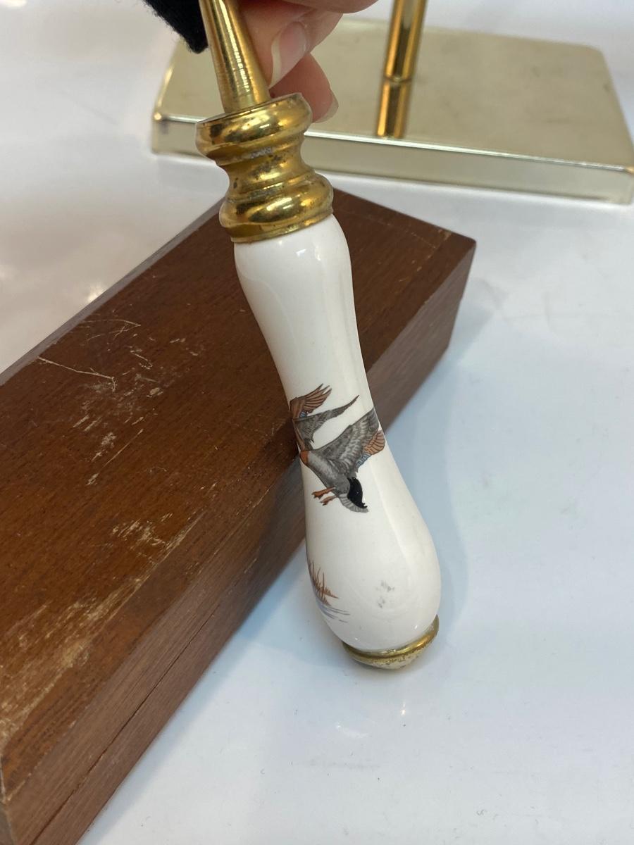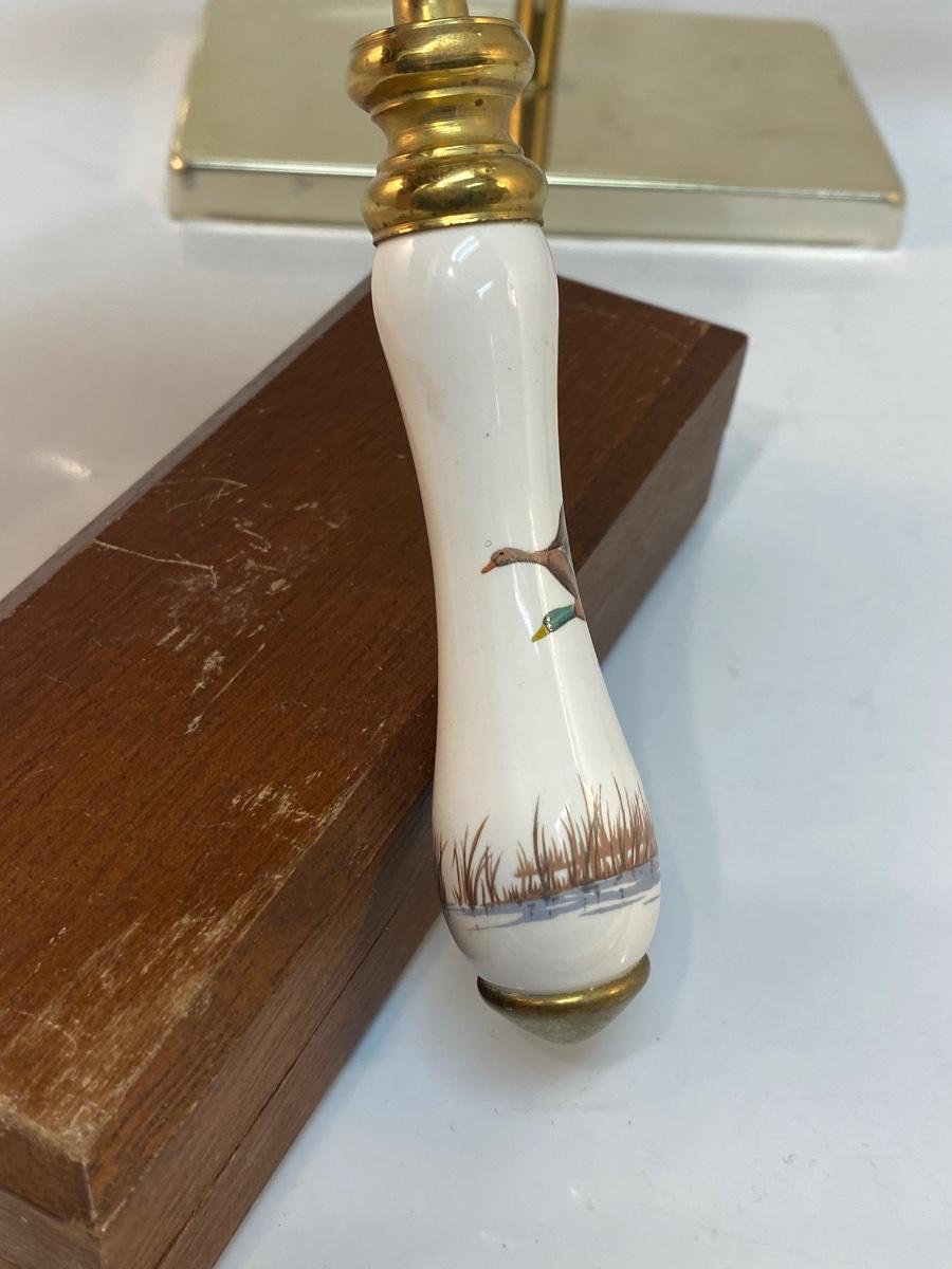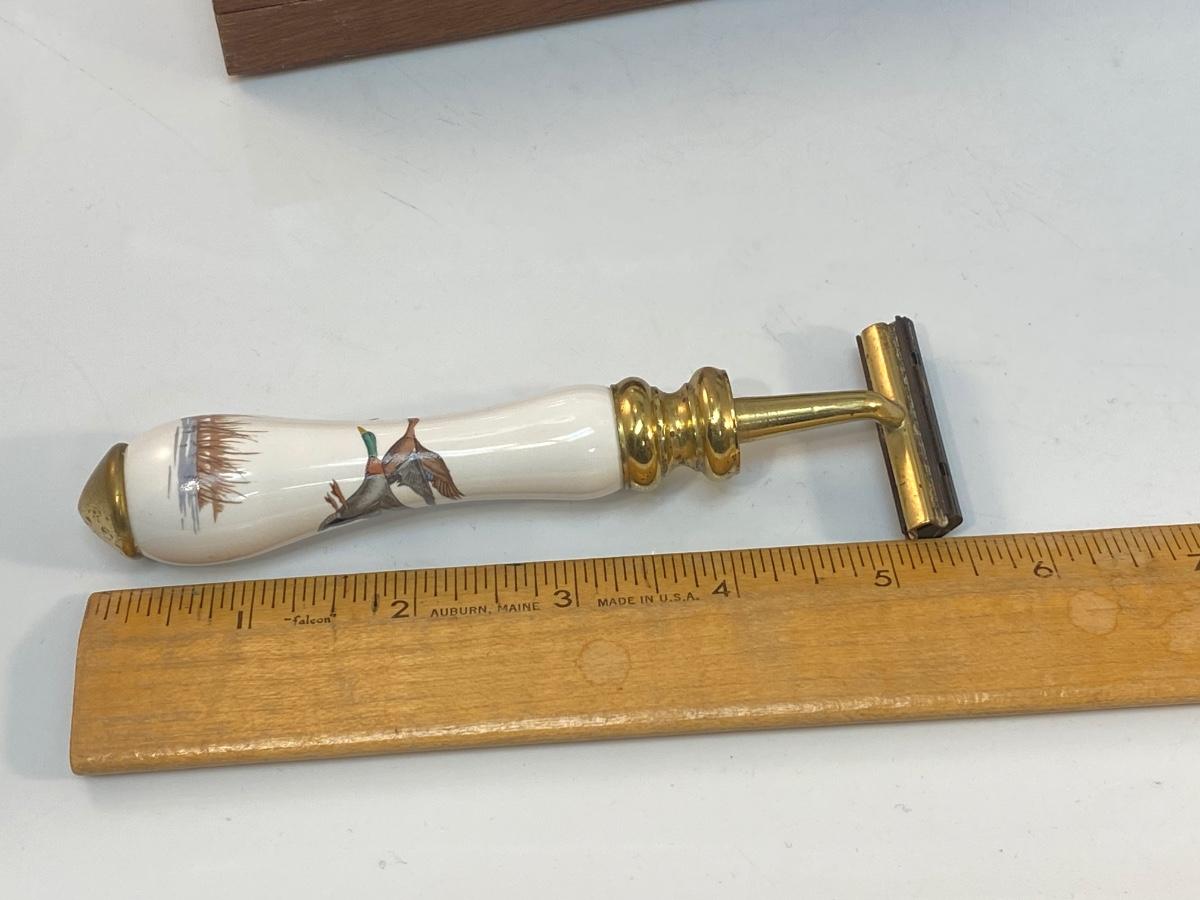Vintage Porcelain Handled Shaving Razors Mallard Ducks Pattern with Wood Box