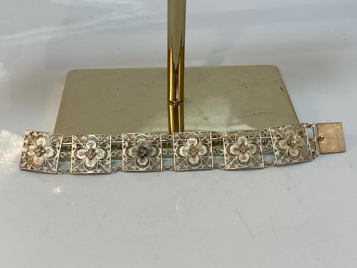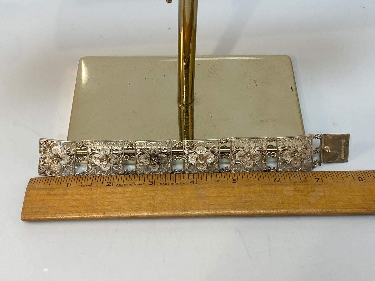 Vintage Sterling Silver Twisted Wire Art Floral Pattern Chunkey Link Bracelet