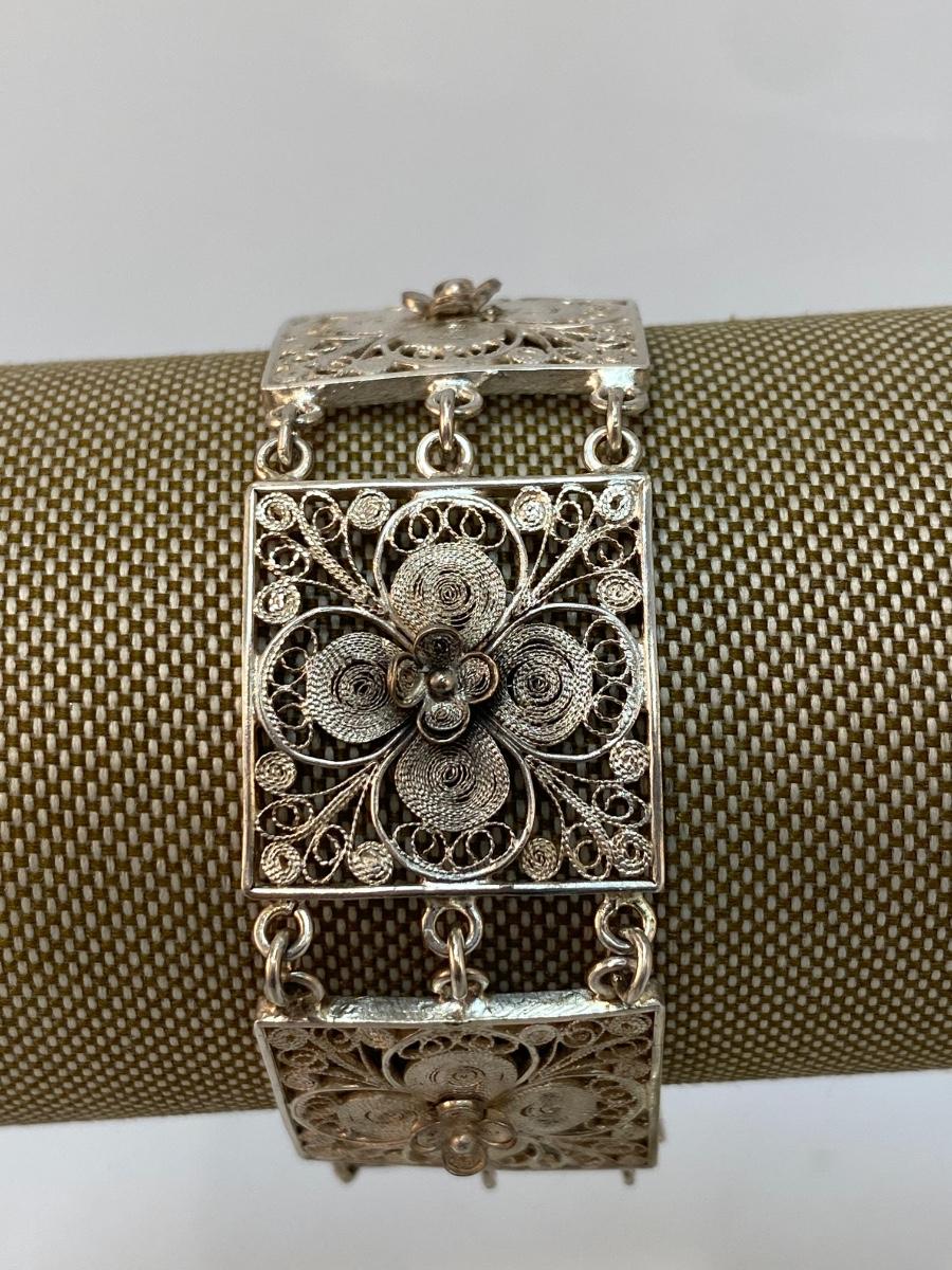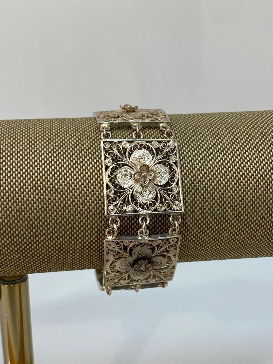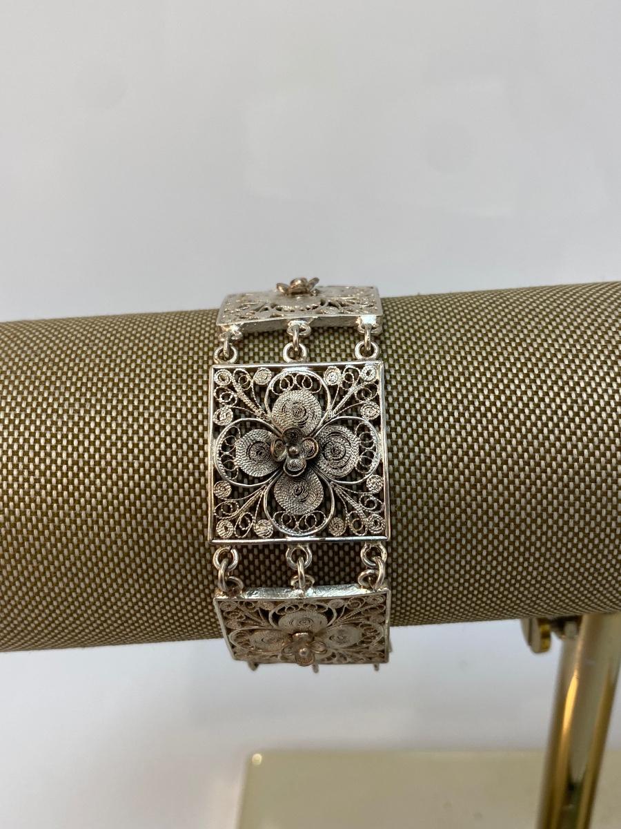 Vintage Sterling Silver Twisted Wire Art Floral Pattern Chunkey Link Bracelet. In good condition. Beautifully crafted.