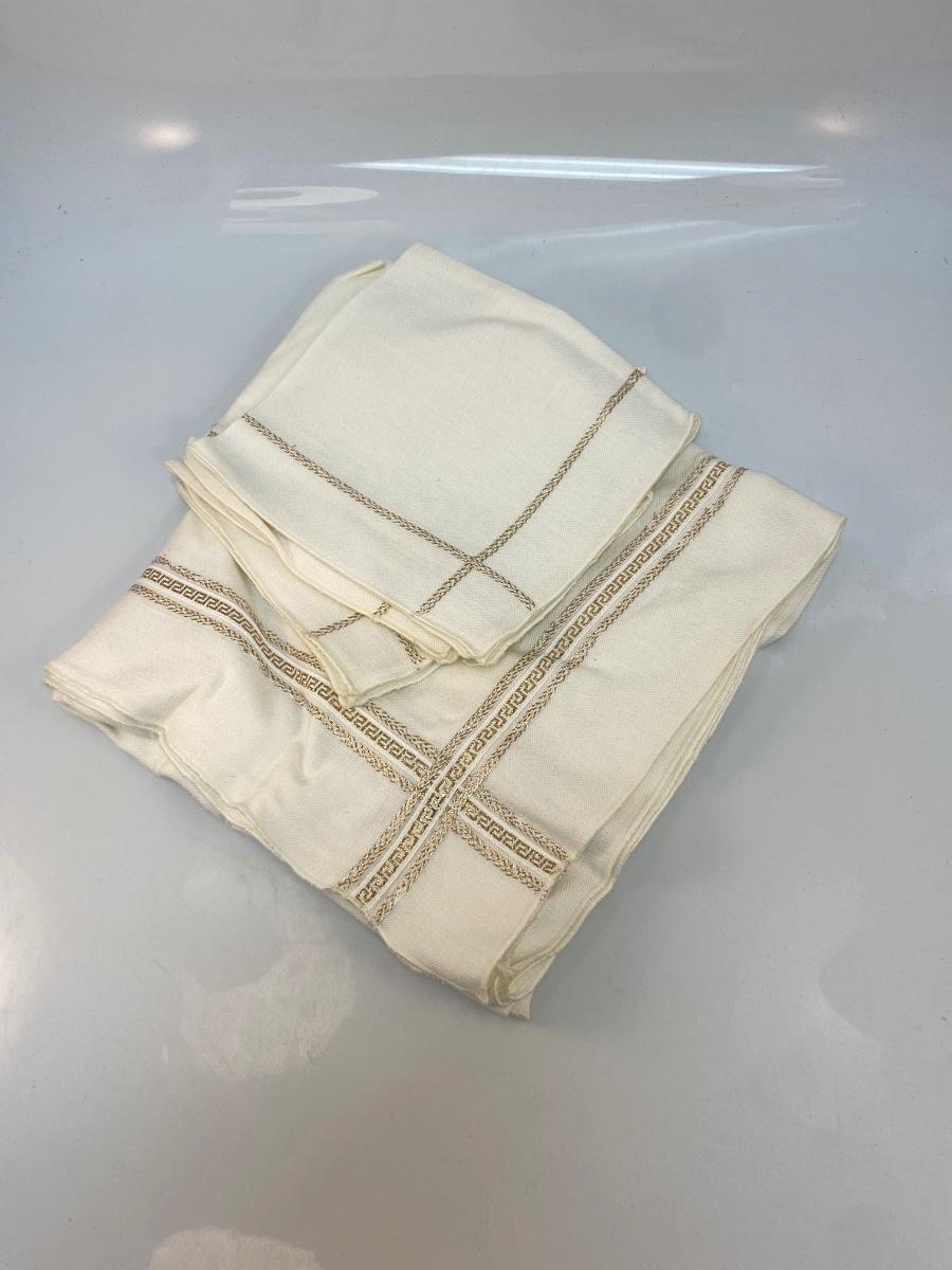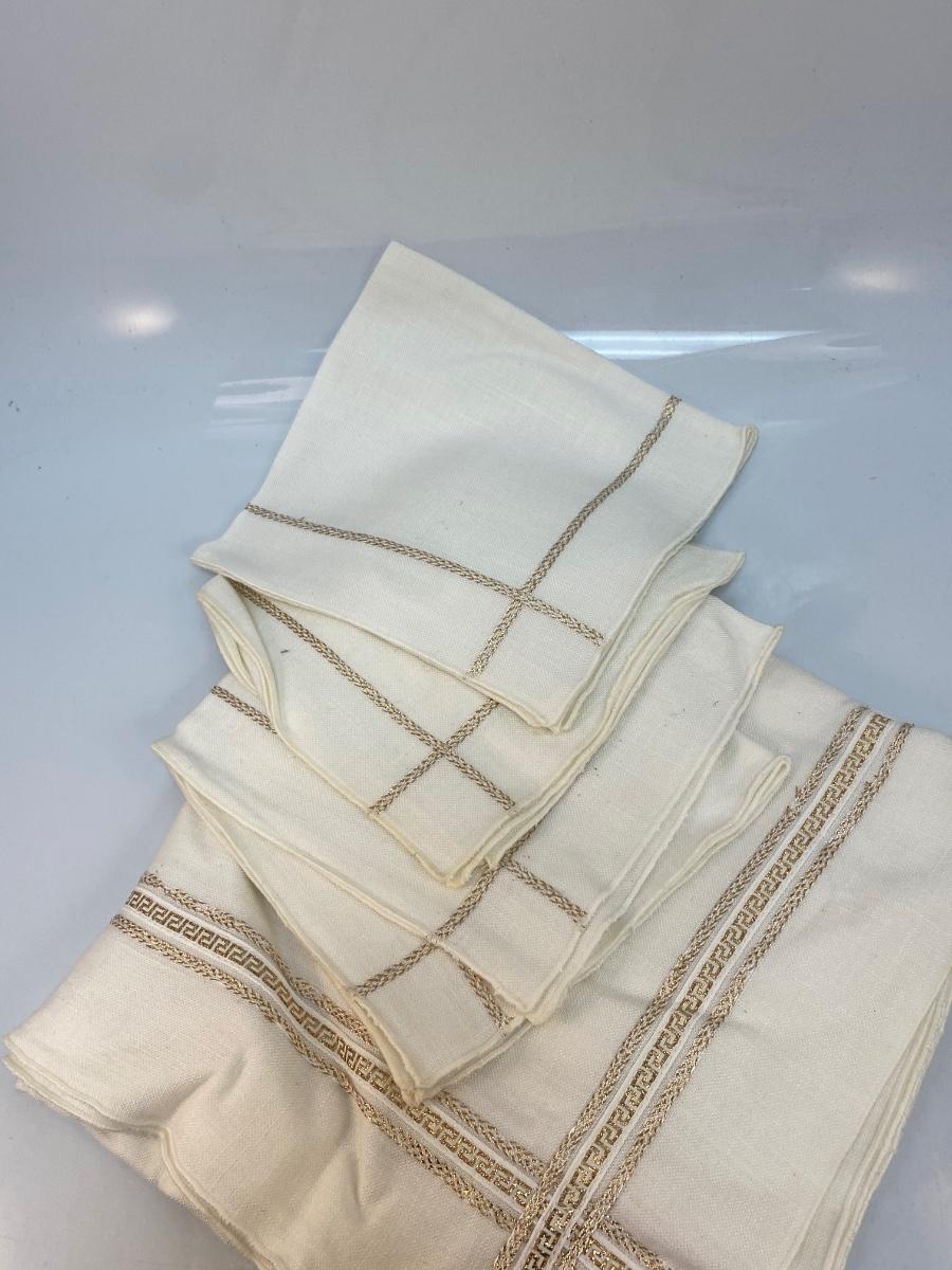 White & Gold Metallic Greek Key Edge Tablecloth and Napkin Set