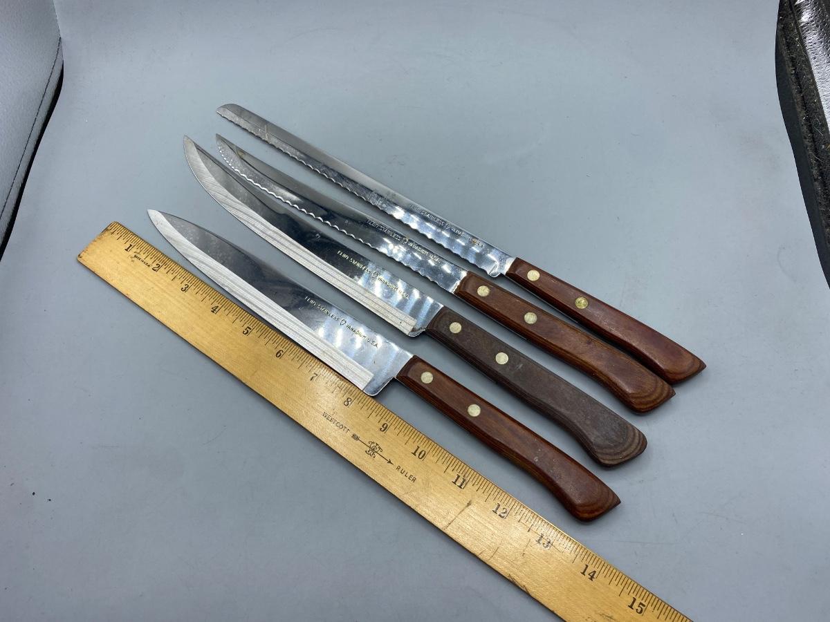 Set of 4 Wood Handled Flint Stainless Vanadium USA Kitchen Knives Cutlery