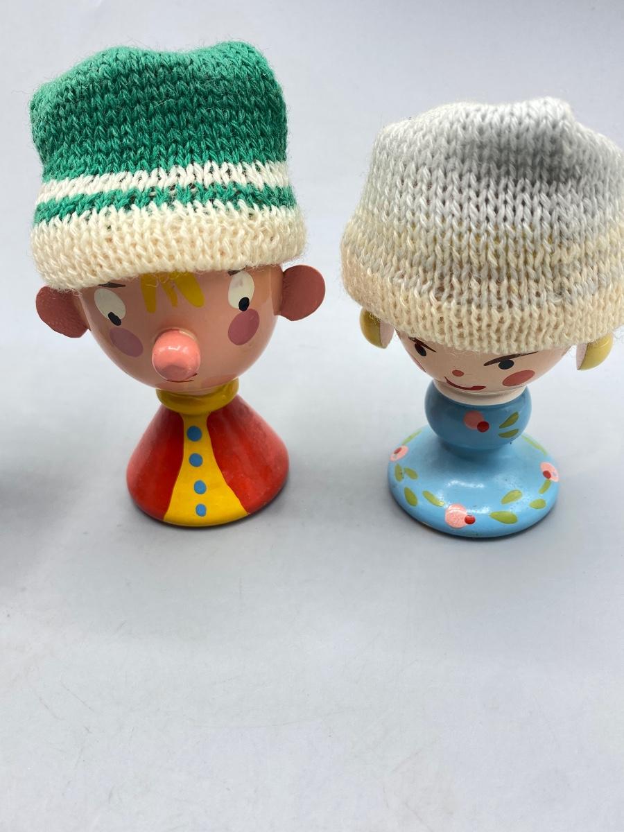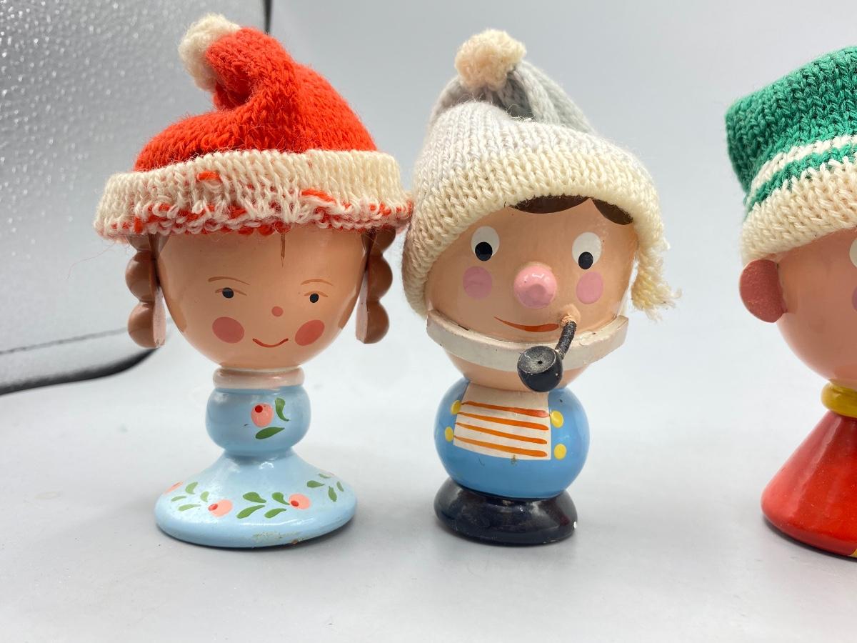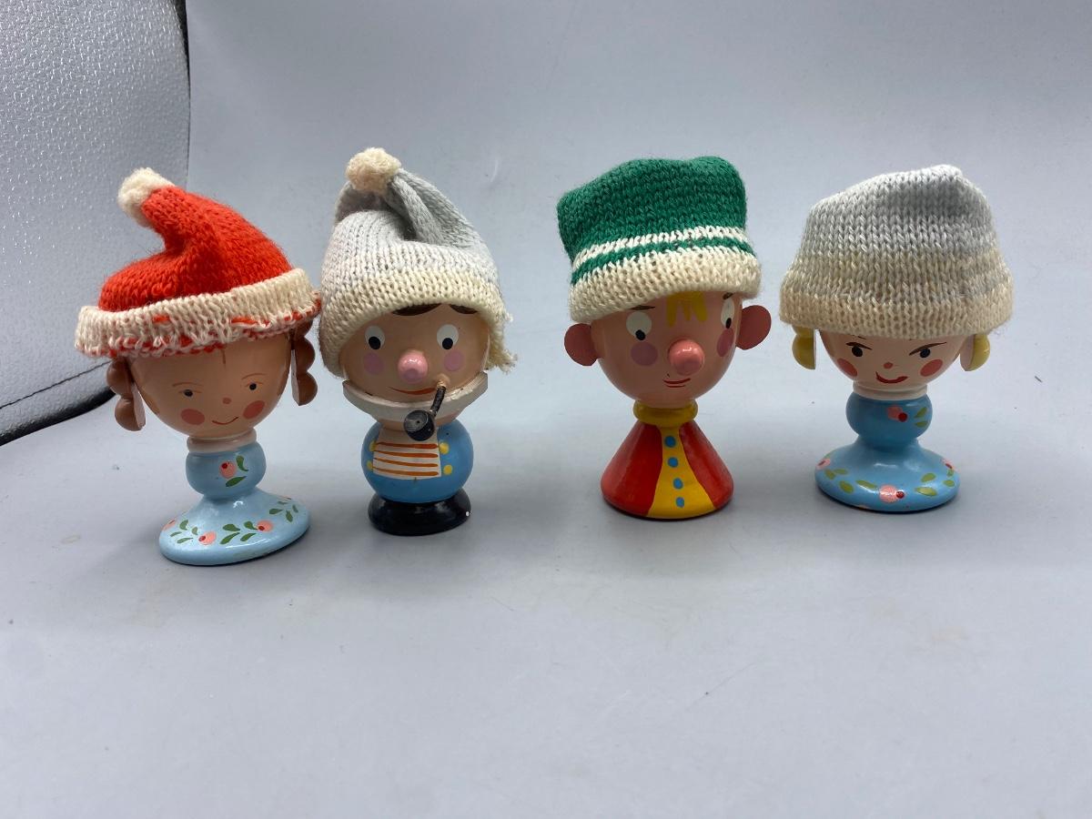 Set of 4 Vintage Sevi Painted Wooden Egg Cups with Beanie Hats