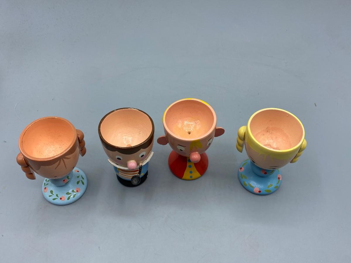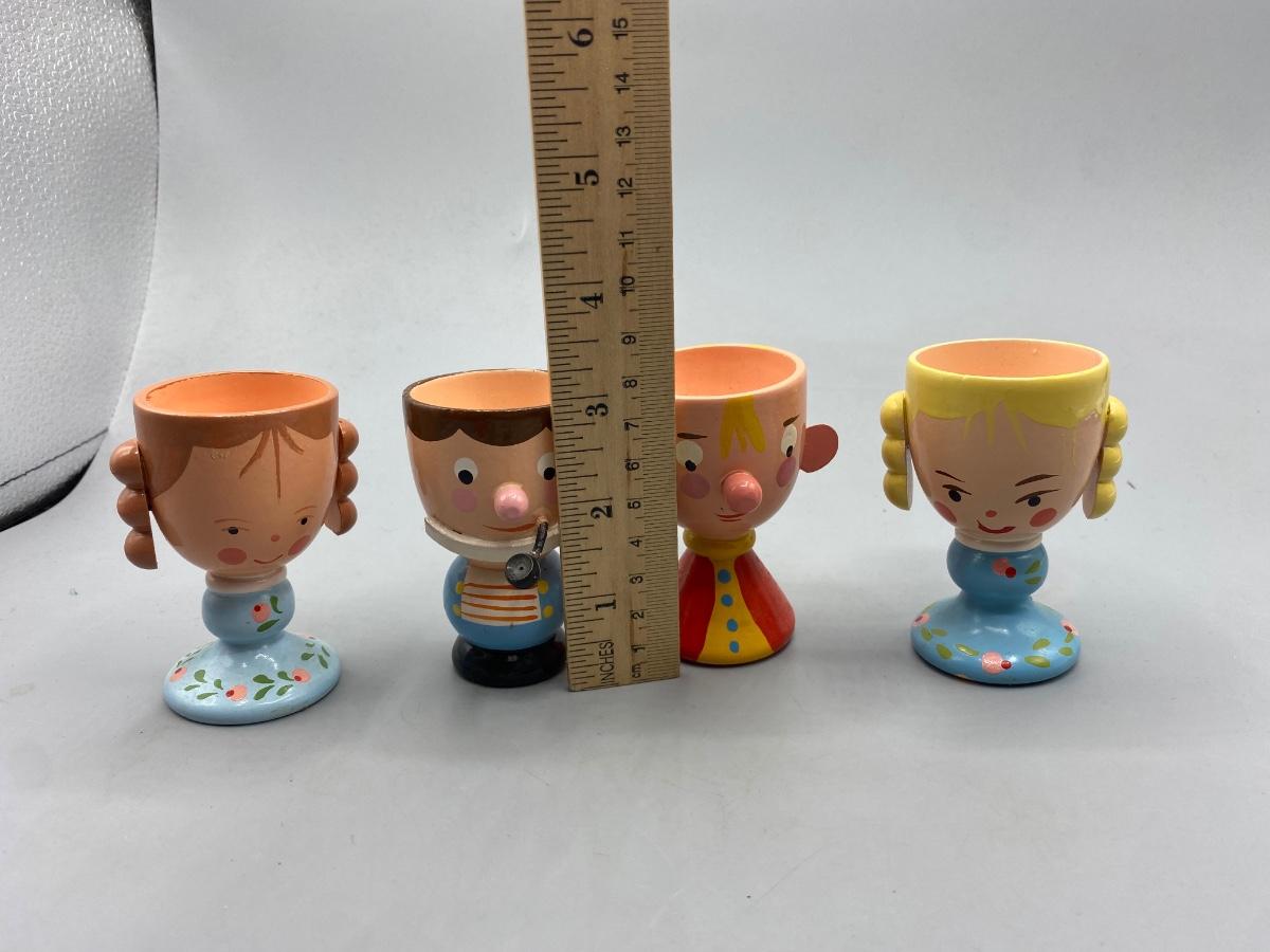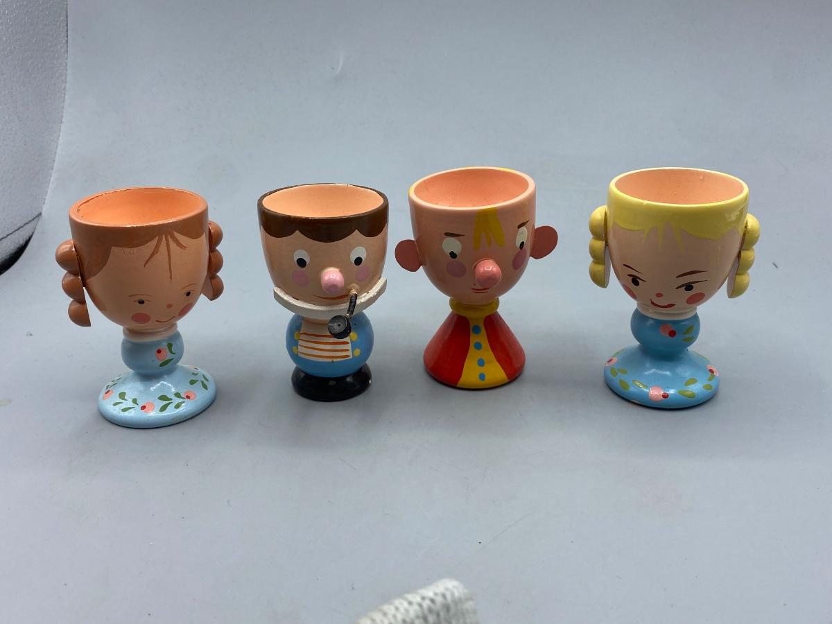 Set of 4 Vintage Sevi Painted Wooden Egg Cups with Beanie Hats