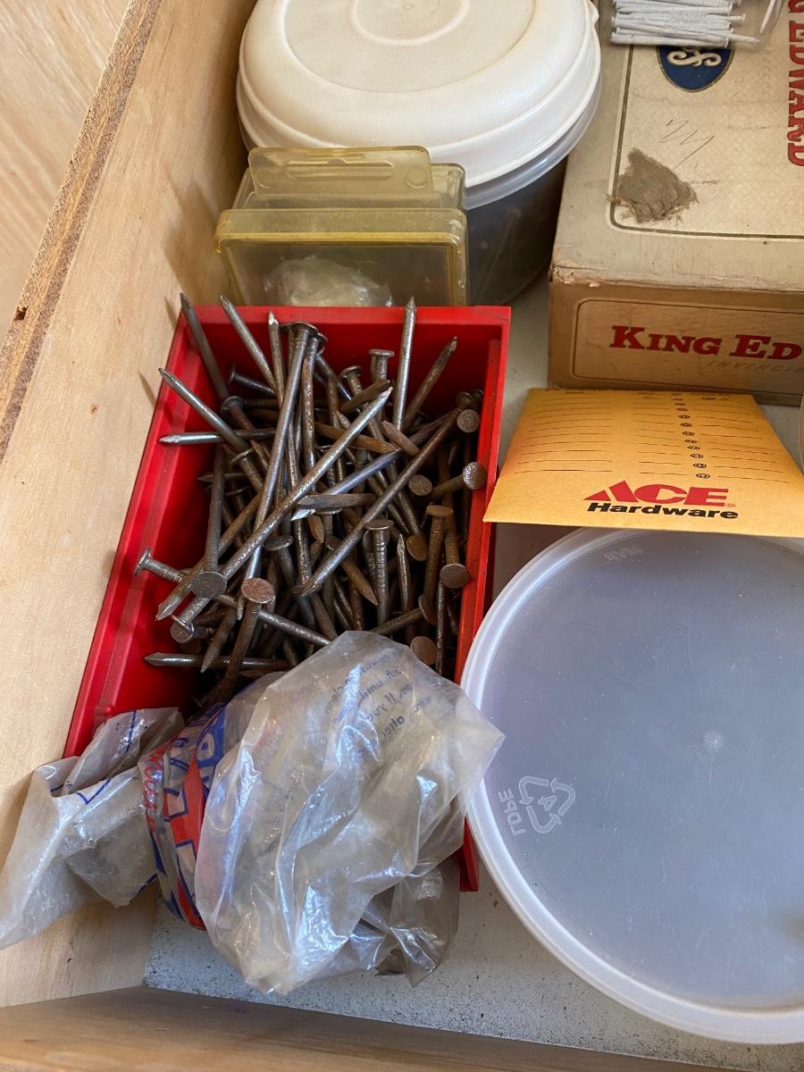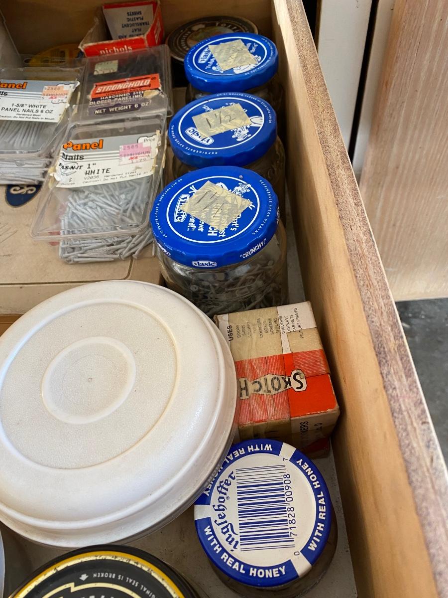 Drawer #7 Nails, White Panel Nails, Plastic Containers, Jars & More