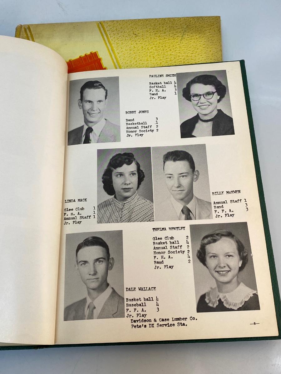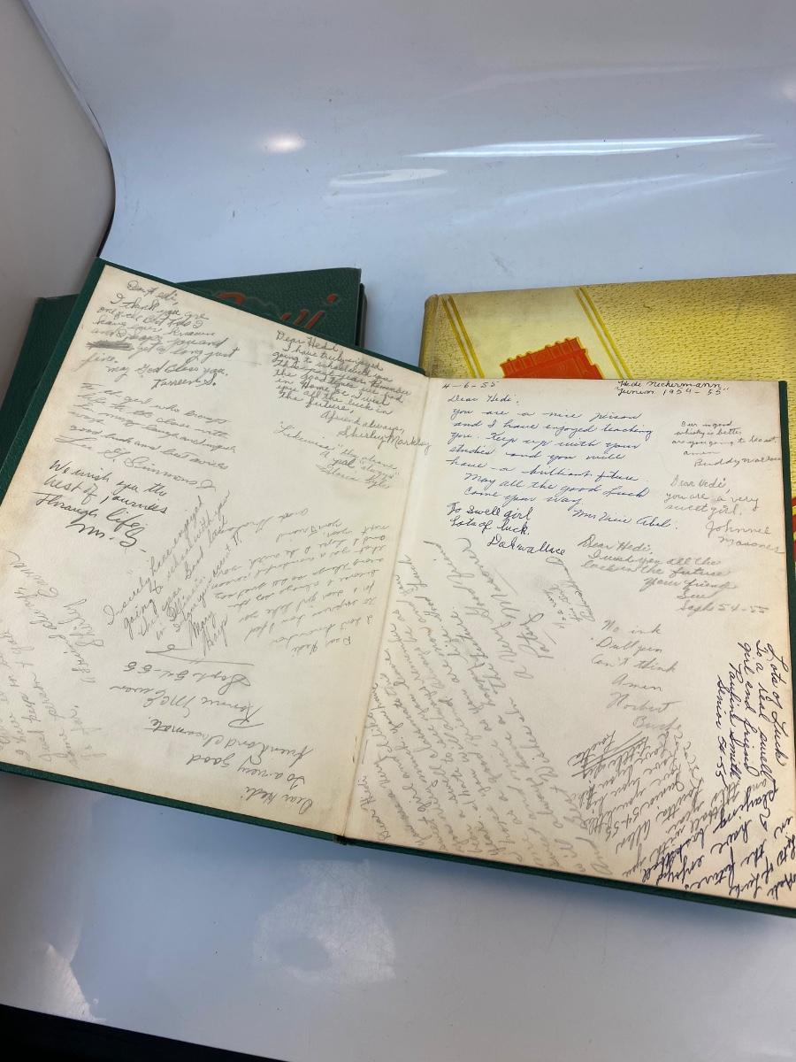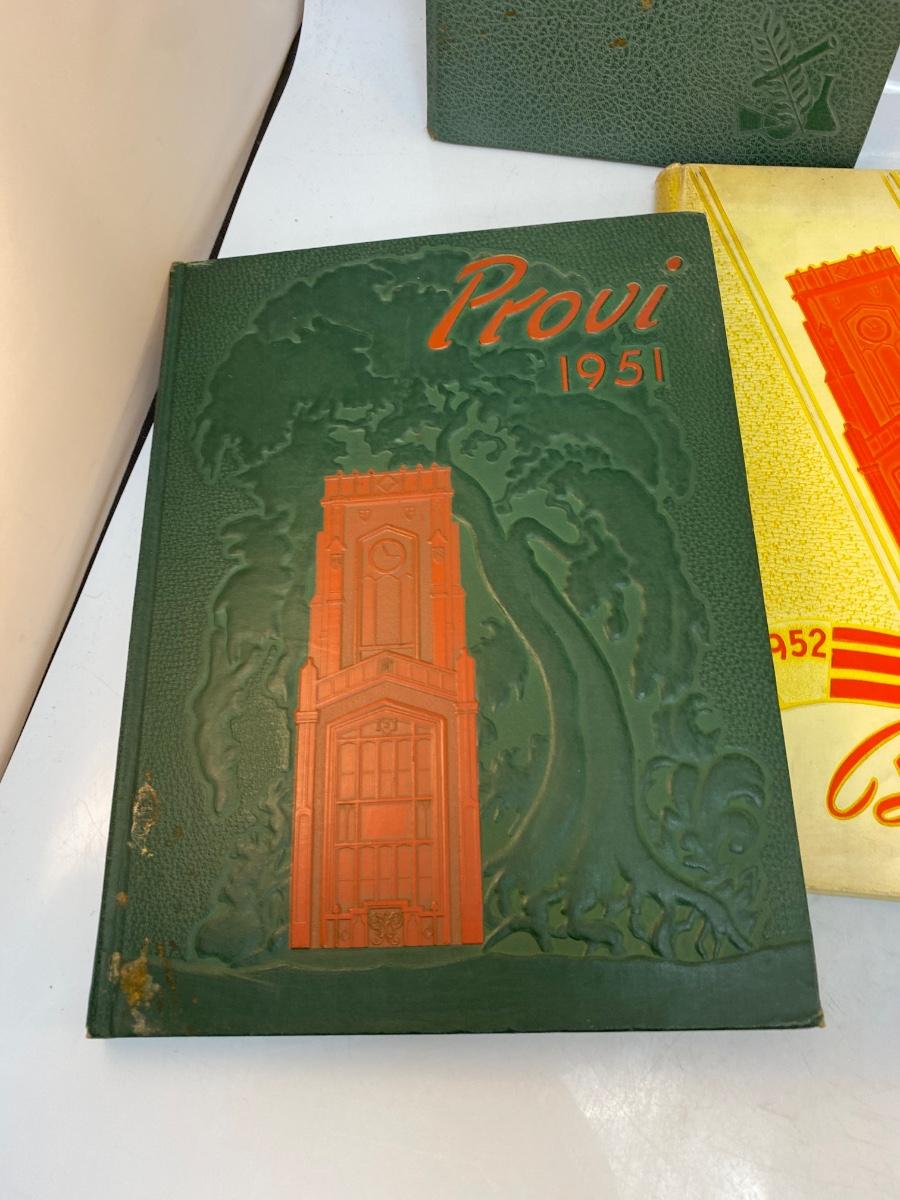 Lot of 4 Mid 1950s High School Year Books The Lariat & Provi. The Lariat is from a school in Oklahoma that housed kids from first grade through their senior year. It is the only book with classmate signatures. The other three are unwritten in, from a different school in Illinois.