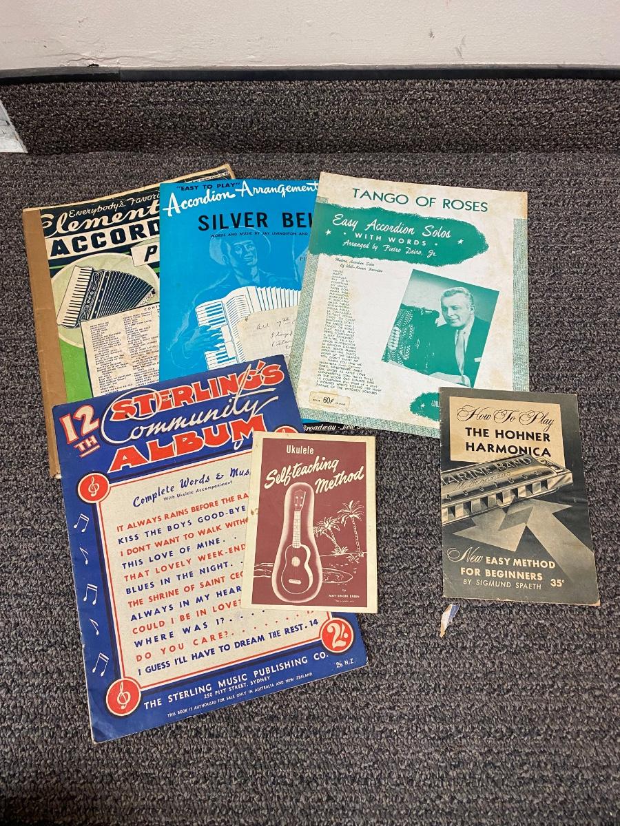 Vintage Accordion Ukulele Harmonica Song Books Sheet Music