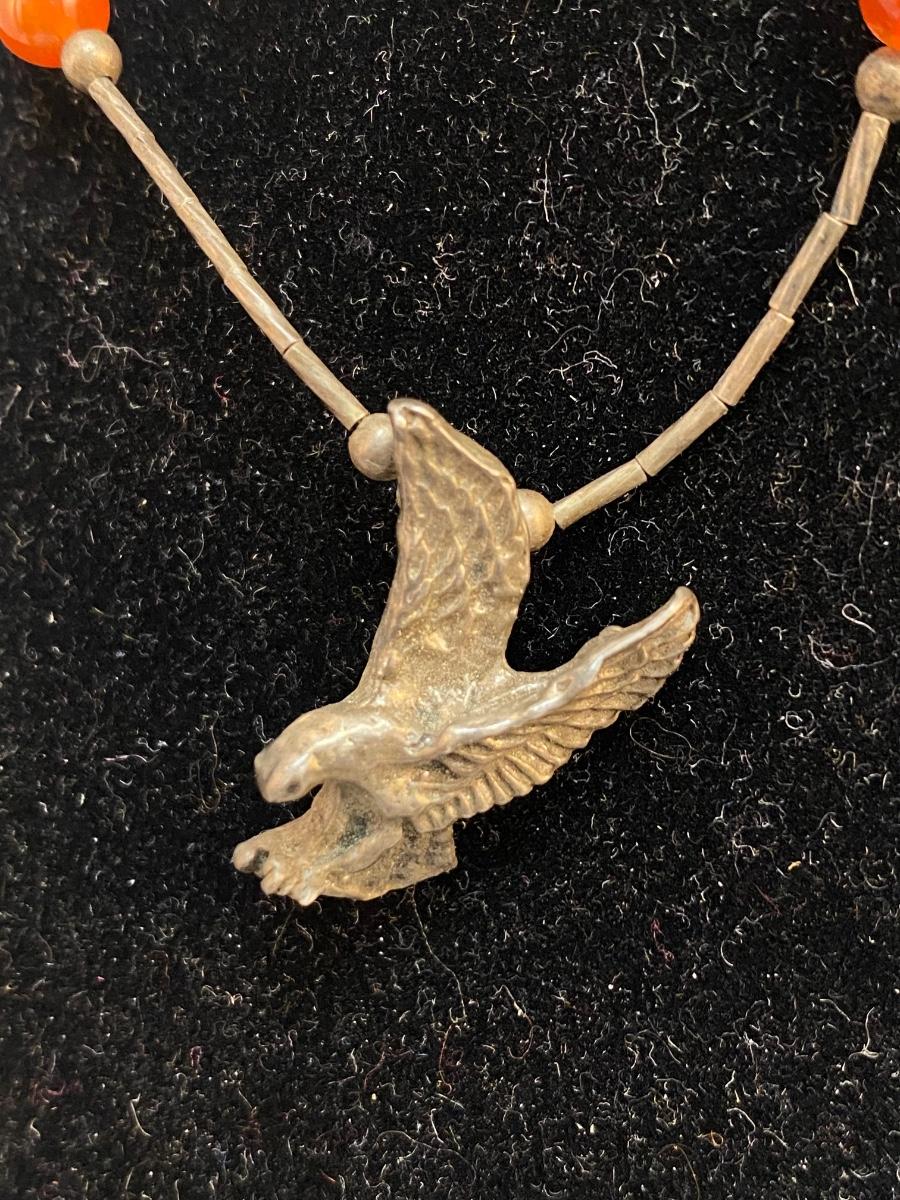 Silver Tone Eagle Pendant Necklace Southwestern Style