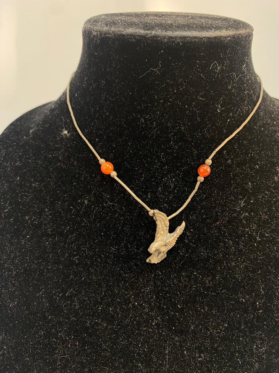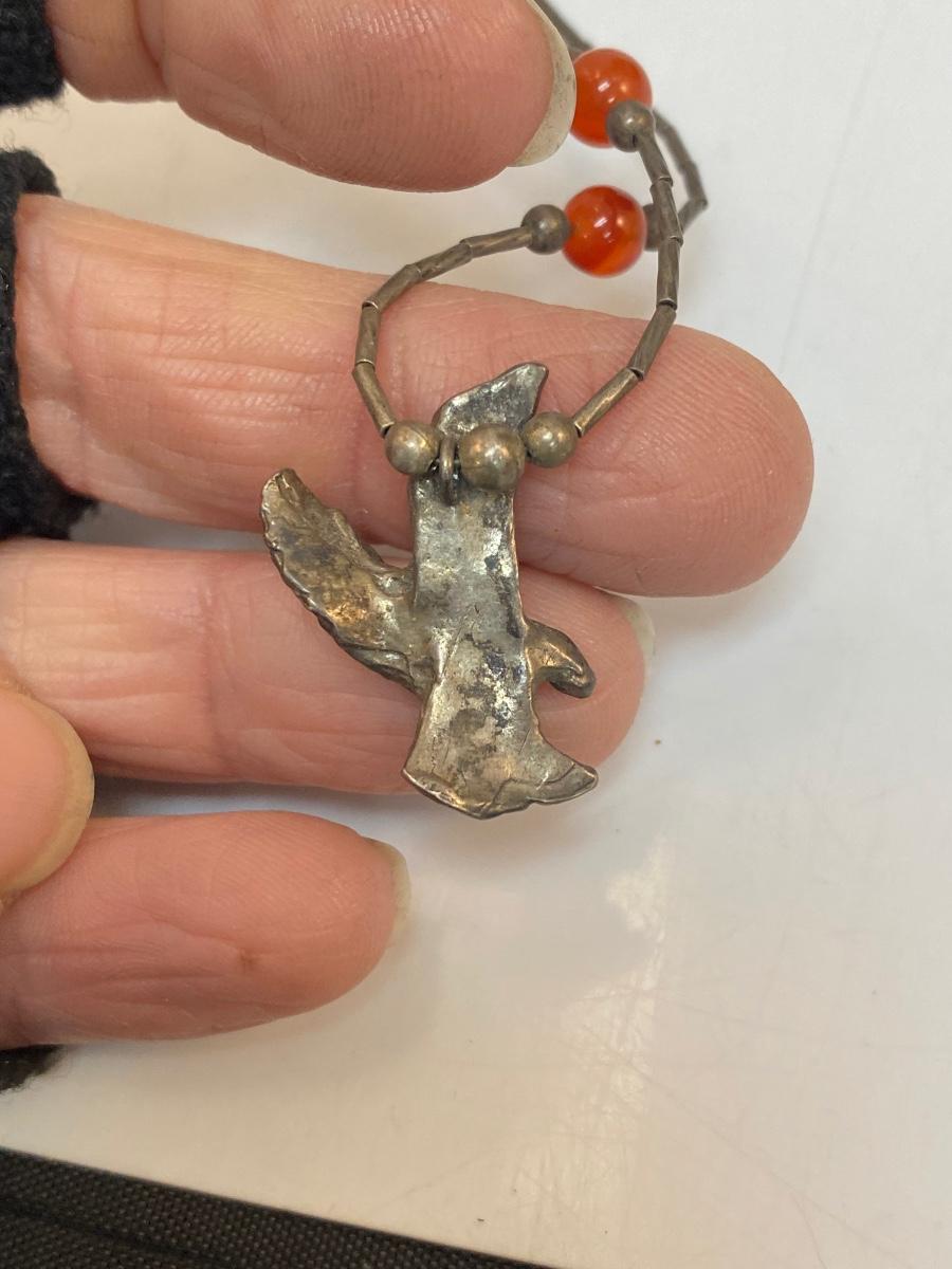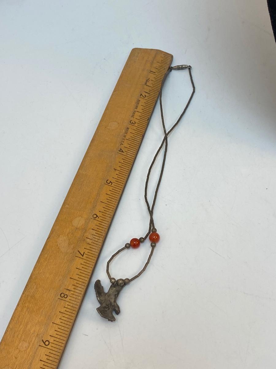 Silver Tone Eagle Pendant Necklace Southwestern Style. No sterling marks found. Wire used to make necklace is a little warped from storage.