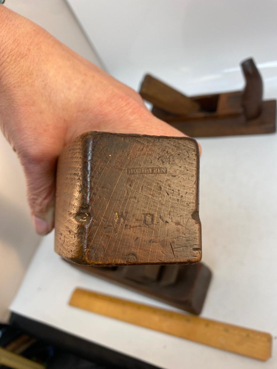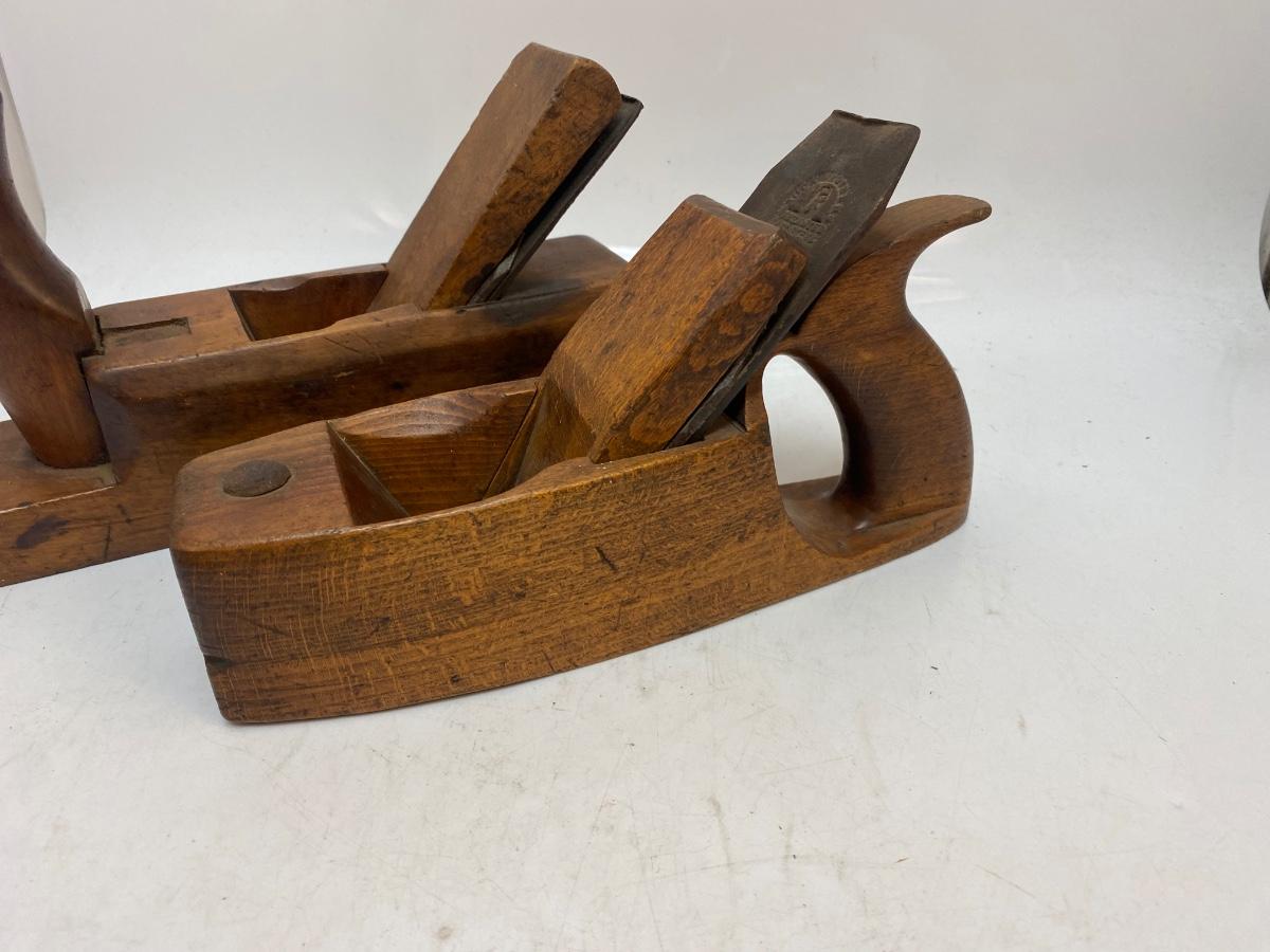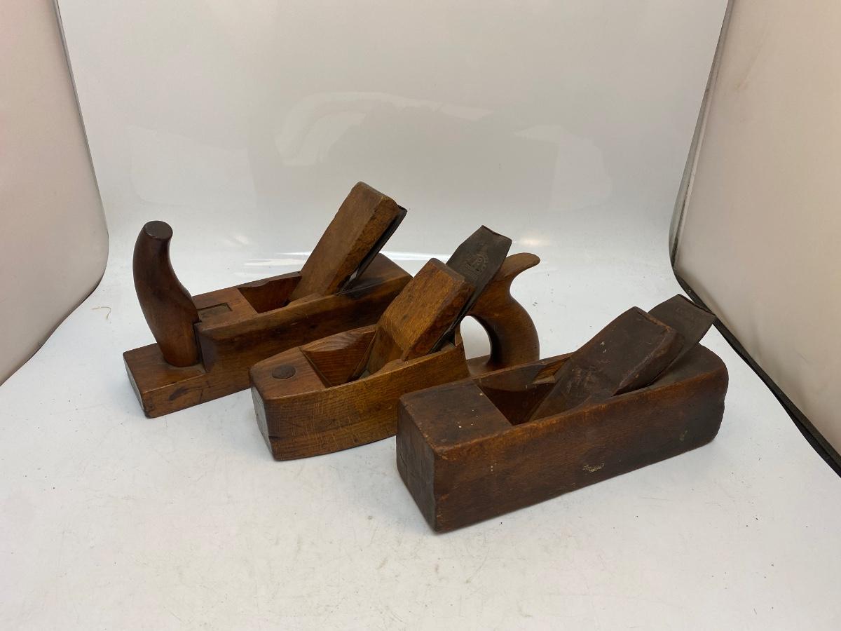 Lot of Three Antique Short Jack Block Planes Wooden Hand Grater Marked Woodworking tools