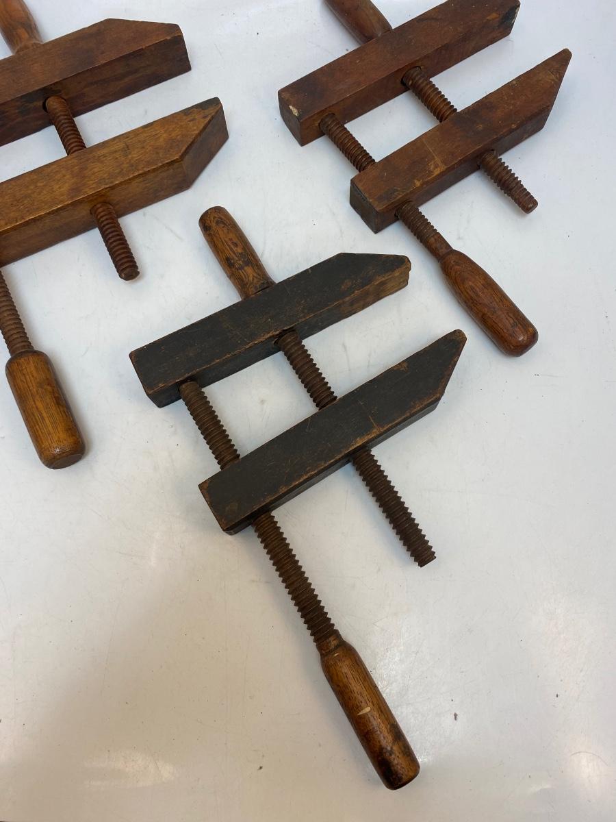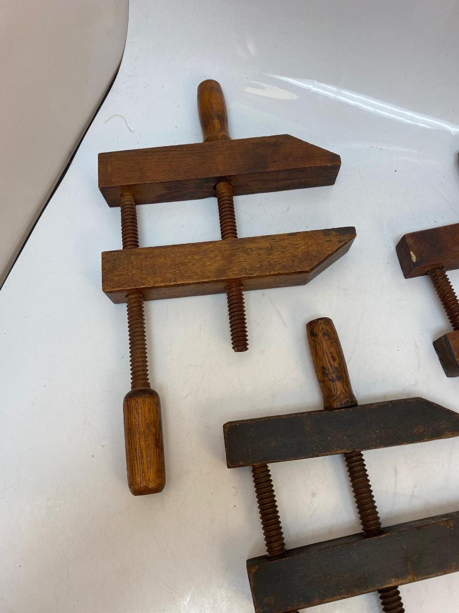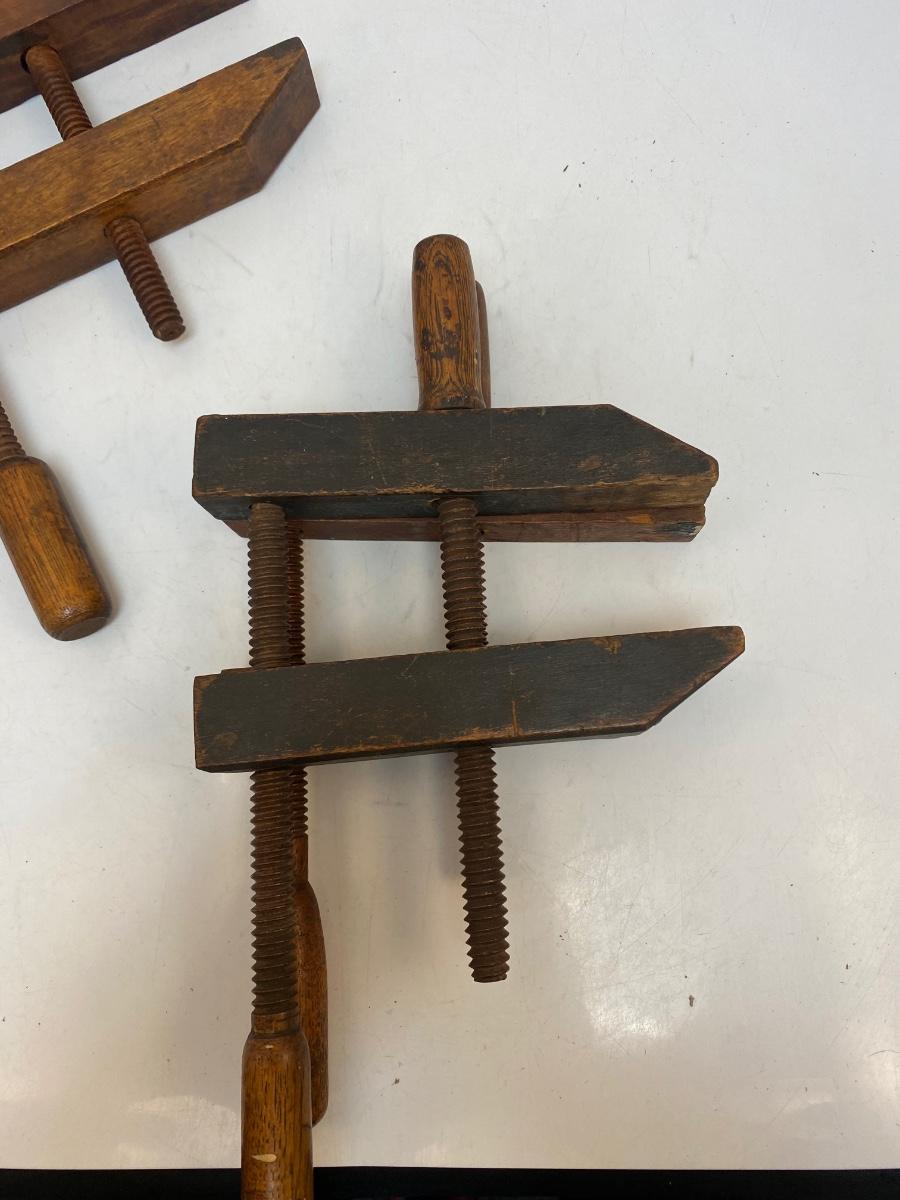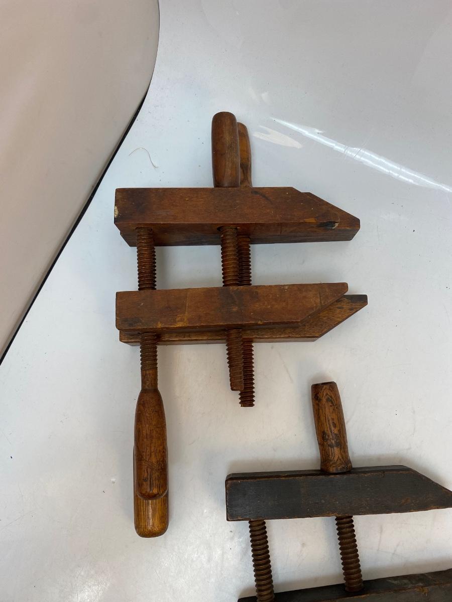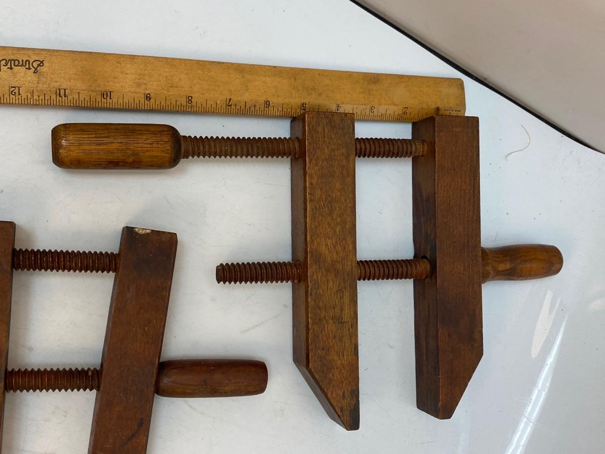 Lot of Three Antique All Wood Jorgensen Style Furniture Clamps