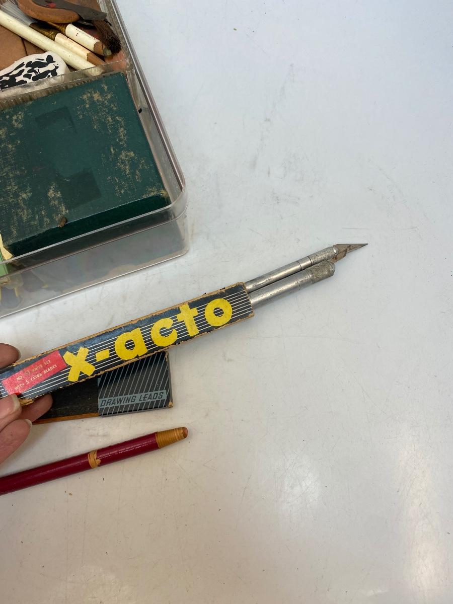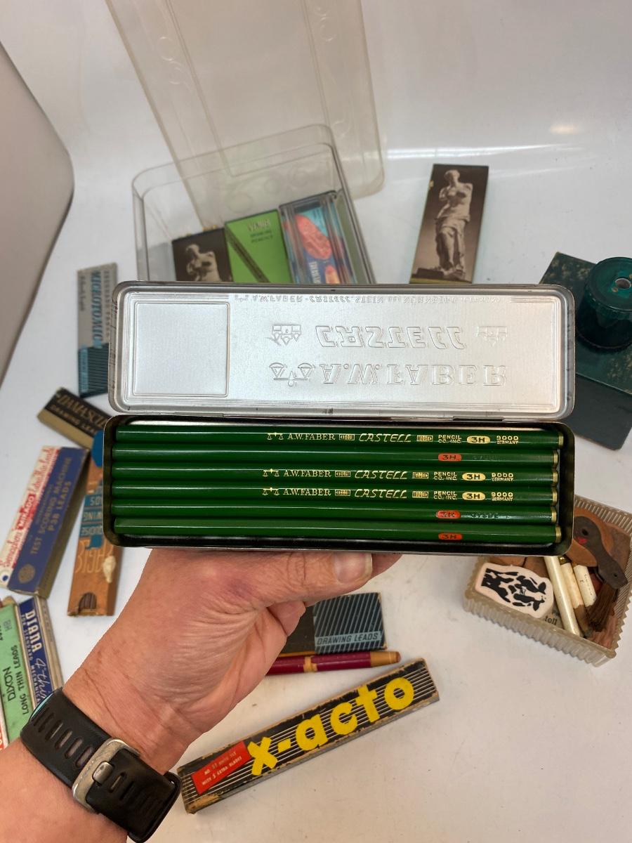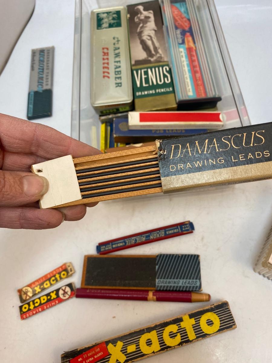 Vintage Lot of Drafting Drawing Leads Pencils Xacto Blade Pencil Sharpener