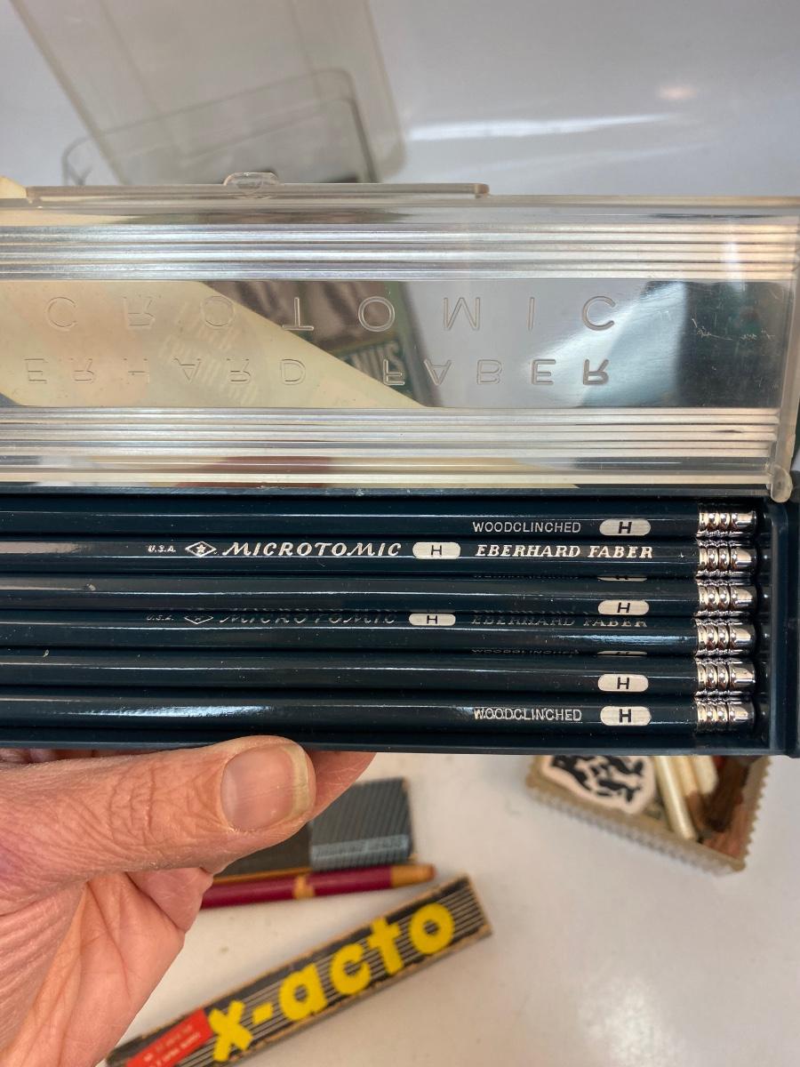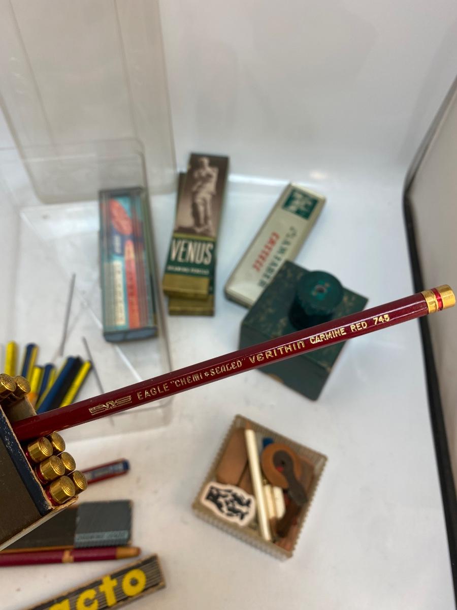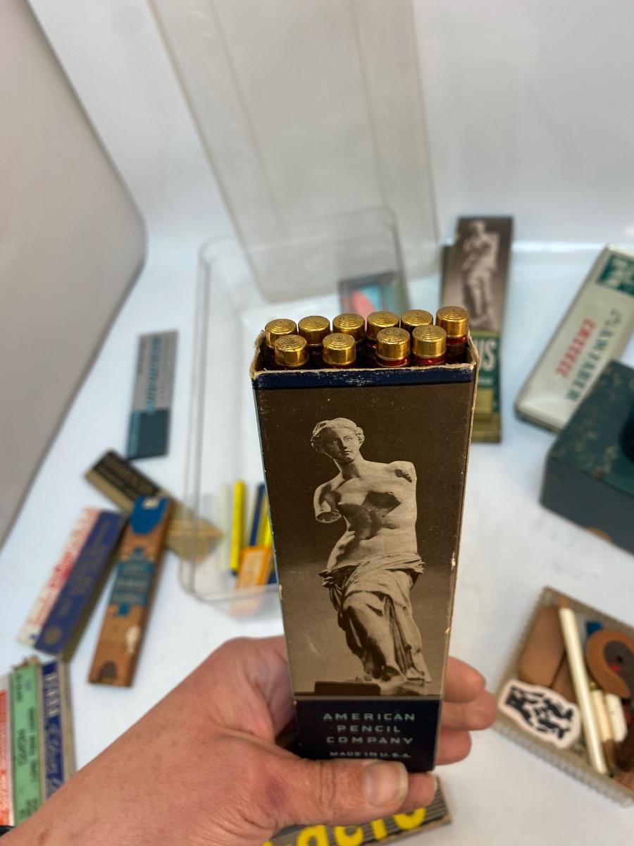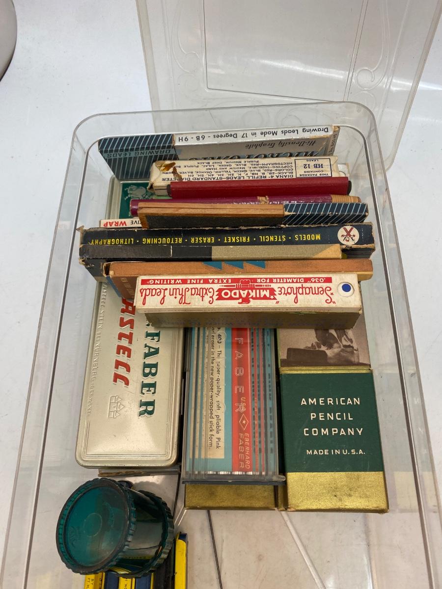 Vintage Lot of Drafting Drawing Leads Pencils Xacto Blade Pencil Sharpener. Various leads and pencils. See photos.