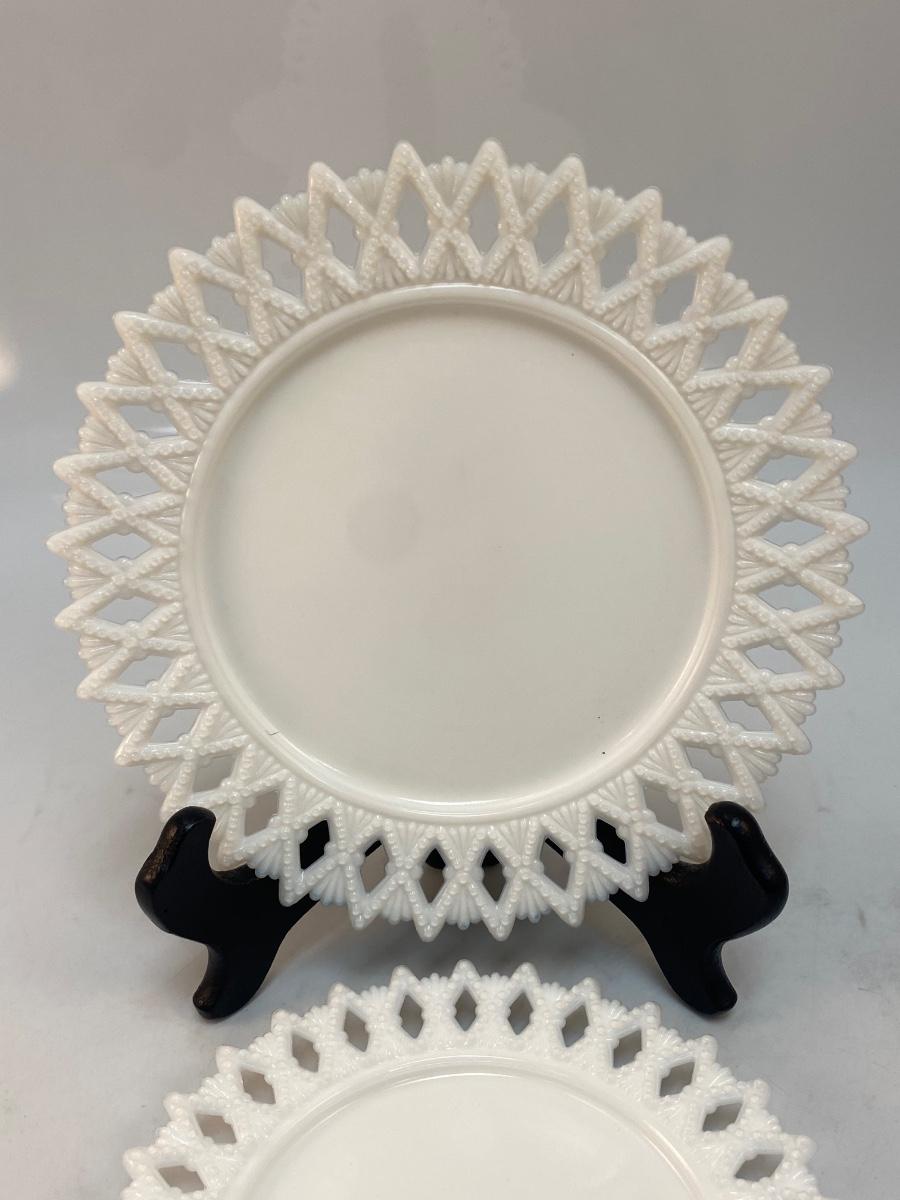 Vintage Pair of Lace Edge Milk Glass Saucer Dessert Plates