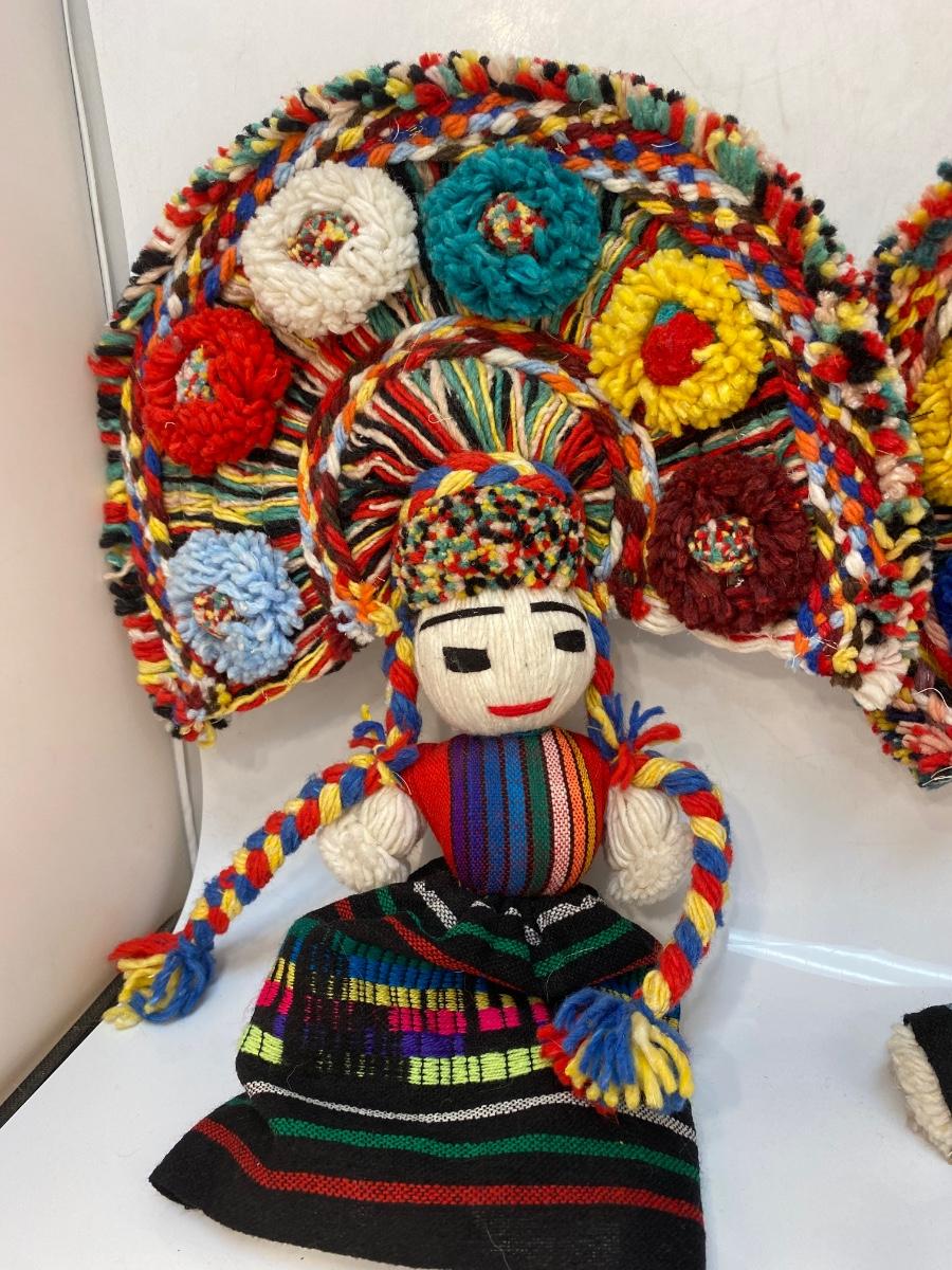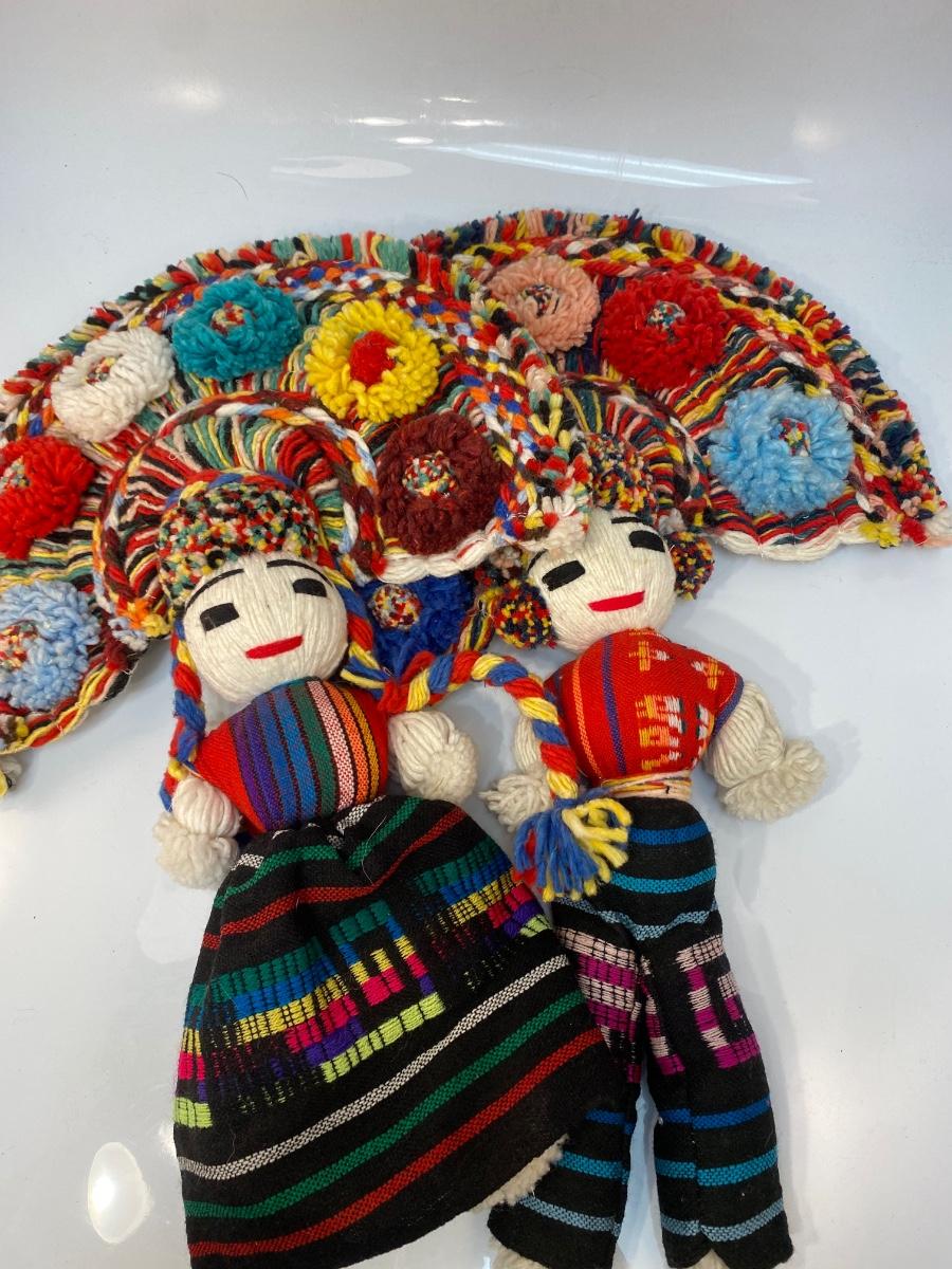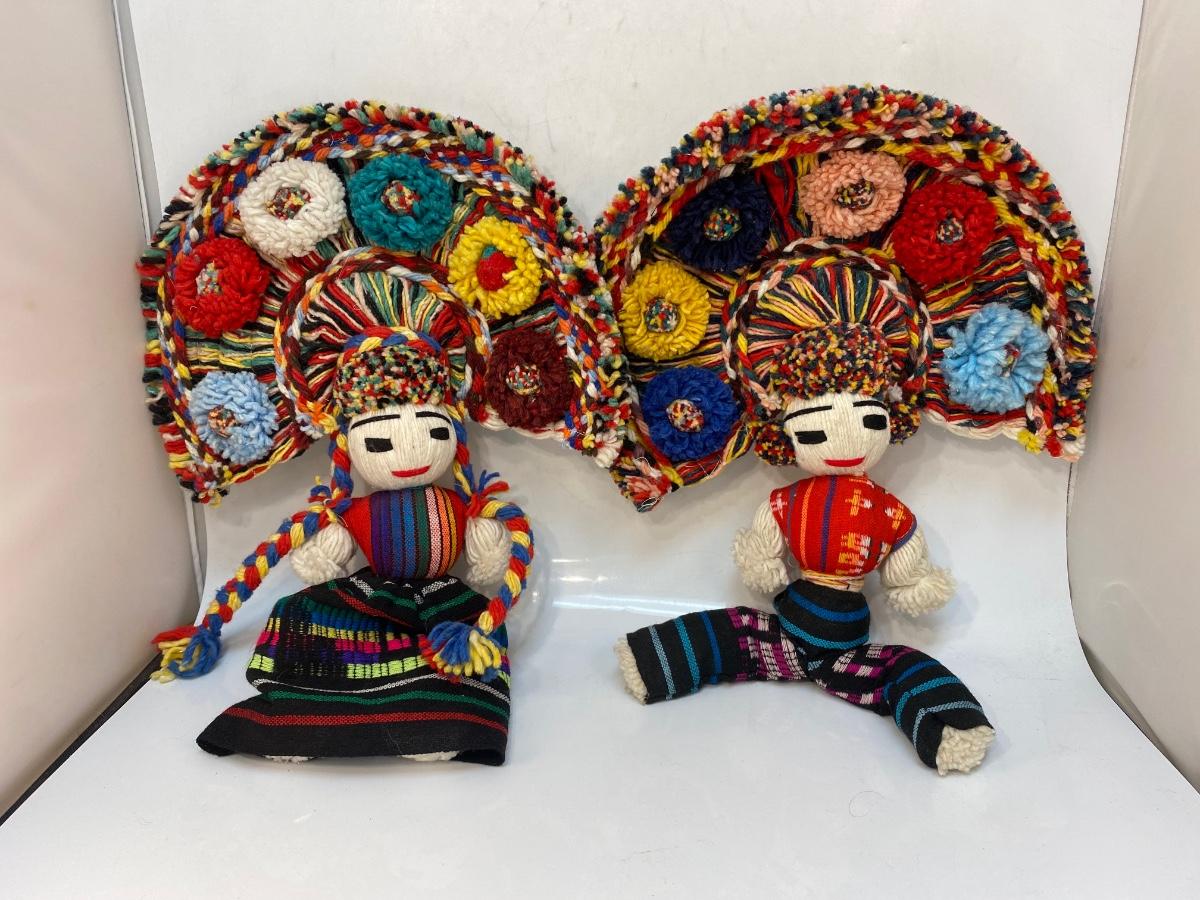 Pair of Colorful Ethnic Mexican Traditional Hand Made Vacation Souvenir Yarn Dolls